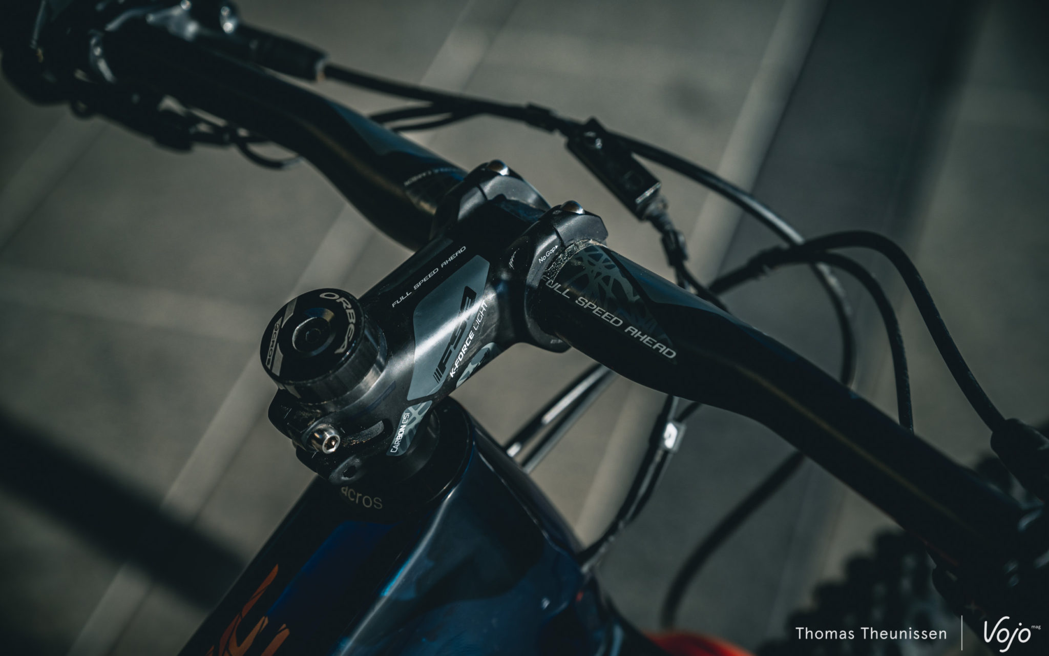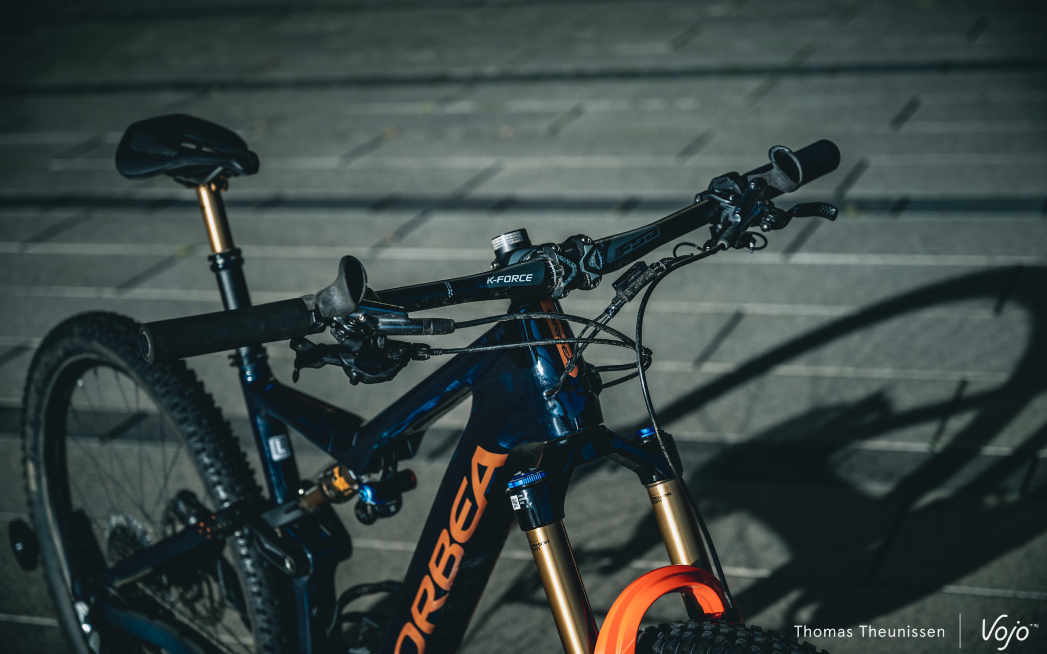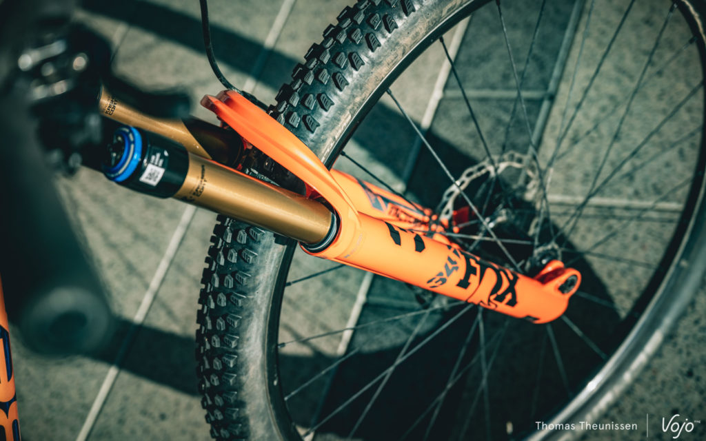 Nous nous sommes également permis quelques petites modifications sur le vélo, afin de l’alléger encore un peu et de le rendre plus XC/marathon que la version de série. Nous avons changé la fourche Fox 36 d’origine en 150mm de débattement pour une Fox 34 en 130mm, ce qui a abaissé un peu l’avant sans pour autant déséquilibrer le vélo. Nous avons aussi opté pour une potence un peu plus longue et un cintre plat, qui permettent également de gratter quelques grammes. Le confort n’a pas été oublié avec une selle Specialized Power, des grips silicone ESI et des cornes Spirgrips pour pouvoir varier les positions des mains sur le cintre.