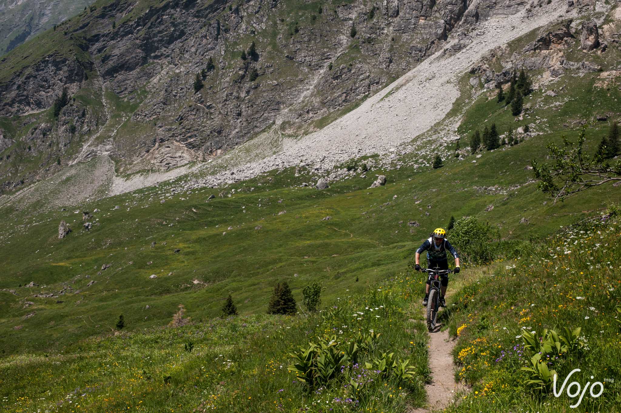 « Nous ne souhaitions pas que les gens aient à gérer leur batterie ou à rouler en Éco pour finir le tour, indique Guillaume. Comme il ne compte que 800 m environ de positif, qu’il y a des remontées mécaniques si besoin, le parcours tient en mode eMTB ou en Trail, avec des recours au mode Turbo dans les passages les plus raides au cas où. »