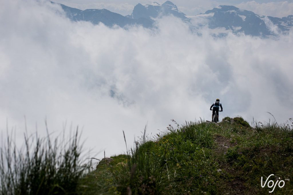 L’occasion d’éviter la queue à la remontée mécanique et de rejoindre à la pédale les magnifiques crêtes de Zore, prises dans les nuages lors de notre passage.