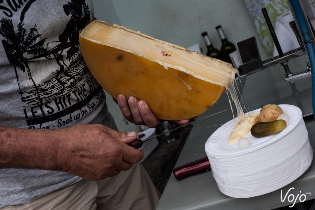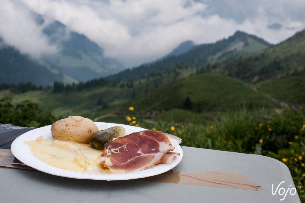 Aujourd’hui, Michel passe plutôt les barres chocolatées au riz soufflé aux e-bikers. Avec sa joyeuse bande de copains, tous montagnards aguerris, ce finisher de la Pierra Menta offre une raclette mémorable à ceux qui parviennent à son refuge après s’être avalé le plus beau morceau du parcours spécialement créé pour les VTTAE sur cette édition 2017 : les quelque 250 mètres de dénivelé positif depuis la ferme d’alpage Lapisa. D’où vient le fromage qu’un coup de lame fait glisser sur les pommes de terre. Enfin… sur LA pomme de terre.