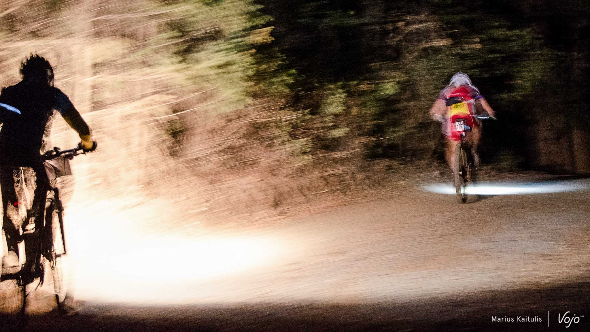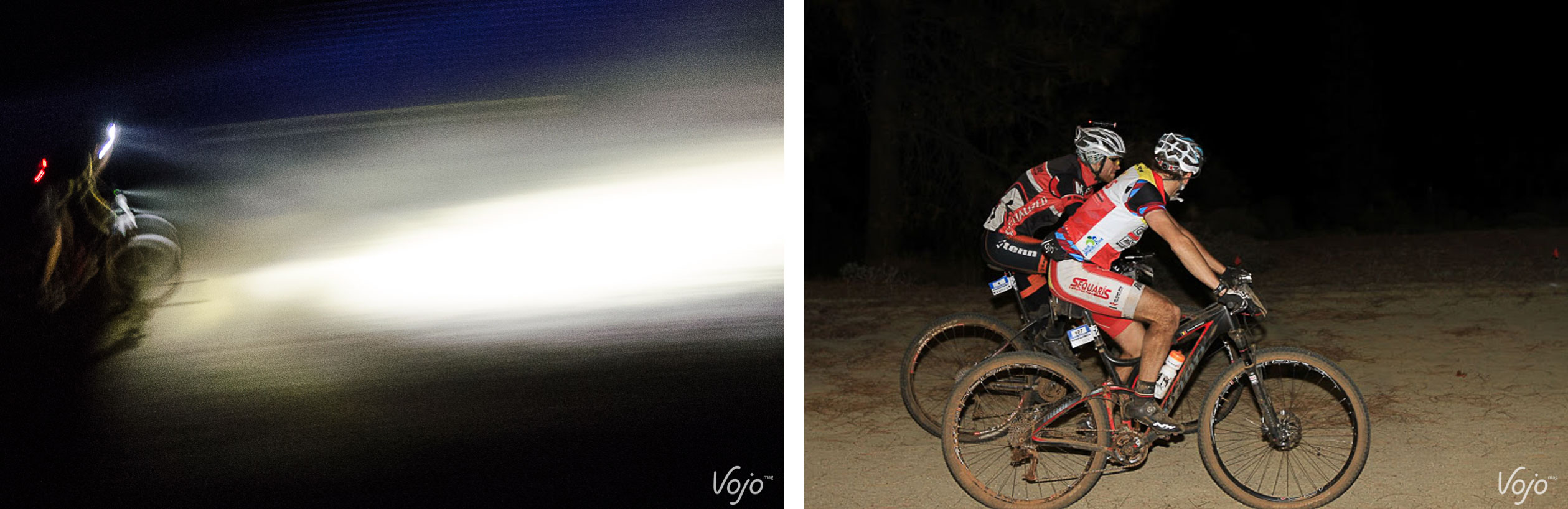 La nuit est dorénavant bien là, une nuit tellement noire que percent difficilement les faisceaux de ma lampe, l’effort de concentration est alors décuplé, au risque de chuter. Chaque virage, chaque obstacle prend une autre dimension dans cette obscurité inhabituelle, les singletracks deviennent encore plus difficiles à sillonner sans commettre d’erreur de pilotage.