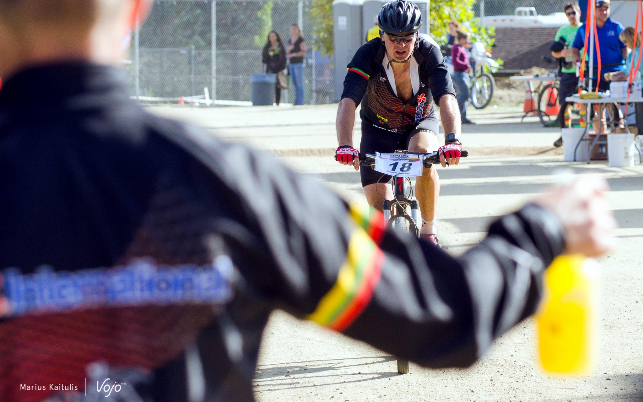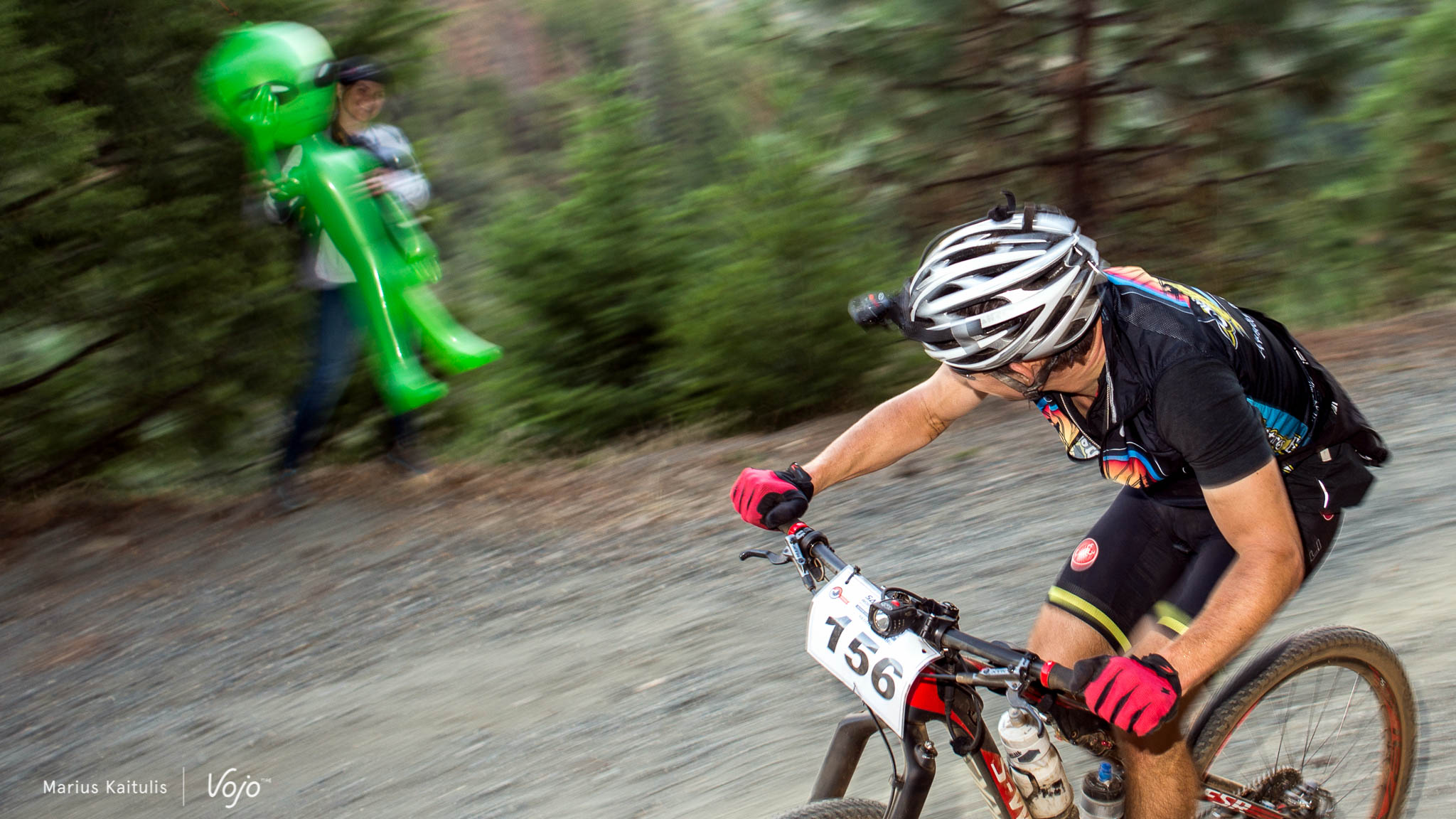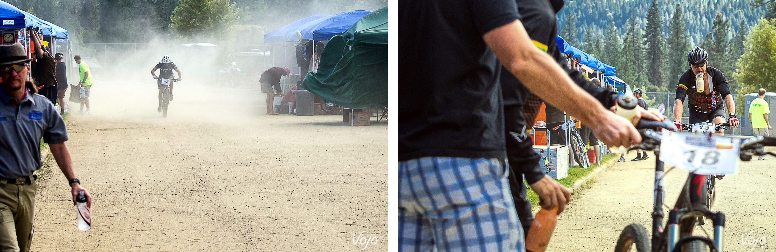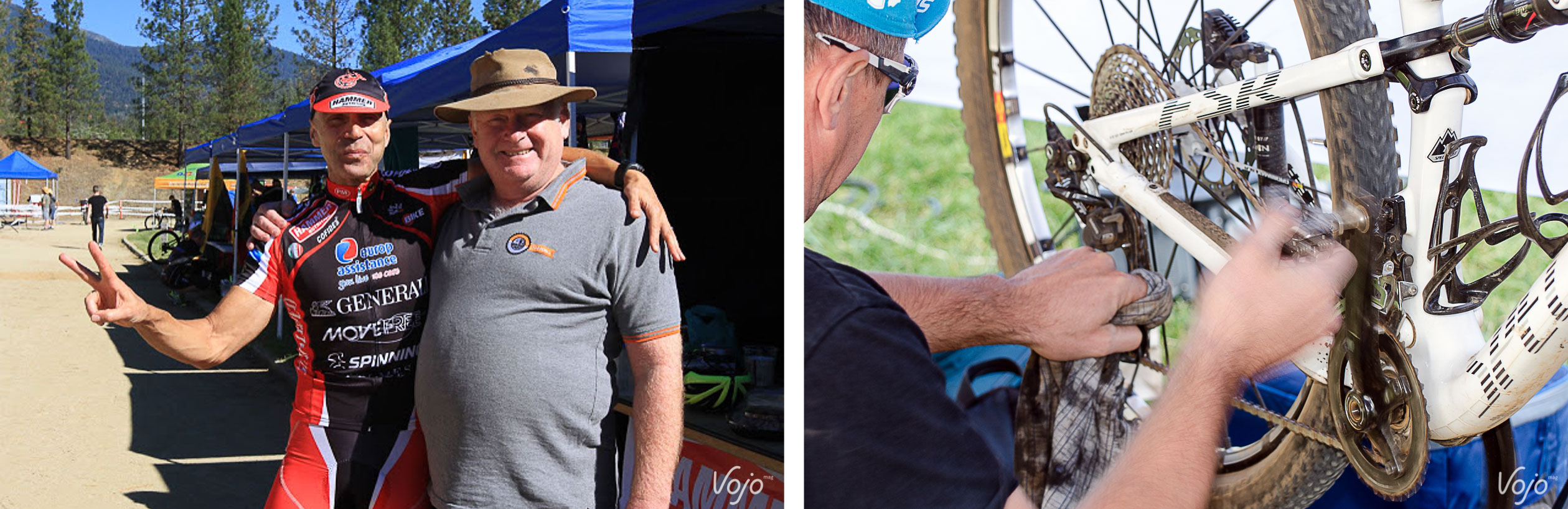 Imaginez : Tinker Juarez (dossard 3), c’était mon idole et celle des jeunes bikers des années 90. C’était le pilote du grand team international Volvo/Cannondale sur les coupes du monde XCO, celui à qui j’avais fait signer ma casquette de fan Cannondale dans les padocks du team à Houffalize en 1995 et c’est toujours l’icône américaine devenue depuis des années, et toujours sous le maillot Cannondale, la référence des courses d’endurance sur le sol américain et mexicain. Quel honneur pour moi de partager la même course et les mêmes sentiers que Tinker, qui roule à domicile, et qui, du haut de ses 54 ans, est inscrit en Elite avec des bikers 20 à 30 ans plus jeunes. Son ambition étant claire : gagner le titre Elite !