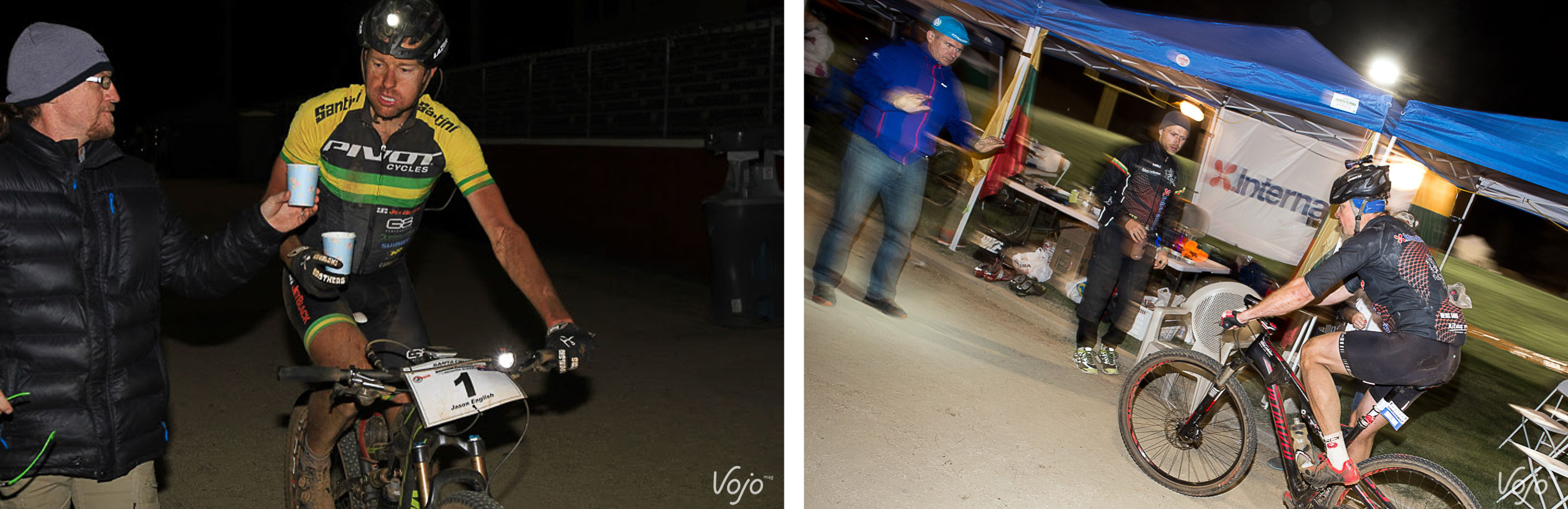 A ce moment, Jason English et Cory Wallace me prennent un tour pile quand j’entame pour la 11ème fois la longue montée de 6 km. Leur rythme est à peine plus élevé que le mien dans la bosse et je profite de l’occasion de pouvoir une nouvelle fois rouler avec ces deux grands champions. Cela me donne aussi l’occasion d’échanger quelques mots avec eux. C’est ainsi que j’apprends qu’ils viennent de passer en tête de la course ; K Magelky ayant plus de mal à aborder la seconde partie de course et Tinker Juarez ayant abandonné au bout de 6 tours pour des raisons médicales (troubles de la vision, il a d’ailleurs entre temps mis un terme à sa carrière sur les 24h solo).