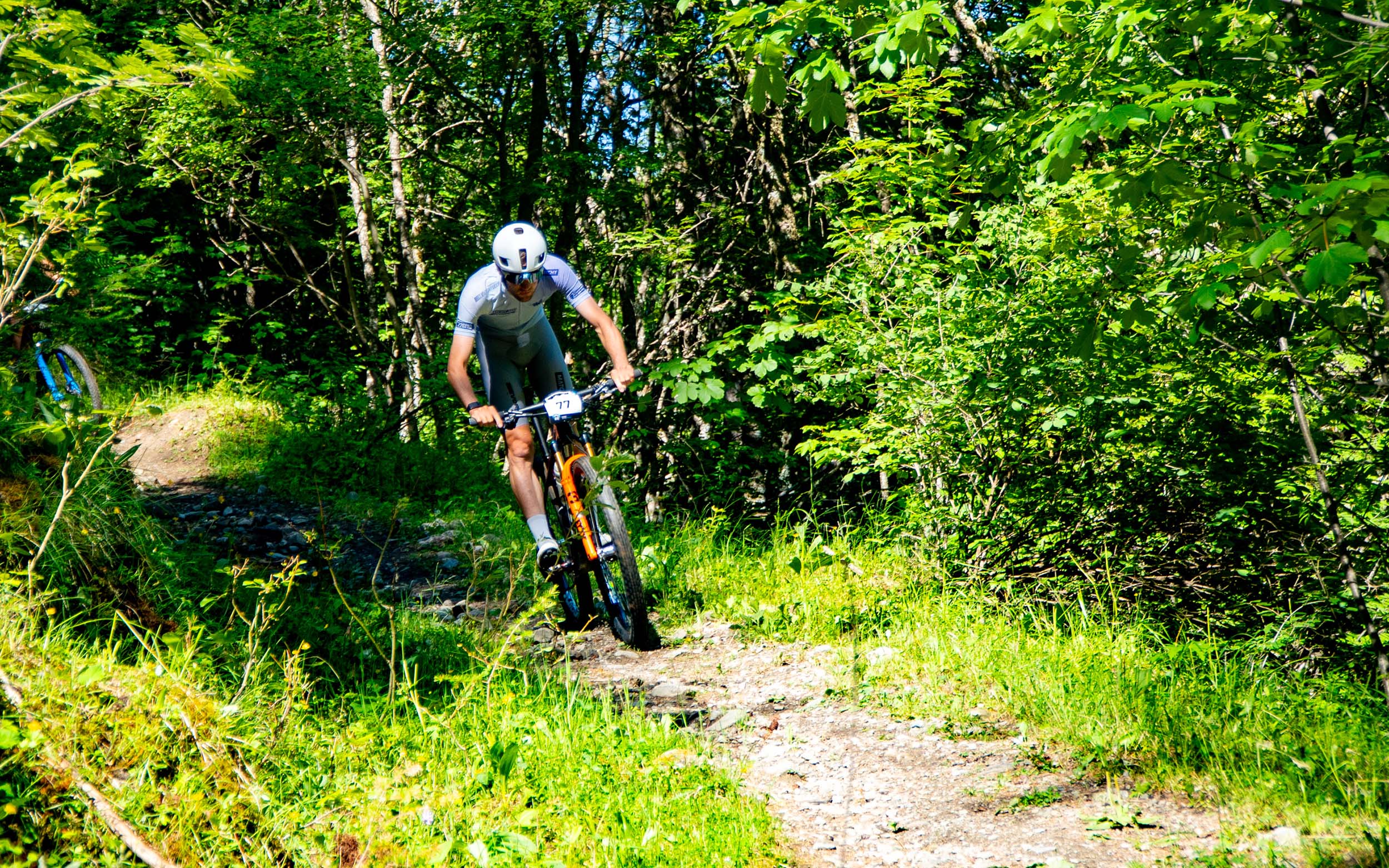 Dans la remontée vers le col du Lautaret, j’essaye de faire la différence mais Tristan colle à ma roue et je n’ai pas les meilleures sensations. Je fais l’effort pour rentrer en tête sur le magnifique chemin du Roi. C’est un single joueur à flanc de montagne qui parcourt toute la vallée. Le tracé est superbe et la vue à couper le souffle. J’essaye de mettre du rythme pour pousser Tristan à la faute dans les parties techniques. J’arrive à creuser un écart sur une erreur de sa part. C’est le moment de mettre toutes les forces qu’il me reste même si je n’ai plus beaucoup d’énergie. Je profite de la dernière descente pour gagner quelques secondes. La dernière partie plate est une formalité et je peux rallier l’arrivée en tête une troisième fois d’affilée. Je termine satisfait mais rincé. Il va falloir optimiser la récupération pour demain.