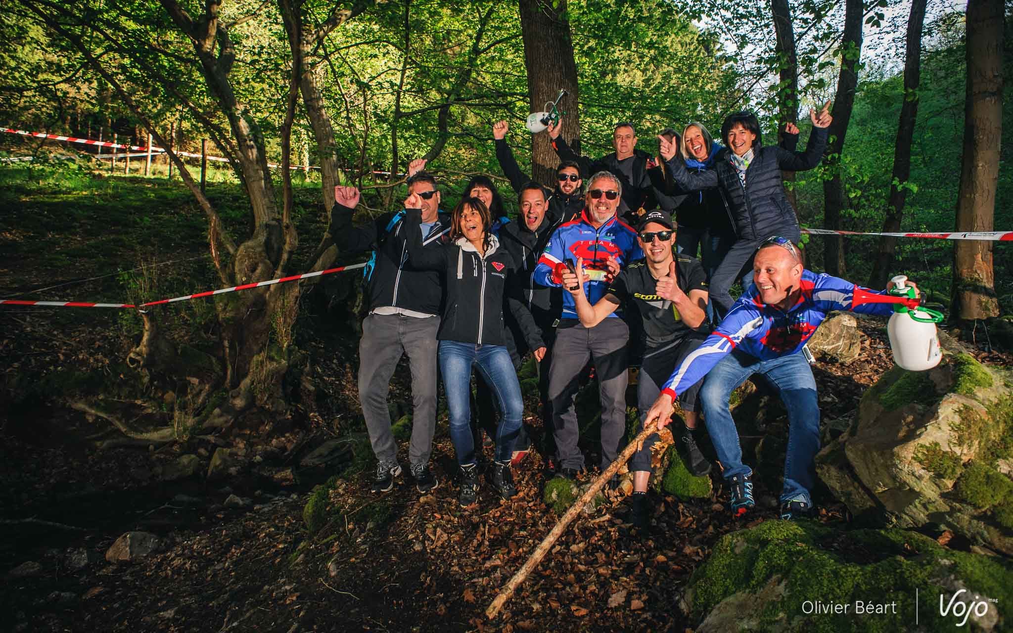 On en termine avec une photo de famille des forces vives de cet enduro mythique qui posent en compagnie de Martin Maes. Vous adorez les détester pendant que vous souffrez sur le vélo, mais sans eux, le vtt en Belgique ne serait pas ce qu’il est. Si vous avez des suggestions ou des remarques, n’hésitez pas à leur faire parvenir (via la page Facebook de l’événement par exemple), cela les aidera à améliorer cette épreuve phare du calendrier.