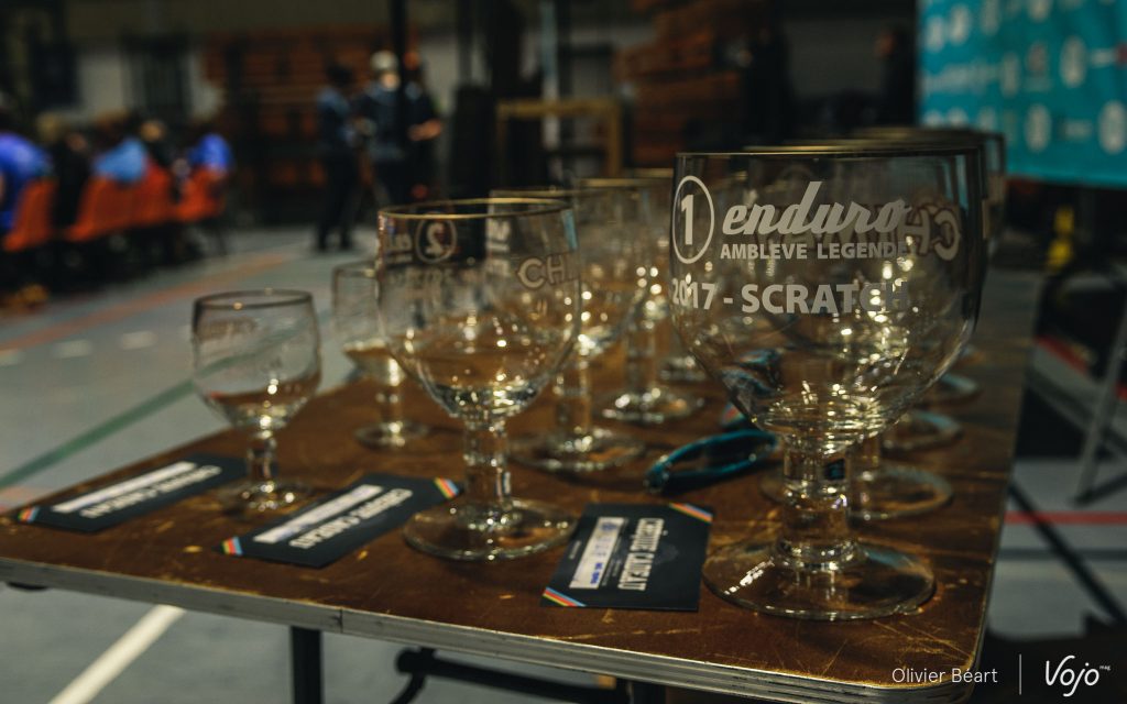 Voici les podiums de toutes les catégories avec leur magnifique coupe… un verre de Chimay unique gravé au nom de l’Amblève Légende Enduro !