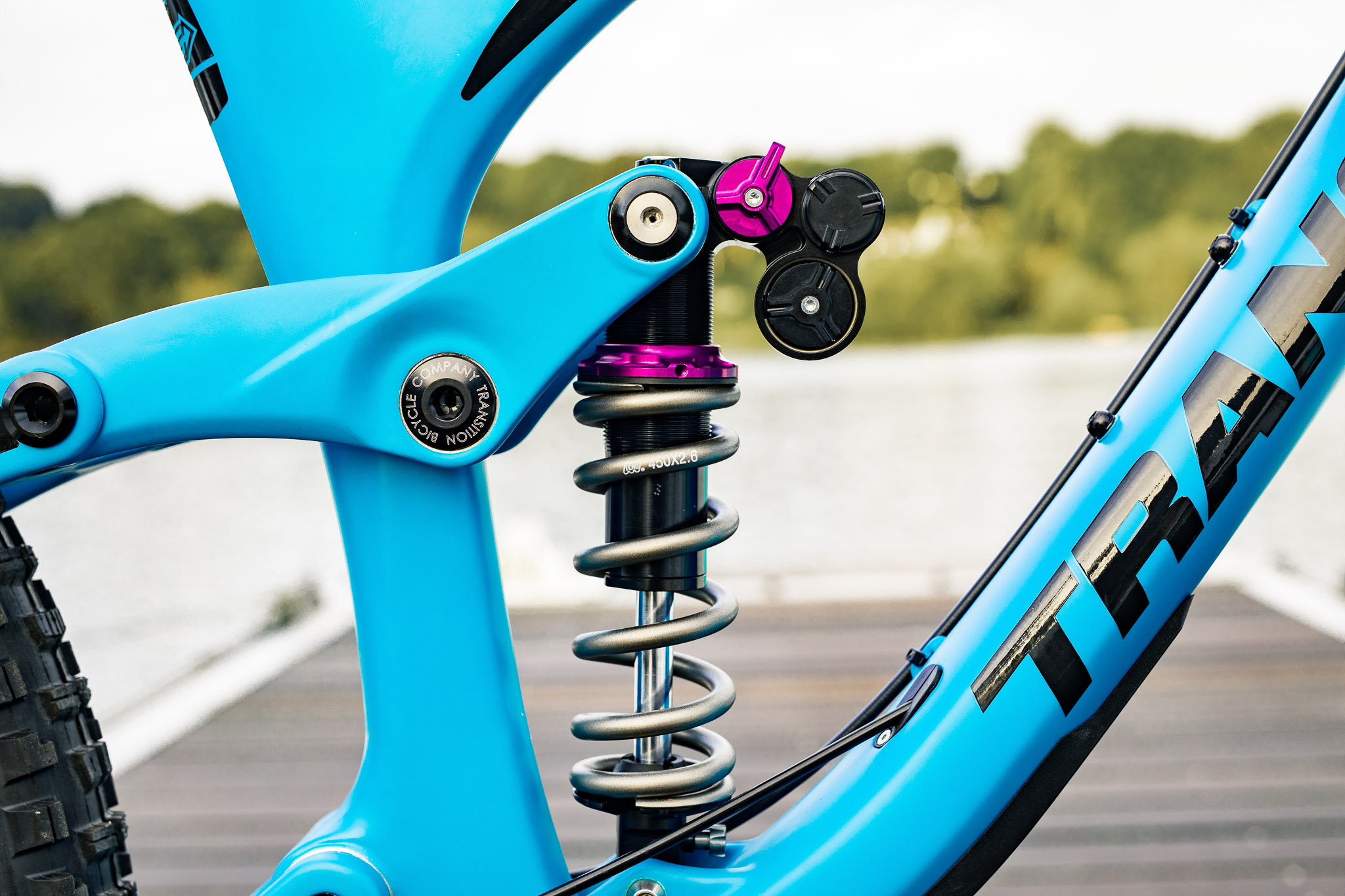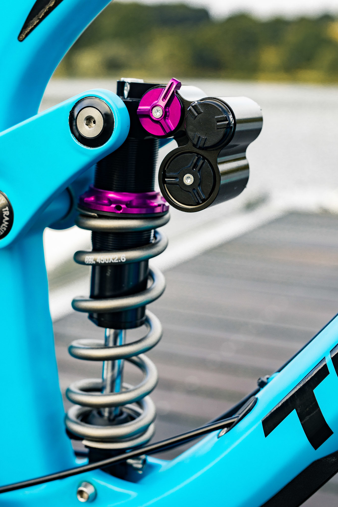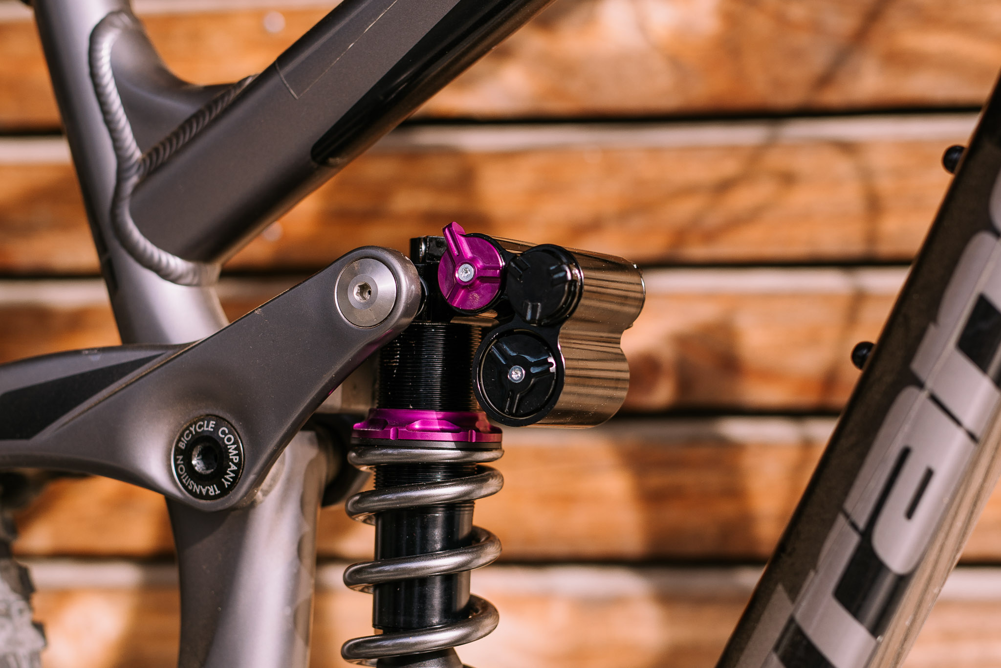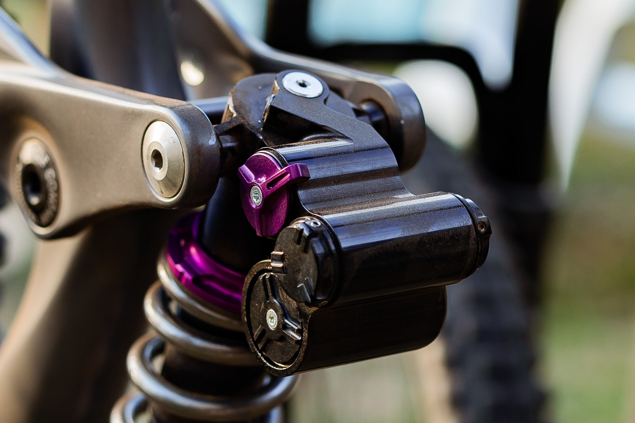 Accaparé par son succès à l’étranger, Fabien reconnaît n’avoir pas assez écouté le marché français. Il avoue que les orientations techniques choisies n’étaient pas toujours adaptées à la demande. Une remise en question était nécessaire. La volonté est maintenant d’avoir un contact direct avec le client, ainsi, il sera le vendeur exclusif de sa marque sur le marché français et chaque produit vendu aura la possibilité d’être réellement adapté aux besoins de chacun. Symbole de renaissance, Fast lance son nouvel amortisseur, le Fenix, prêt à déployer ses ailes spécifiquement sur le marché de l’enduro. Le Grail, lui, reste au catalogue pour une utilisation DH. L’amortisseur Fast Suspension Fenix est un amortisseur à ressort hélicoïdal exclusivement. L’air n’a pas sa place chez le constructeur français en raison de sa courbe de réponse non-linéaire et non-prédictible dans le temps. L’histoire lui donne raison, et l’air trouve peu d’applications dans le monde technique (sauf en VTT…). Fast ne fait pas non plus de secret sur la marque du ressort hélicoïdal utilisé : Ichu. Beaucoup de voyages en Asie et de tests ont été nécessaires afin d’obtenir un produit en acier léger dont le module d’élasticité reste constant dans le temps. Au niveau look, les prototypes de cet amortisseur monotube collent à la marque. De belles pièces usinées noires avec les touches d’anodisation rose permettent une identification directe. Des marquages laser feront leur apparition sur les modèles de série. Un ensemble classe et racing à la fois. Mais ce qui choque instantanément, c’est la grosse tête d’amortisseur ornée d’apparat. Fabien ouvre la boîte de Pandore ! Sur cette tête Trunnion (ça a son importance), on trouve dans l’ordre : une gestion de plateforme de pédalage, un réglage externe de compression lente, un réglage externe de compression moyenne, un piston haute vitesse réglable en interne, un réservoir de compensation, ainsi qu’une butée hydraulique de fin de course. L’explication simple suit. Avant, un petit mot sur la tige d’amortisseur. Sur notre prototype, elle est en acier chromé; de série, elle sera en aluminium recouvert d’un traitement de surface novateur et « ultra glissant ». Son diamètre est de douze millimètres : pas de souci à craindre niveau rigidité. Le guidage se fait au sein d’un palier calibré sur mesure. Trelleborg s’occupe des joints, un gage de fiabilité. Allez, c’est parti ! Quand l’amortisseur se comprime, la tige d’amortisseur rentre à l’intérieur de ce dernier. Cette tige prend de la place. Du coup, elle chasse l’huile vers le haut. L’huile passe dans la grosse tête par l’intermédiaire d’un trou. Sur son passage, elle rencontre en premier la plateforme de pédalage. Le levier associé n’a que deux positions. S’il est activé, l’huile est forcée à l’intérieur du système. Le flux d’huile y est ralenti fortement, ce qui réduit le mouvement de pompage de l’amortisseur. Quand le levier n’est pas activé, le mécanisme est transparent dans le système, l’huile passe directement dans la deuxième chambre sans être perturbée par la plateforme de pédalage. Dans la deuxième chambre, on retrouve 3 voies de compressions. Nous vous avions expliqué le fonctionnement de celles-ci dans l’essai complet de la cartouche Yari Up. Petite piqûre de rappel. Chaque voie de compression (frein à l’enfoncement) que l’huile traverse possède un seuil de saturation. Le flux d’huile est donc réparti en fonction de sa vitesse et de la pression instantanée qu’il génère. Un tout petit trou ne pourra laisser passer qu’un faible volume d’huile. Du coup, une partie du flux sera dirigée vers un autre trou plus gros, et ainsi de suite. C’est une description imagée, mais assez proche de la vérité, de ce qui se passe. La grosse exclusivité de cet amortisseur, c’est d’y avoir intégré le circuit de moyenne vitesse. Basse et moyenne vitesses sont réglables par l’intermédiaire de molettes au maniement très doux sur 24 crans. Une petite gymnastique intellectuelle est nécessaire si vous les manipulez en roulant. Situées de part et d’autre du réservoir, leur sens de rotation demande de la vigilance. Enfin, l’huile passe dans le dernier réservoir, qui ne sert que pour la compensation. En effet, la tige d’amortisseur prend du volume. C’est là qu’intervient la chambre de compensation. Comme son nom l’indique, elle compense le volume pris par la tige quand celle-ci rentre dans l’amortisseur. D’habitude, cette chambre est équipée d’un piston séparant le volume d’huile du volume d’azote nécessaire à la compensation. Dans l’amortisseur Fast Fenix, c’est une membrane qui prend la place de ce piston flottant. Une première également dans un amortisseur ! Plus légère, cette membrane a l’intérêt de ne générer aucun frottement, pour une fiabilité et une performance accrues. Arrivée au terme de son circuit en compression, l’huile doit refaire le chemin inverse. C’est la phase de rebond. Mais avant, elle va passer par les circuits de réalimentation de chaque piston de compression. Un gros travail a été réalisé dans cette phase pour obtenir un ensemble peu sensible à la cavitation et silencieux. Le circuit de rebond basse vitesse réglable est logé dans la tige d’amortisseur. Celui de haute vitesse de retour est placé de façon classique sur le piston principal. Ce dernier est une évolution du fameux piston que Fast utilise depuis des années. L’huile employée, que Fast Suspension utilise depuis longtemps, provient de chez Silkolène, dont Fast est d’ailleurs devenu distributeur pour la France. Si le petit Arthur ne s’est pas endormi sur sa table ronde, Fast lui non plus ne s’est pas arrêté là. En effet, sur la tige principale, on trouve également un deuxième piston. Ce p