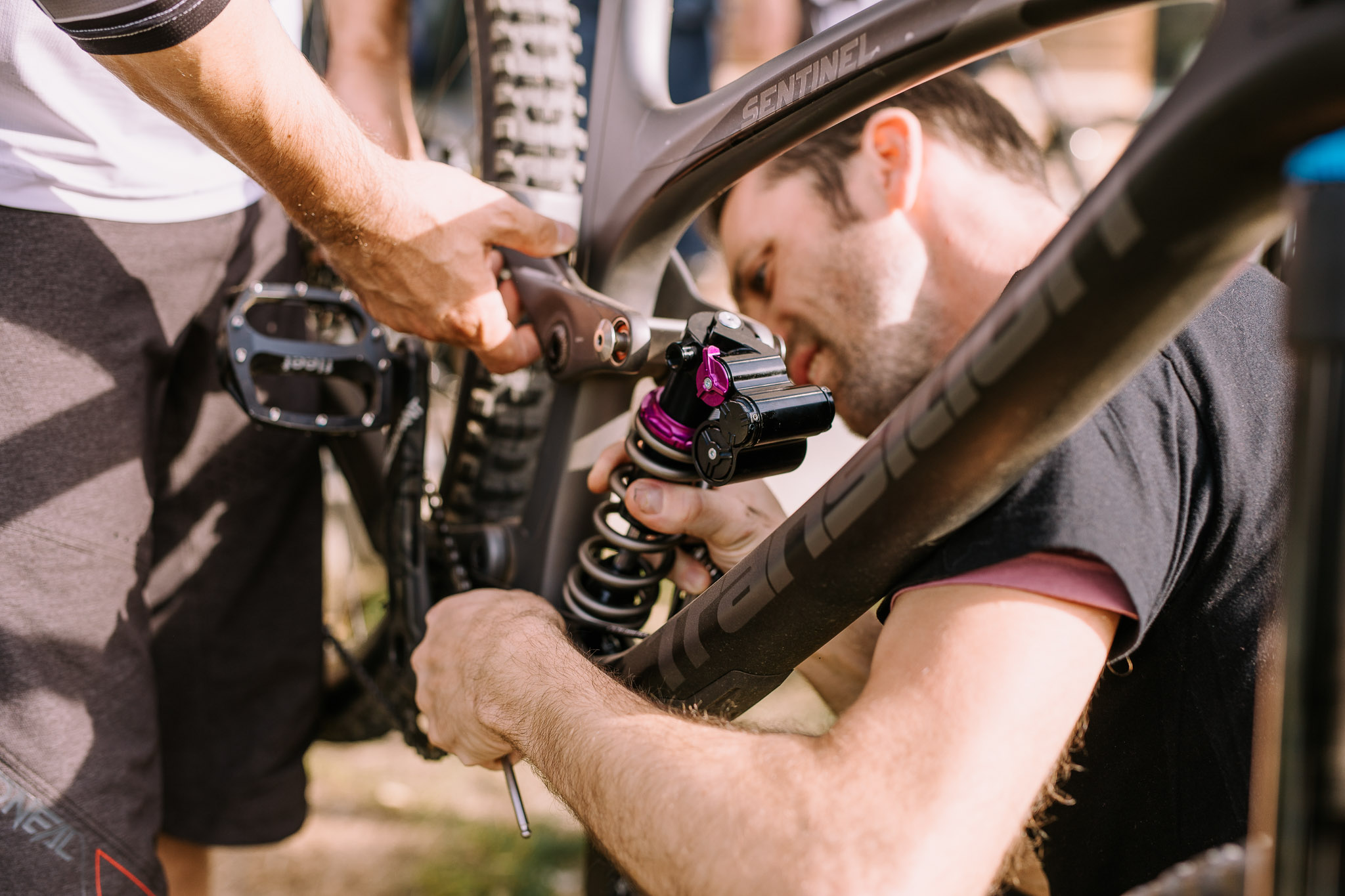 Le début de la présentation commence et on ne sait toujours pas quelle potion magique va sortir du chaudron. Fabien et Julien nous parlent des nouvelles orientations prises par Fast Suspension ; elles sont plutôt radicales et ambitieuses. Fini les préparations et adaptations sur les suspensions des autres ! Fast Suspension veut s’imposer en tant que marque de suspensions indépendante. Beaucoup de produits – dont le fameux kit charger Pike – seront proposés jusqu’à épuisement des stocks, hors SAV bien entendu. Le service suspensions Fox et RockShox, ainsi que le SAV officiel Cannondale, sont évidemment maintenus.
