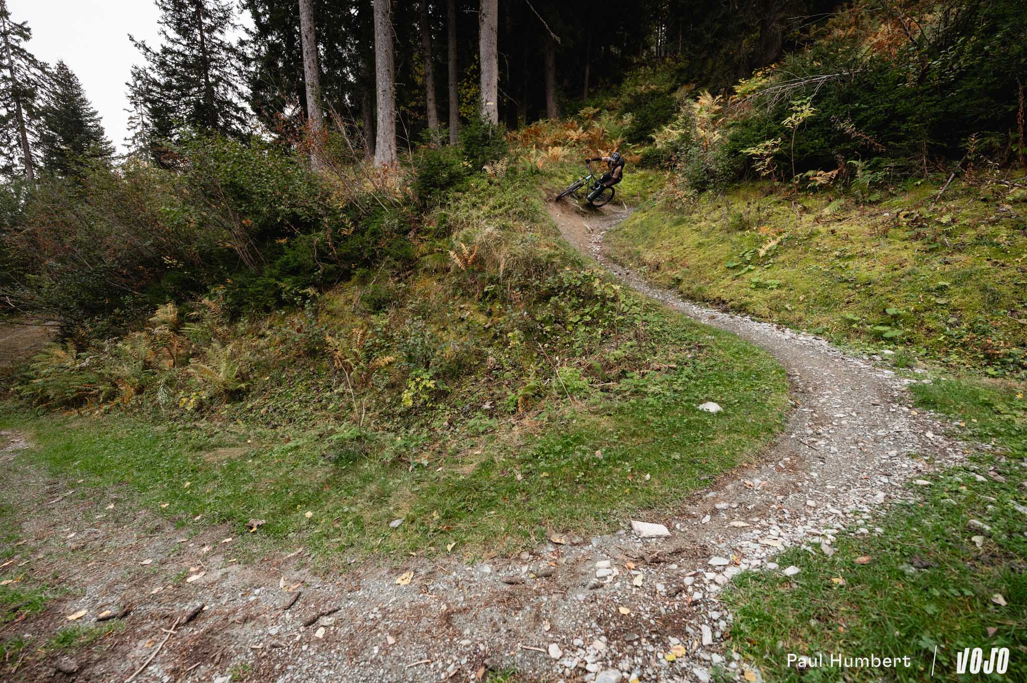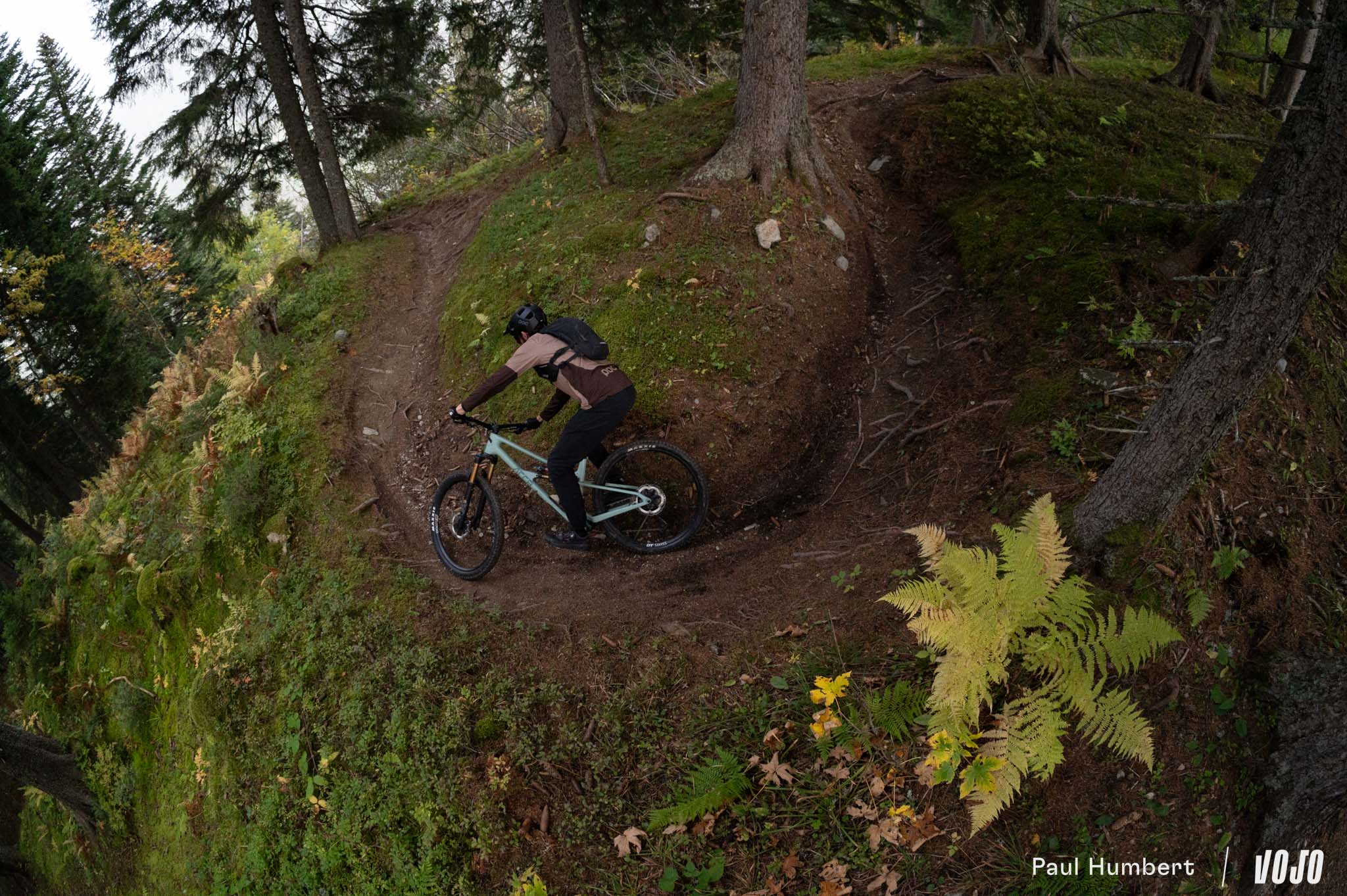 La rigidité semble bien dosée et le vélo est maniable. La suspension paraît plutôt linaire, mais on ne ressent de choc en butée. Une fois en confiance avec le grip, le vélo est assez lisible et on se surprend à jouer avec assez rapidement.