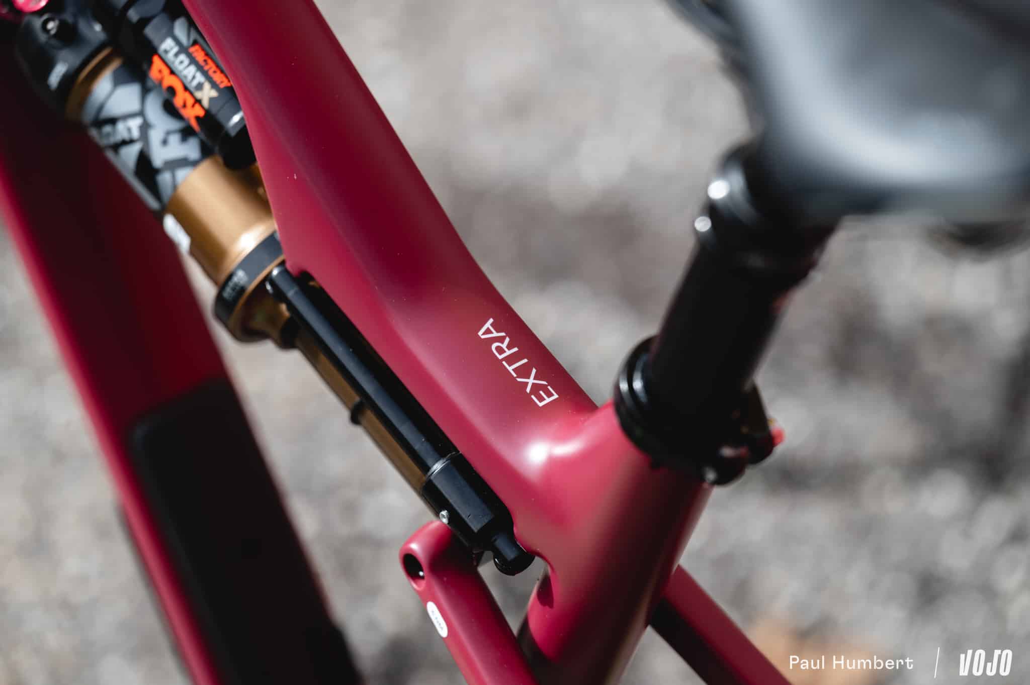 S’il ne fallait garder qu’une seule nouveauté sur cette seconde génération de l’Extra, ce serait inévitablement celle-ci ! Le modèle enduro abandonne son traditionnel basculeur pour reprendre le curieux système à glissières inauguré sur le modèle cross-country de la marque, l’Evolve FS (cf. Nouveauté | ARC8 Evolve FS : vers la fin du downcountry ?). Il s’agit là de deux plongeurs qui remplacent la biellette. D’ailleurs, les matériaux et traitements sont identiques à ceux d’une fourche ou d’un amortisseur, tant pour les deux plongeurs que pour les bagues de guidage.