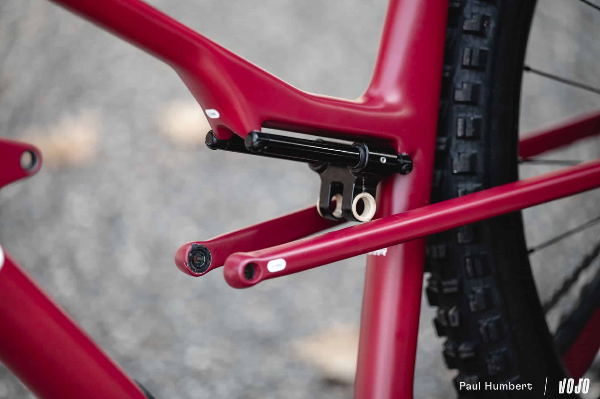 Pour Arc8, c’est une manière de travailler « en ligne » avec les forces qui poussent « droit » dans la suspension et sans le bras de levier d’une biellette. Côté rigidité, les points de pivots supplémentaires ayant été supprimés, c’est tout le triangle arrière qui l’assure. Pour Arc8, des tubes plus gros auraient apporté trop de rigidité, et cette construction « fine » mais monobloc offre juste ce qu’il faut.