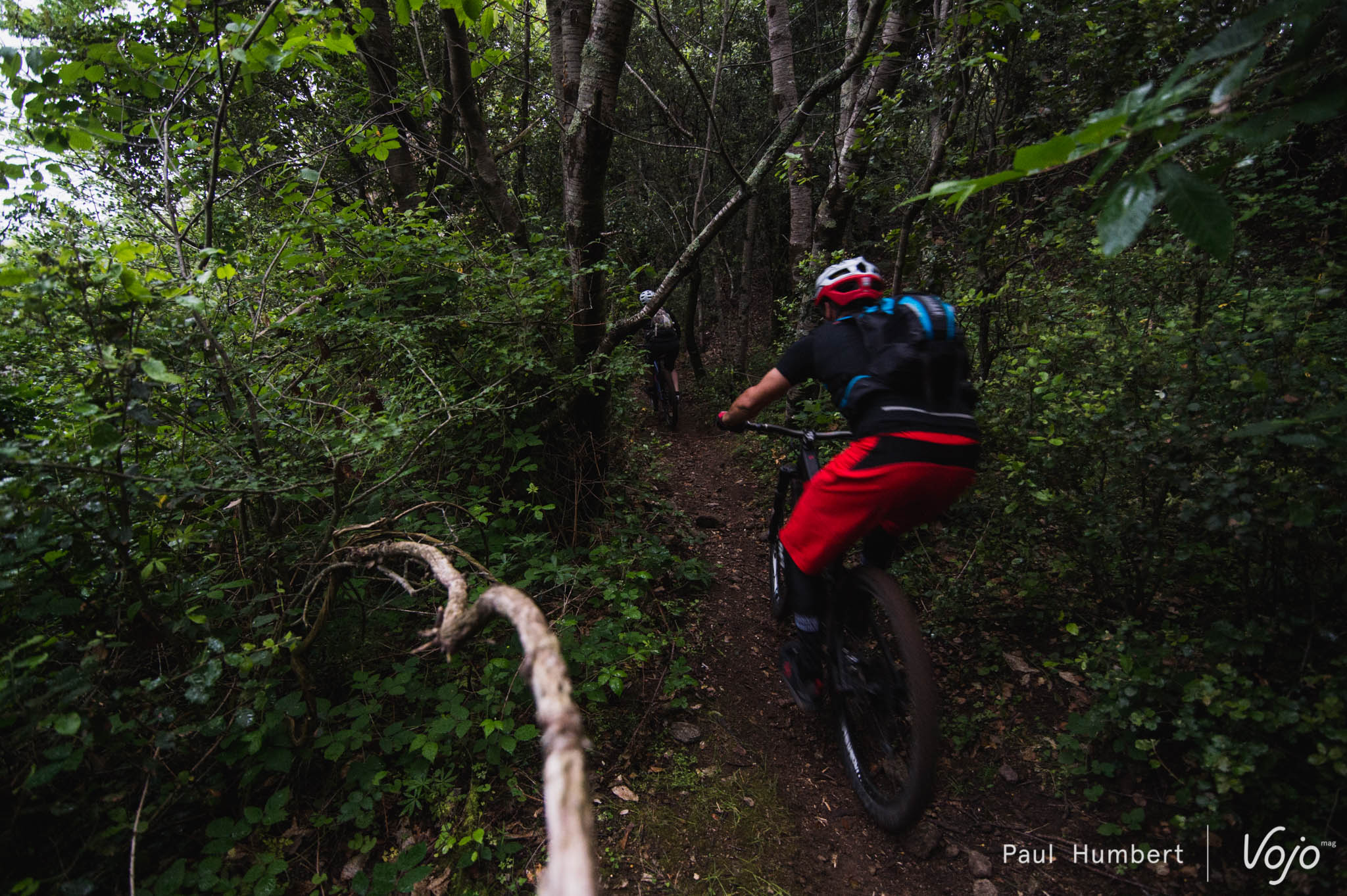 Stephane a réalisé un boulot de fou pour tout débroussailler. Notre petit groupe ne boude pas son plaisir sur ce qu’on découvre être la seule descente sans gros cailloux du massif. Tout en flow, Didier et Sandrine ont le sourire aux lèvres.