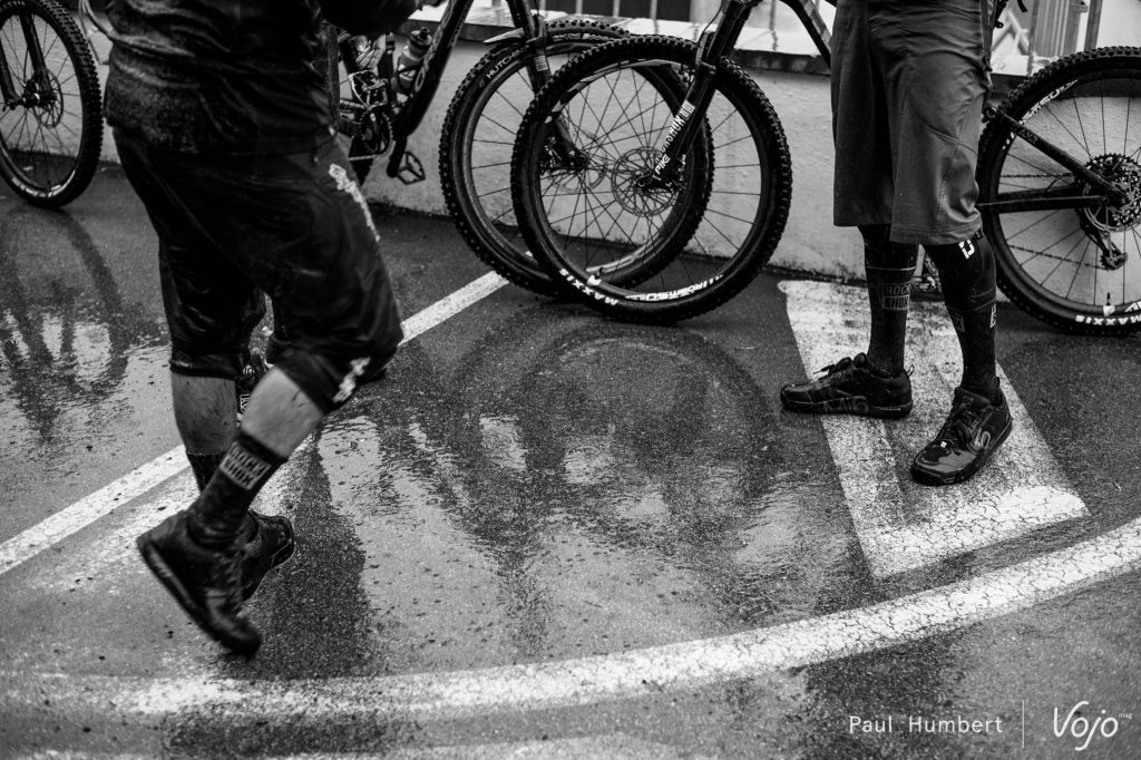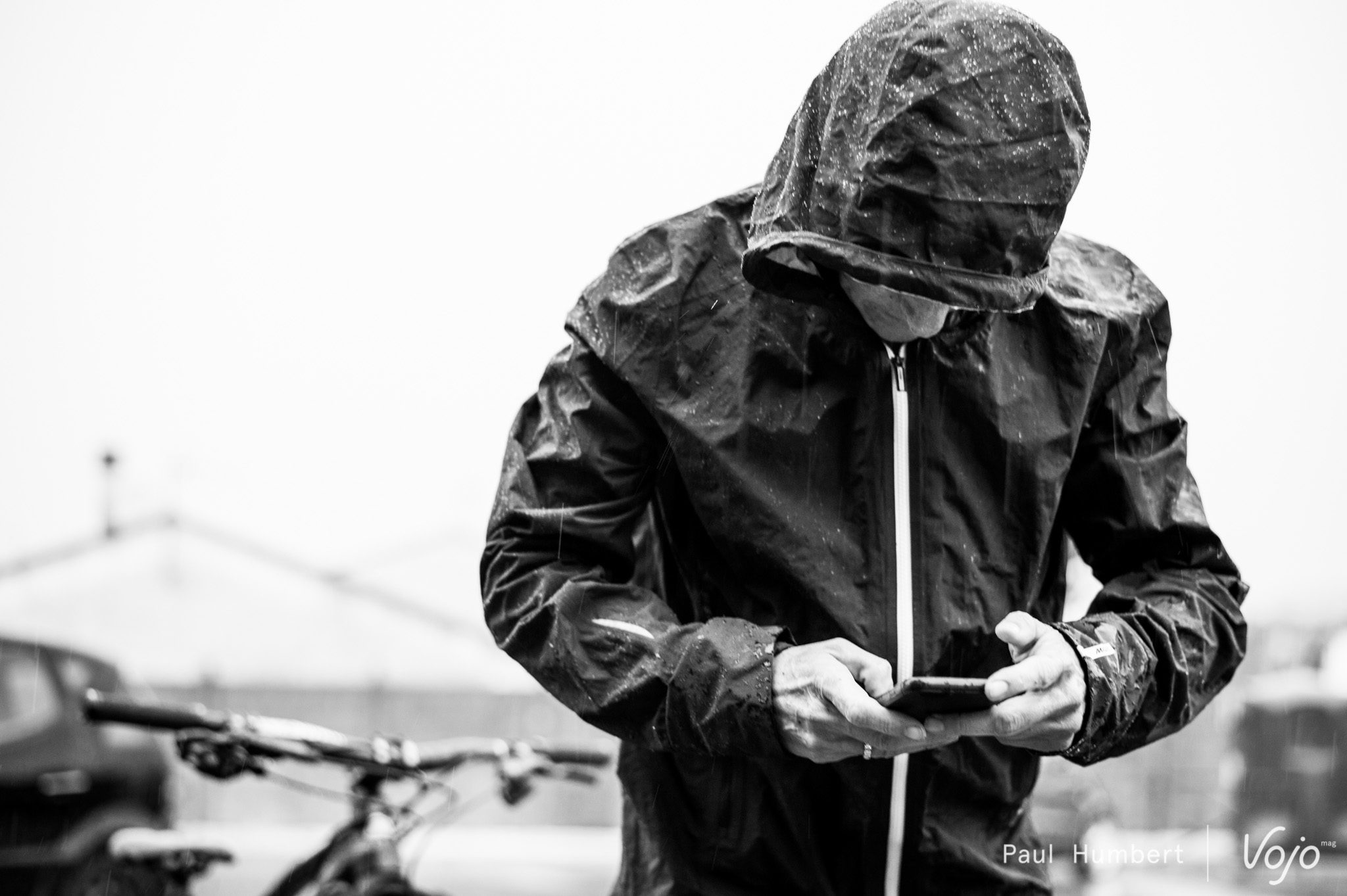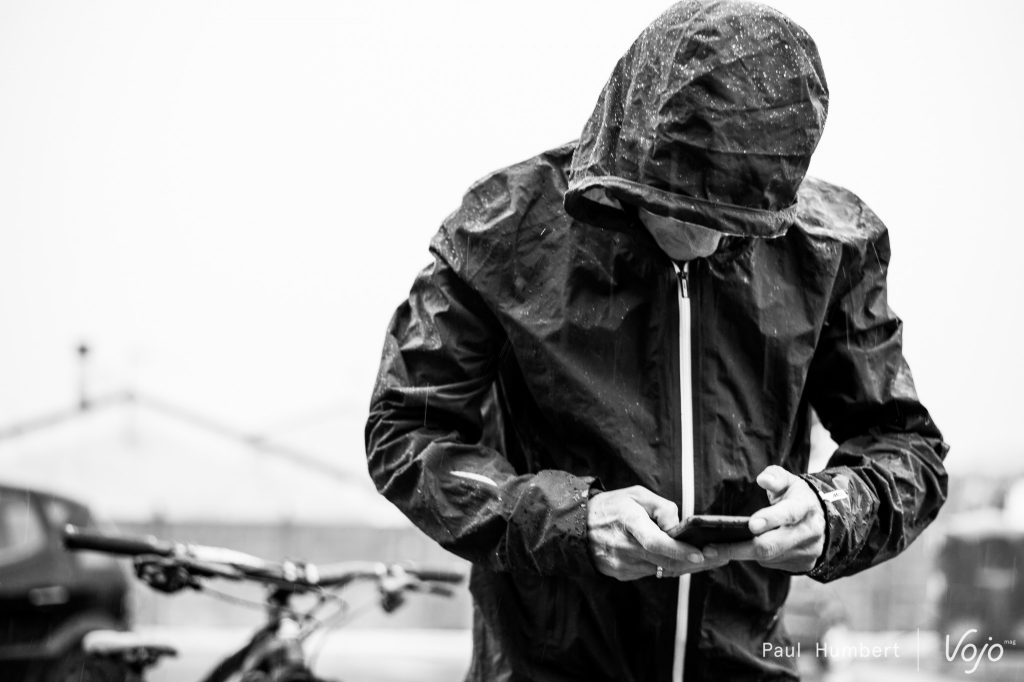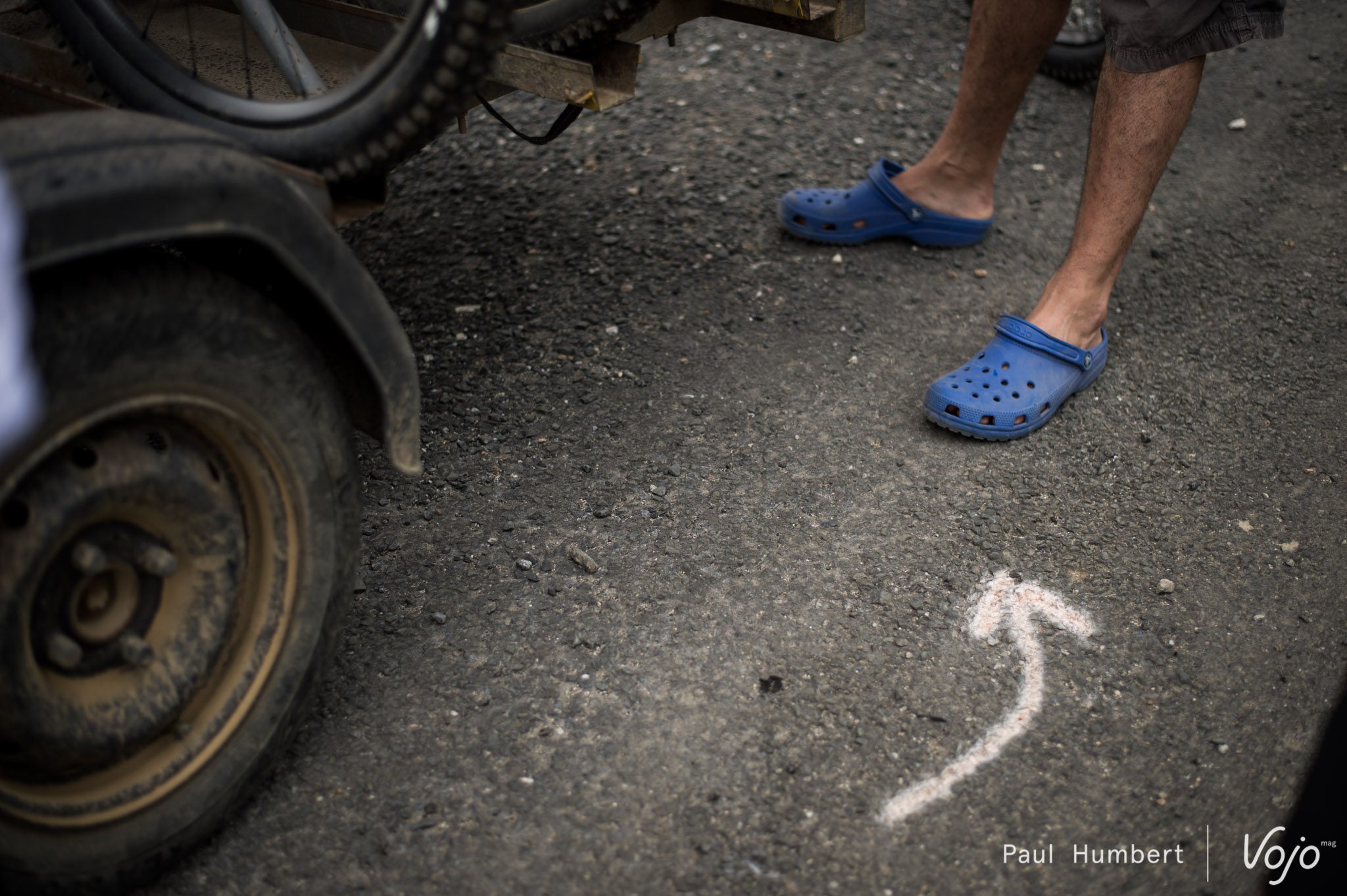 Nous l’entamons sous quelques gouttes, avant de rapidement terminer sous la douche. Anne-Caroline glisse un dernier conseil à Sandrine pour rouler dans de telles conditions : « Roule dans la rigole, là où l’eau coule. »