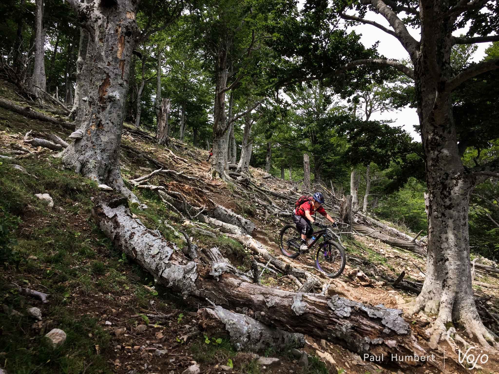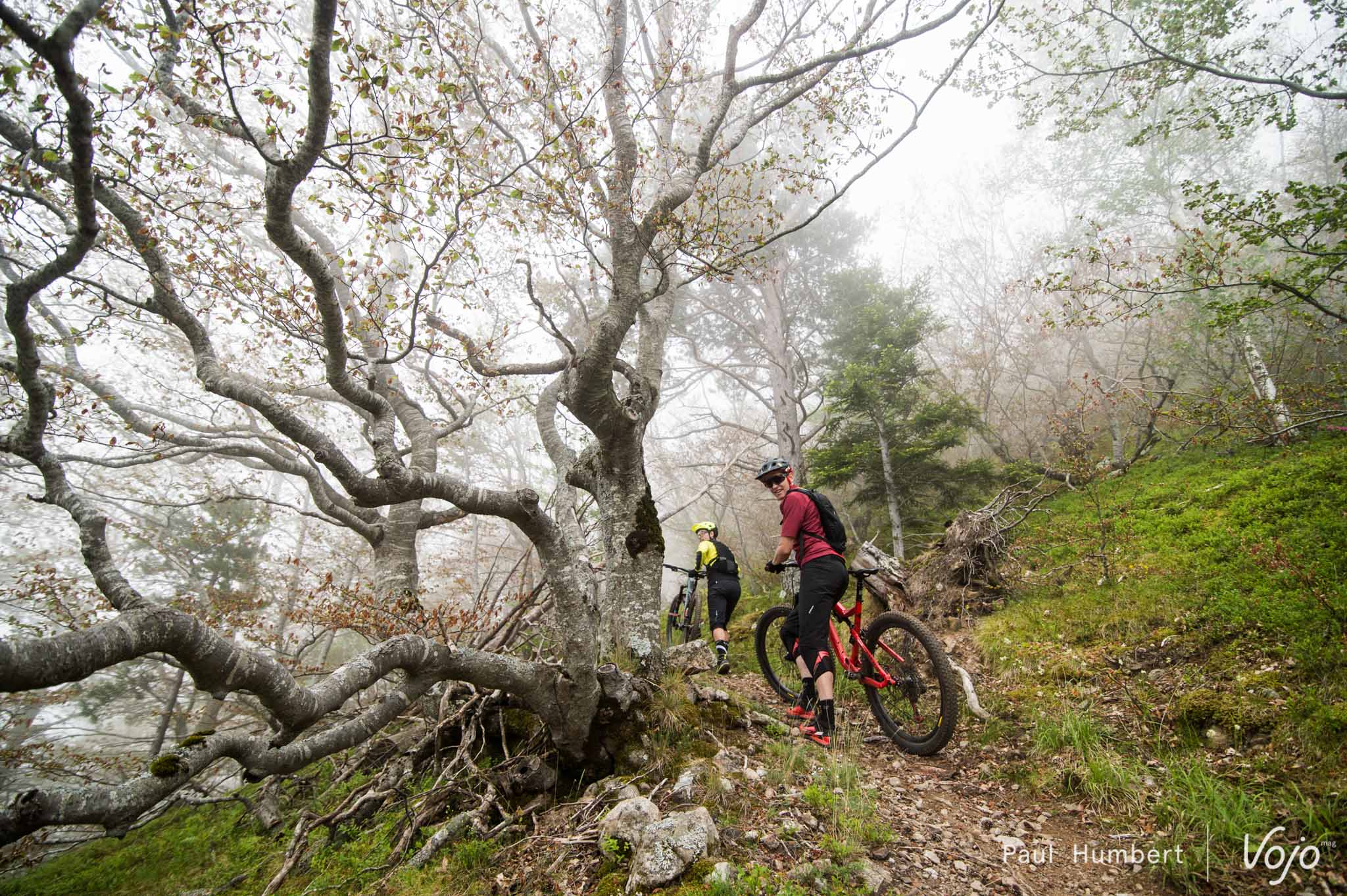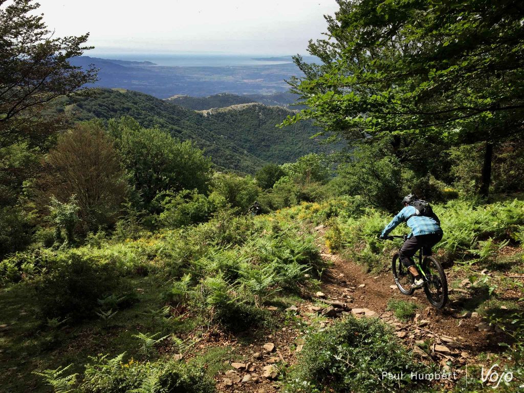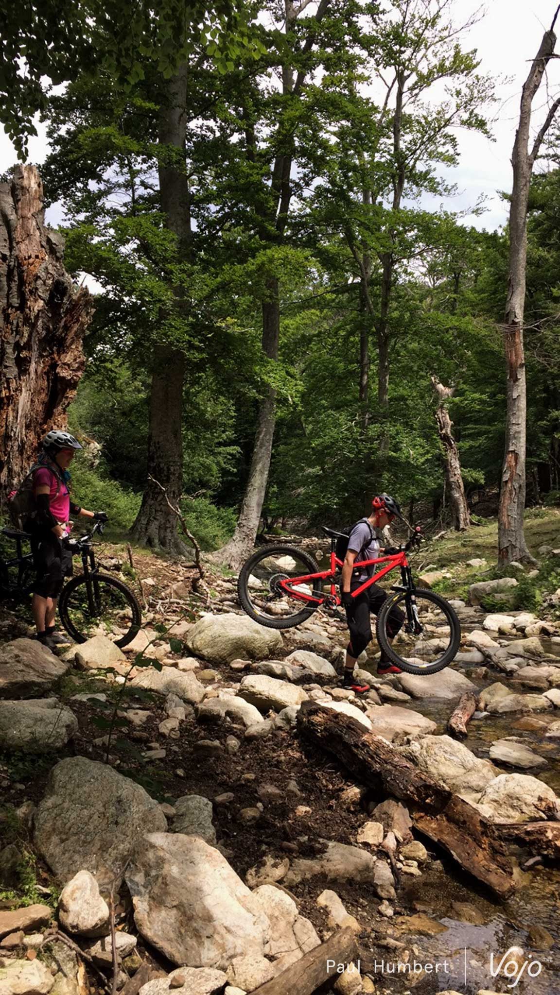Stephane a réalisé un boulot de fou pour tout débroussailler. Notre petit groupe ne boude pas son plaisir sur ce qu’on découvre être la seule descente sans gros cailloux du massif. Tout en flow, Didier et Sandrine ont le sourire aux lèvres.
