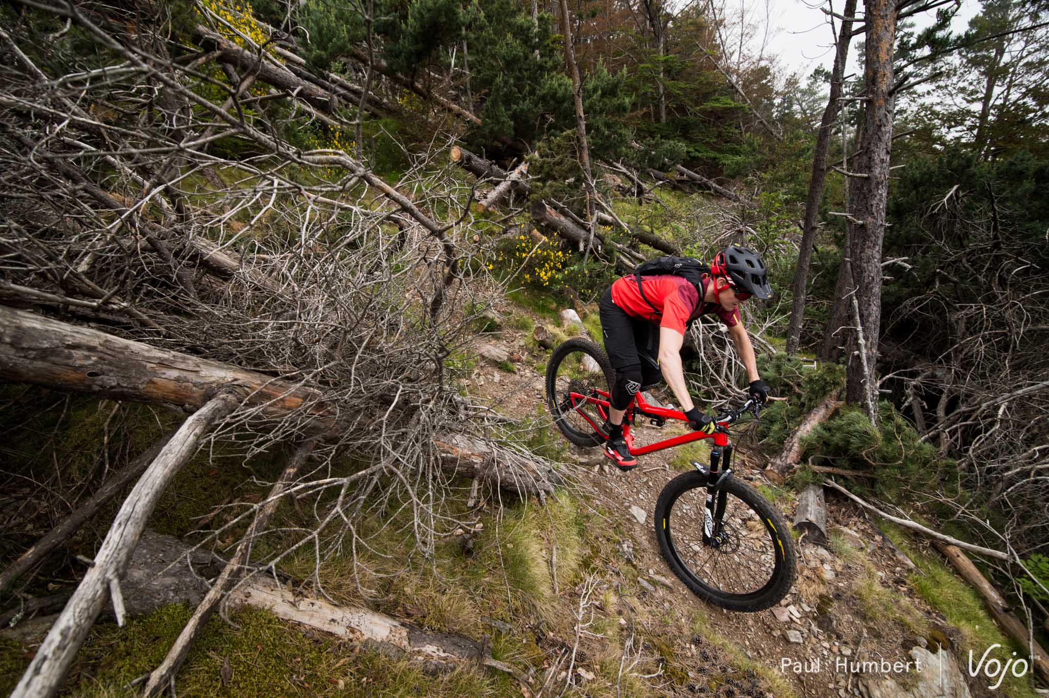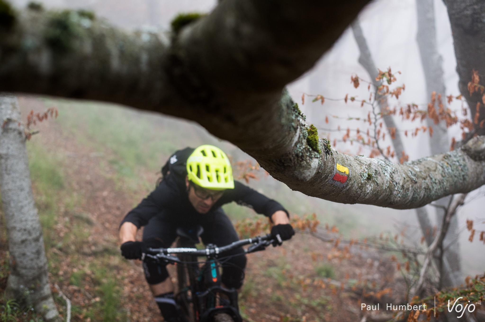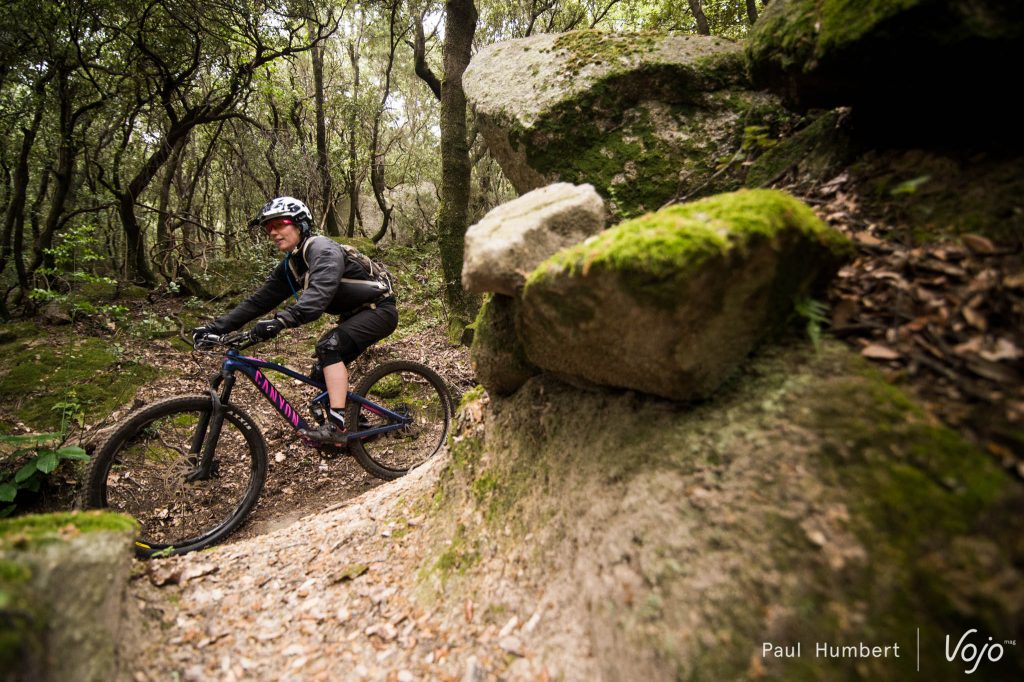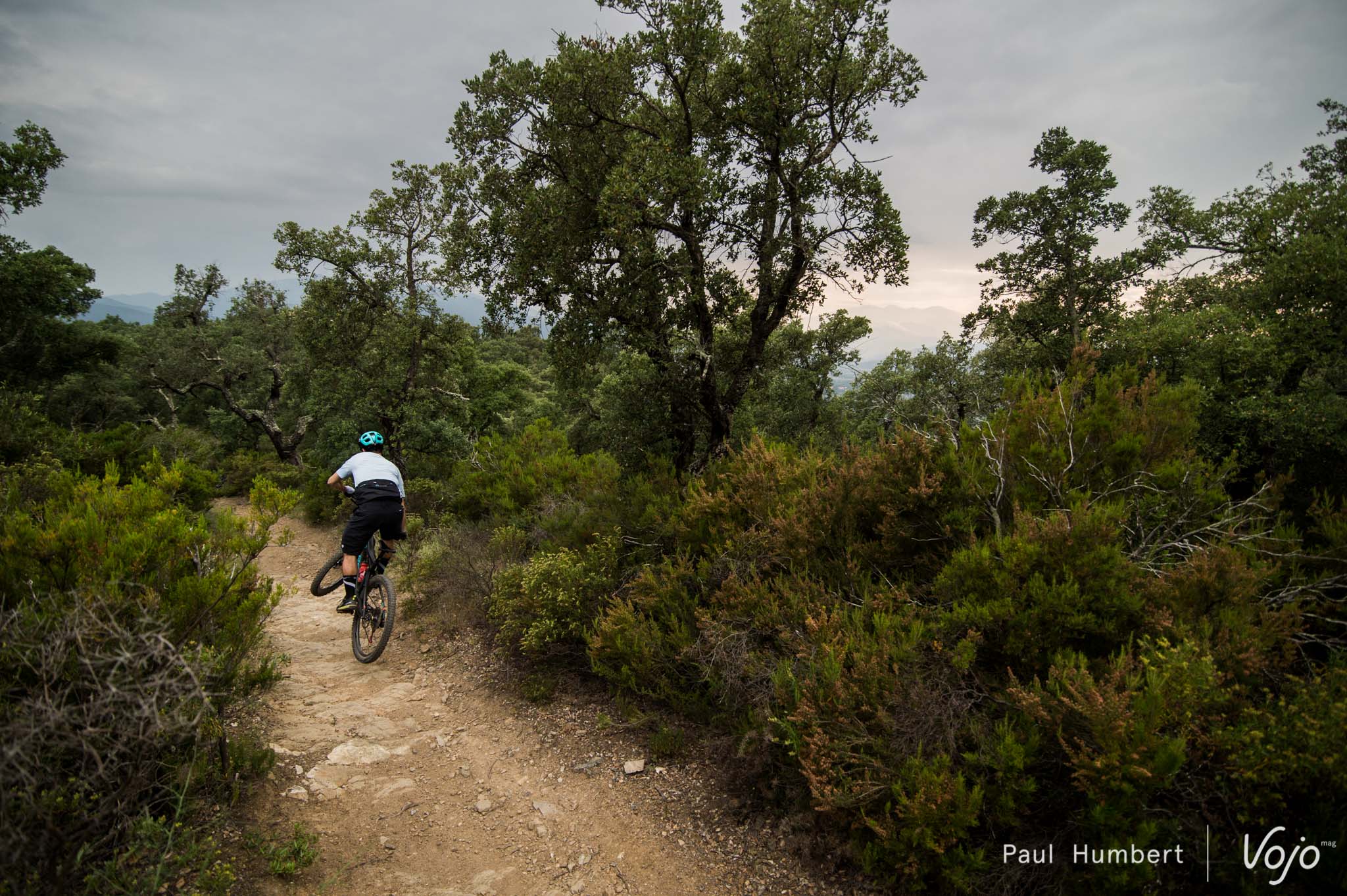 Stephane a réalisé un boulot de fou pour tout débroussailler. Notre petit groupe ne boude pas son plaisir sur ce qu’on découvre être la seule descente sans gros cailloux du massif. Tout en flow, Didier et Sandrine ont le sourire aux lèvres.
