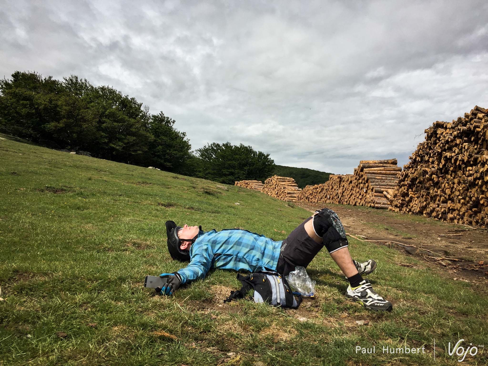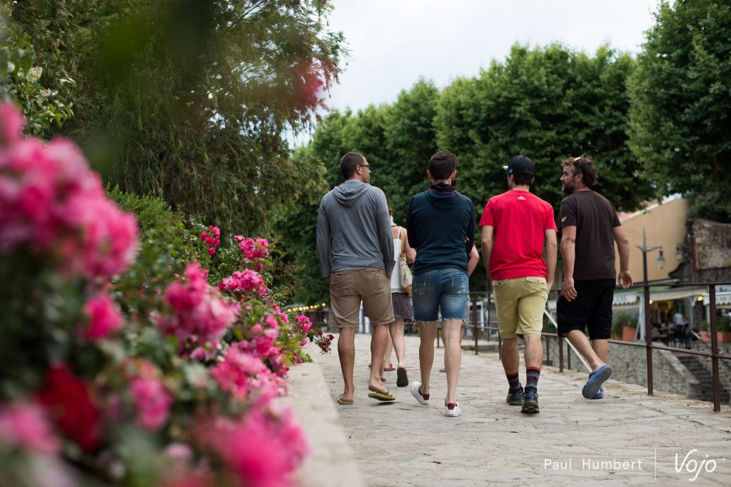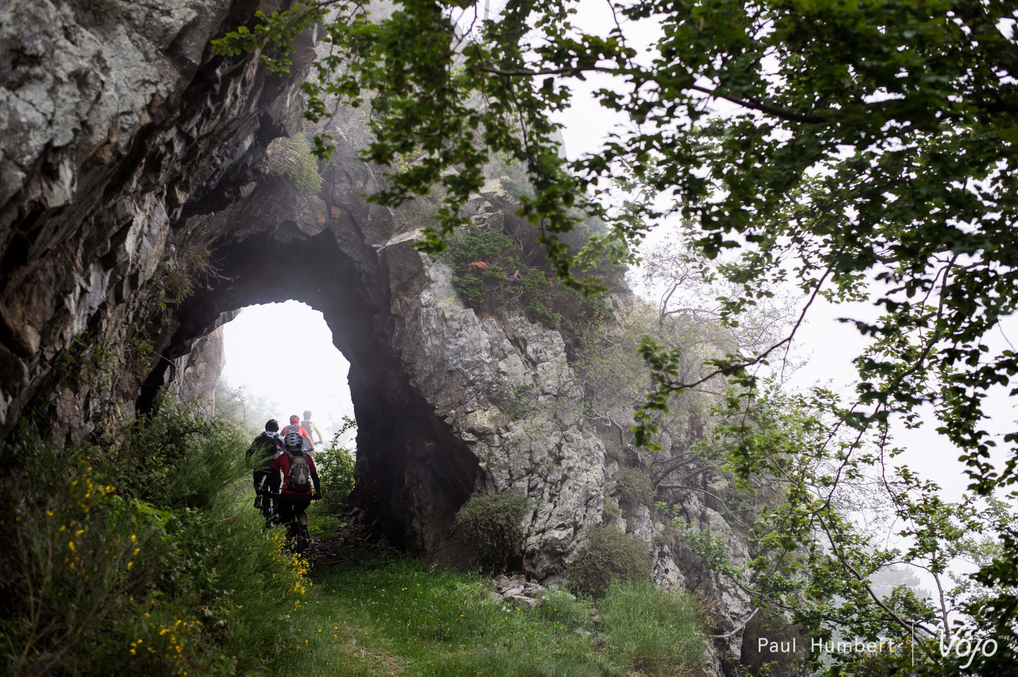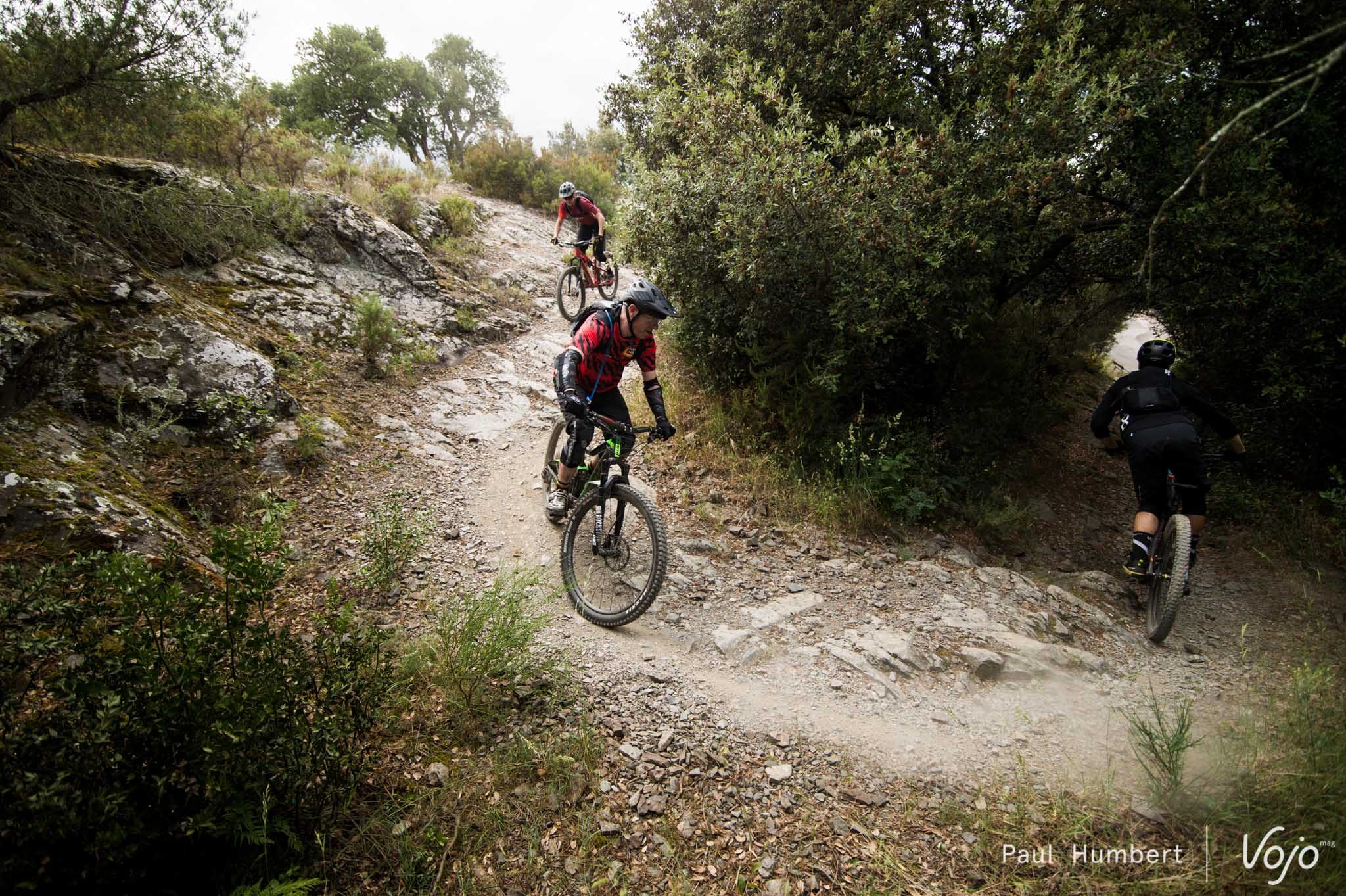 Notre petit groupe trouve son rythme, ses codes, ses blagues et on se sent prêt à enchaîner les kilomètres. La météo a toutefois décidé de nous imposer un nouvel exercice de cohésion (ou de « team building », comme vous préférez). Au milieu de notre descente, une pluie tropicale, sans la chaleur de cette dernière, s’abat sur nous. Bienvenue dans le sud de la France !