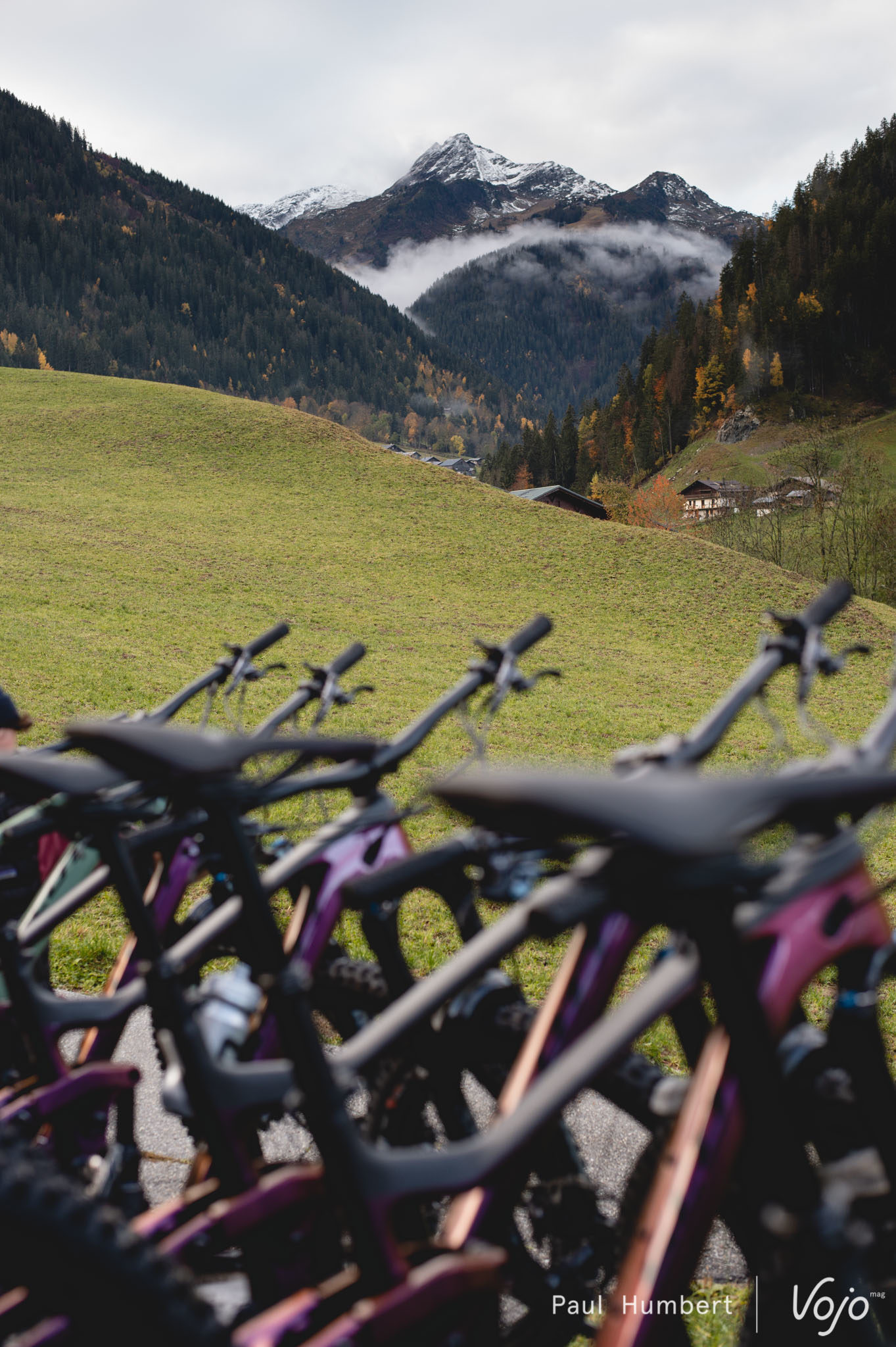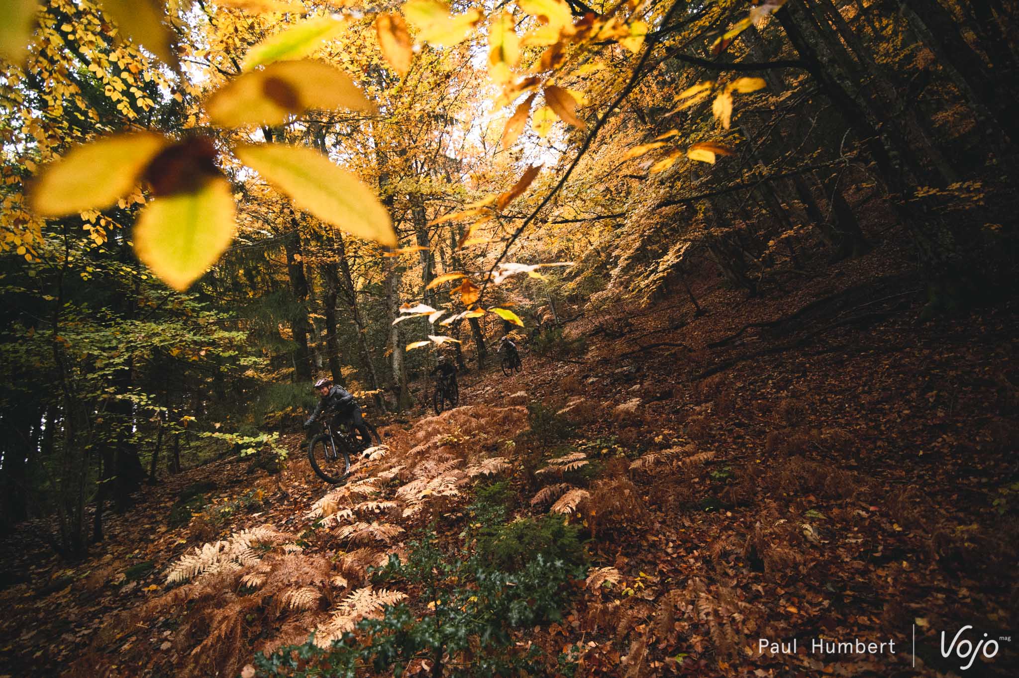 Un peu de pédalage attend ensuite la joyeuse bande, soit juste le temps nécessaire pour une petite explication de l’utilité de la commande Twinlock 3 positions qui s’actionne à la gauche du guidon et qui contrôle le débattement de l’amortisseur ainsi que le réglage de compression.