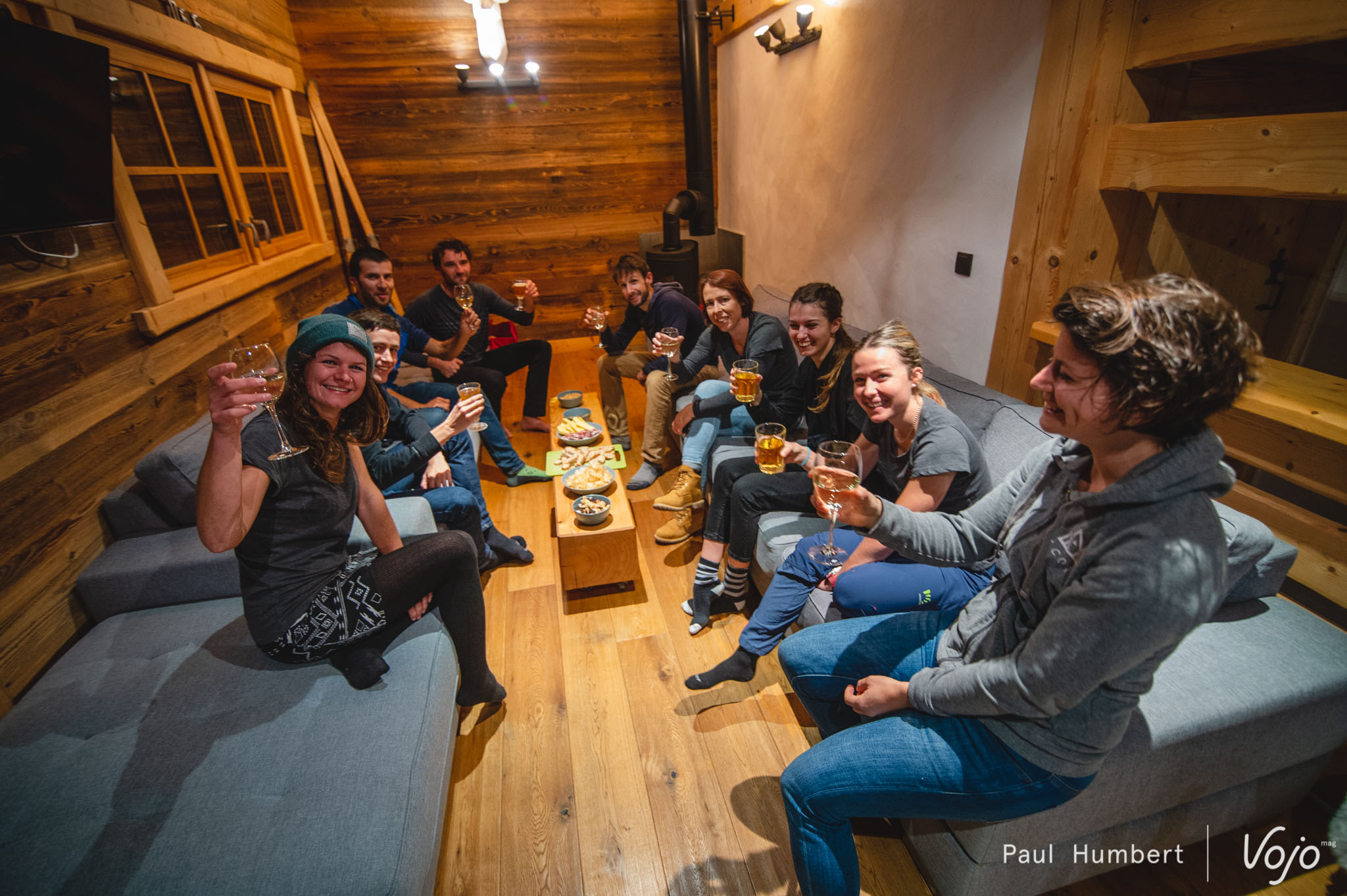Retour au chalet Boule de Gomme à Arêche, pour une bonne douche, un apéro terroir et une rencontre avec l’équipe en charge du développement des sentiers dans le Beaufortain.
