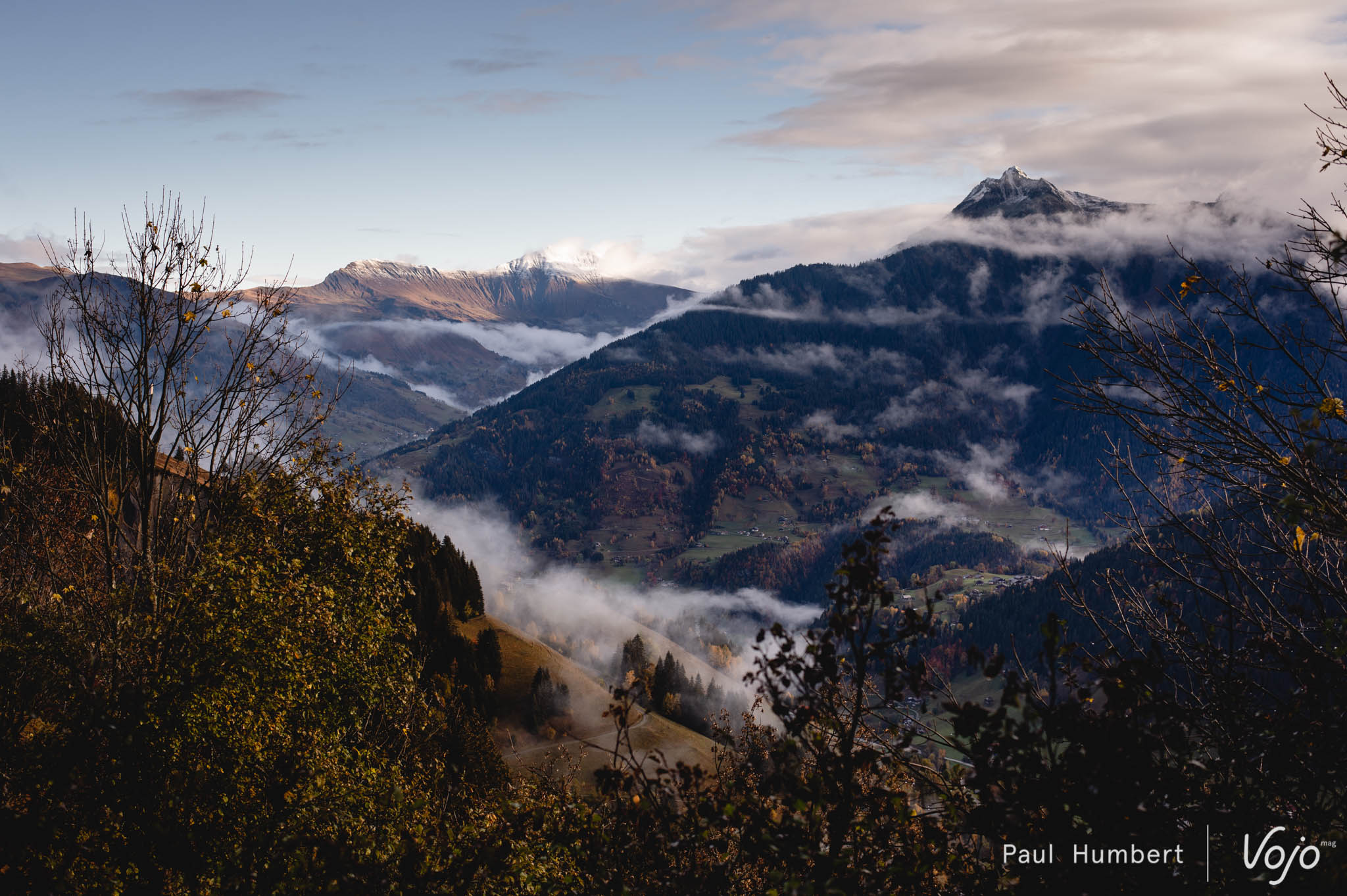 Les nuages matinaux restent accrochés juste au-dessus de la cime des arbres et dessinent des paysages assez poétiques.