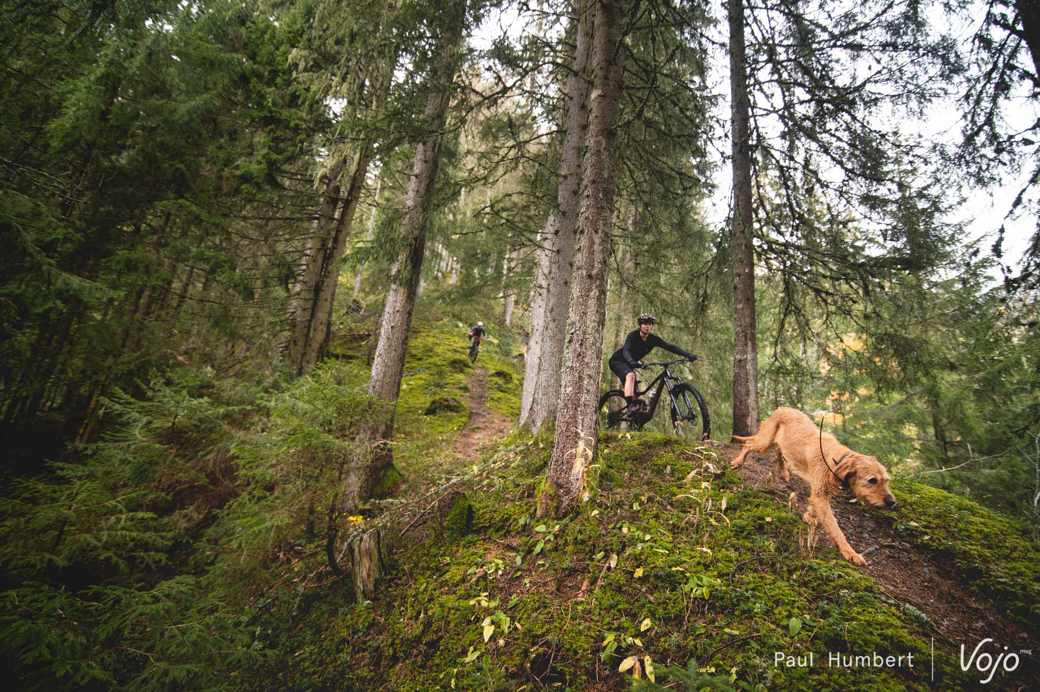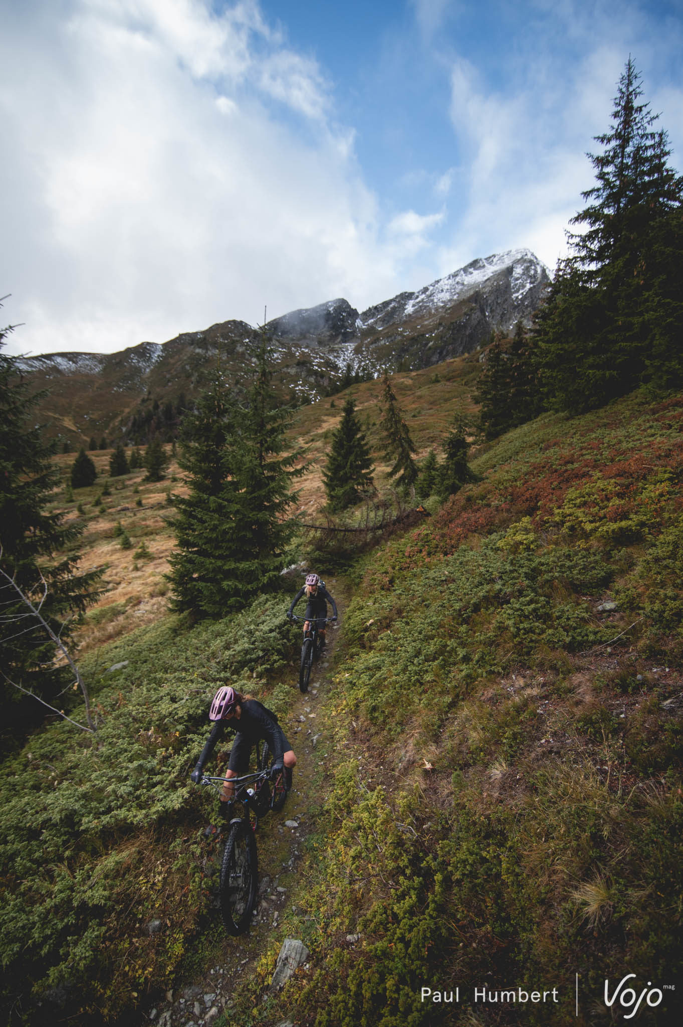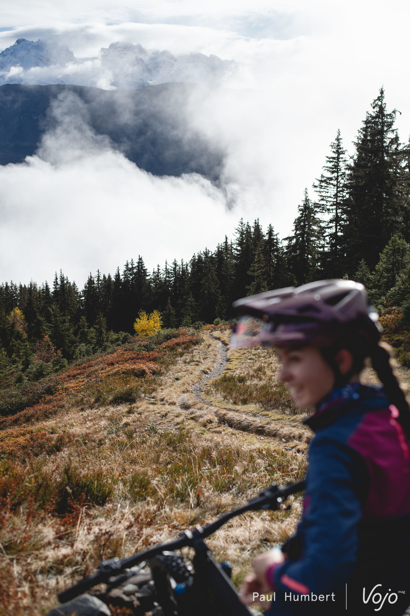 On part sur une toute nouvelle descente du réseau de sentiers du Beaufortain : la myrtille ! On slalome dans ces dernières, avant de bifurquer dans la forêt.