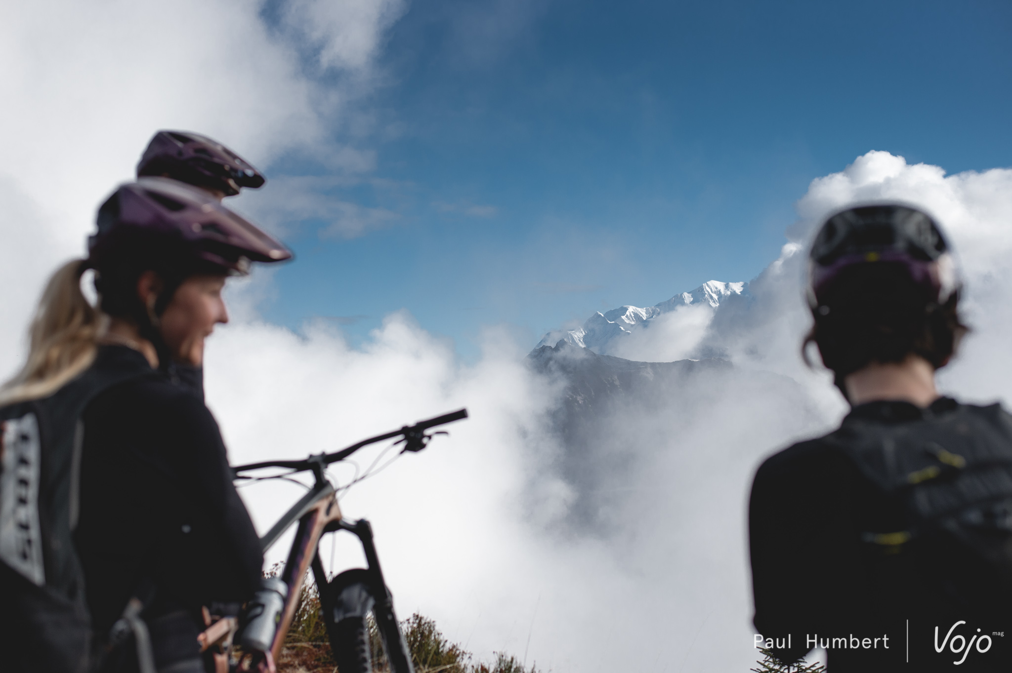 On rentre dans le vif du sujet avec une belle montée sur une piste forestière. Au sommet, récompense : le Mont blanc pointe entre les nuages et vient saluer locaux et touristes.