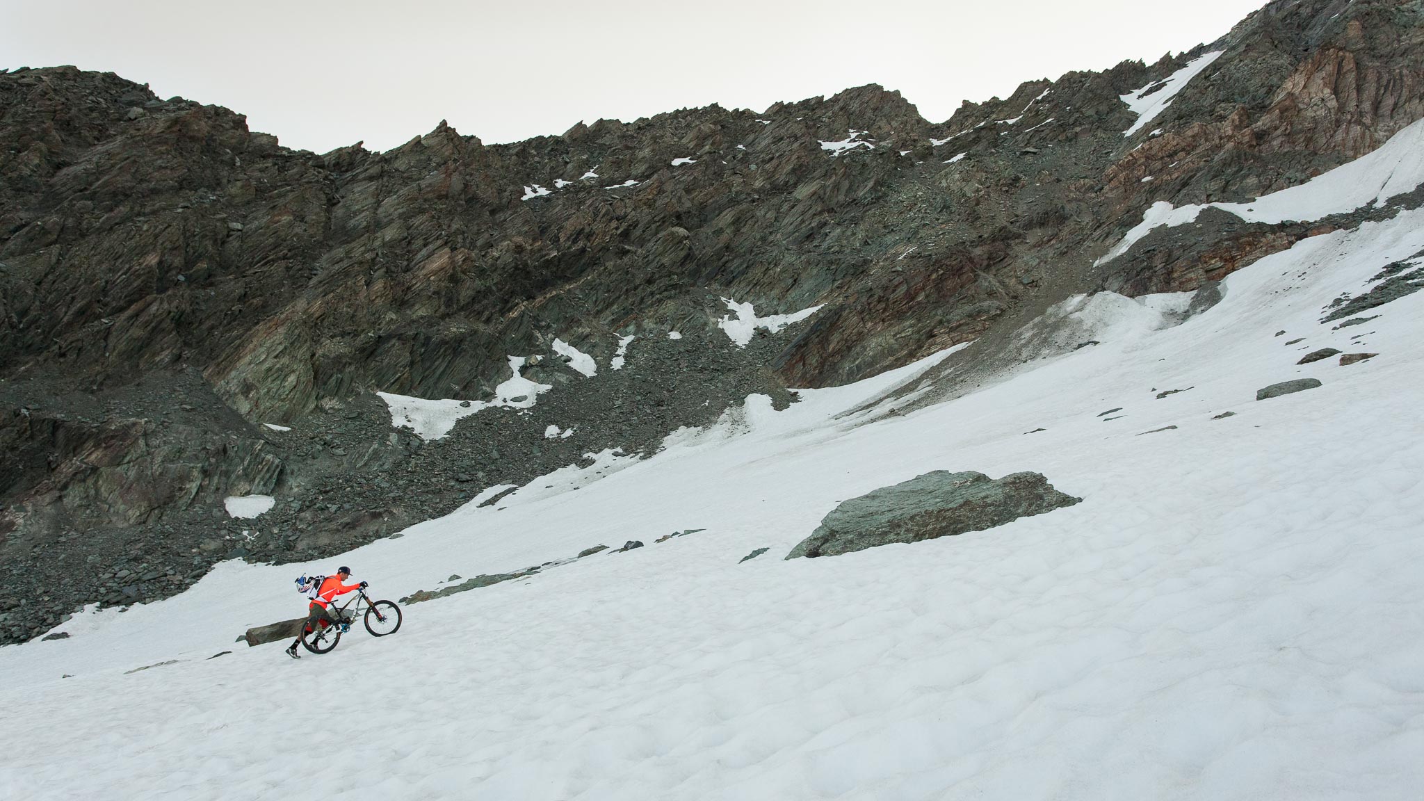 J’avais ce projet en tête depuis des années et j’avais déjà les idées assez claires sur ce dont j’avais besoin. Mais le fait est qu’il y a énormément de nouvelles questions qui surgissent dès qu’on commence réellement. Je suis d’abord allé dans un magasin d’alpinisme à Gand pour acheter les meilleurs et les plus solides des harnais, des cordes et des mousquetons. Ils ont été plutôt surpris quand je leur ai dit que c’était pour rouler à vélo sur une slackline tendue dans les Alpes. Ensuite, j’ai choisi de rouler mon vélo d’enduro car cela a plus de sens dans ce genre de paysages, mais aussi parce que dans la vidéo, il y a toute une intro quand je viens du glacier, pour laquelle l’enduro est plus adapté. Puis, je suis un vttiste. Le trial est ma discipline de coeur, mais j’aime élargir mes horizons et rouler d’autres machines. Pour revenir à la préparation, au-delà du matériel, c’est plutôt la relation avec Lukas qui m’a permis de garantir ma sécurité. Chaque fois que j’avais une idée, je l’appelais et il pointait directement les problèmes potentiels. Par exemple, il est apparu que certains éléments du vélo pouvaient être des éléments très dangereux dans ces circonstances en cas de chute.