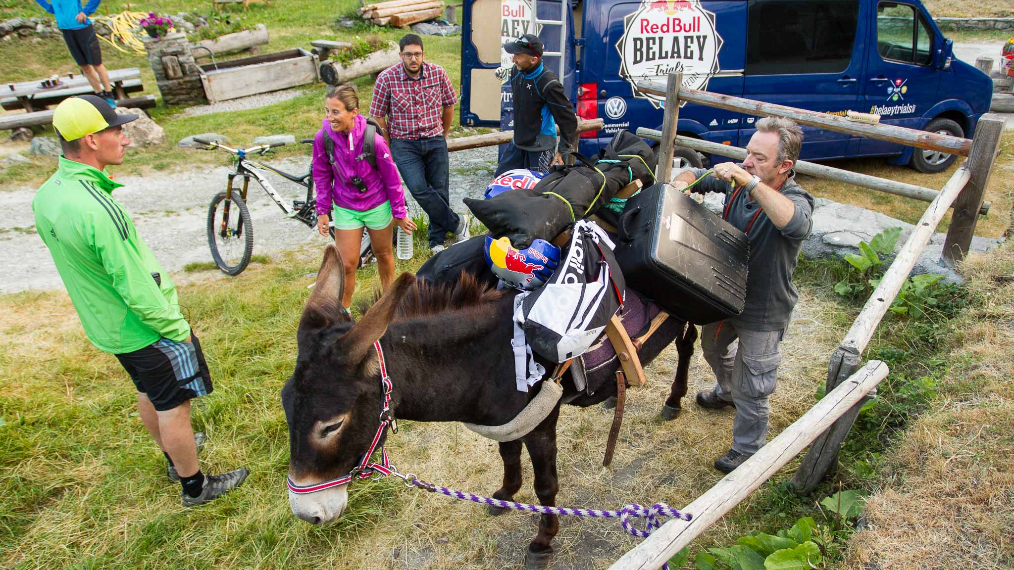 Oui, il a d’abord fallu acheminer tout le matériel jusqu’à l’endroit du shooting. Au total, nous avons dû faire environ 50km et 4000m de dénivelé avec le matériel chargé à dos d’âne ! Ca aussi c’était une fameuse aventure ! Puis, nous avons passé 6 jours à tourner le reste des séquences de la vidéo dans les montagnes aux alentours. Comme le thème de la vidéo est « Balance », je ne voulais pas spécialement de la vitesse, mais rouler dans des endroits où personne n’a probablement jamais roulé dans un style très trialisant. Je voulais que tout cela soit fait avant car le risque de blessure était réel sur la slackline et il fallait que tout le reste soit dans la boîte avant de s’attaquer au clou du spectacle. Rien que pour la partie slackline, cela nous a pris 4 jours supplémentaires. Il a d’abord fallu tout préparer. Puis, je me suis vite rendu compte que je n’y arriverais pas dans ces conditions.