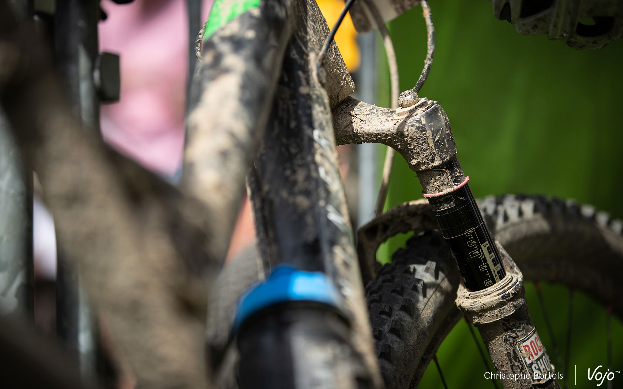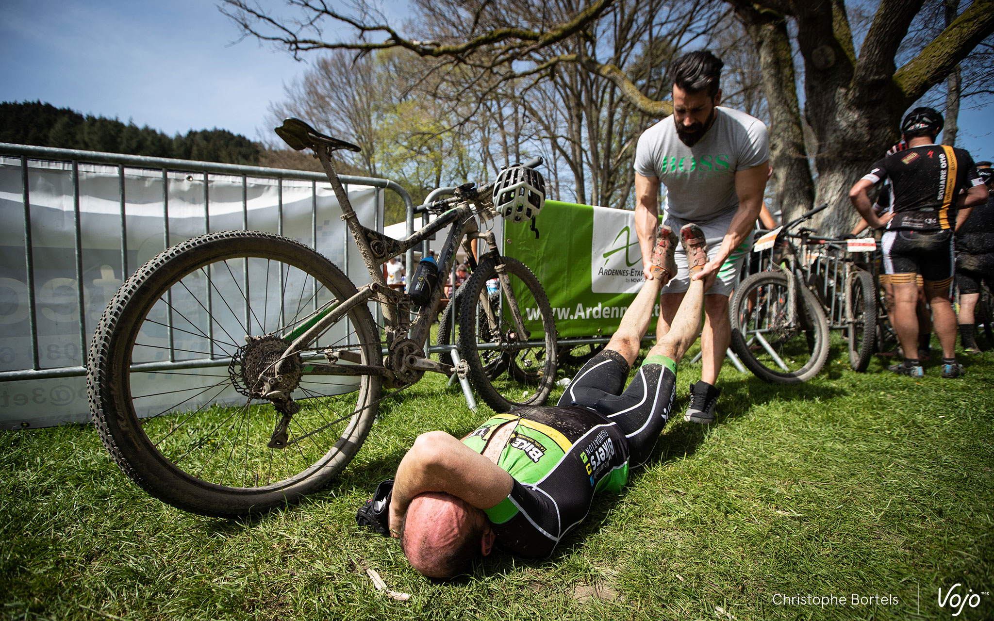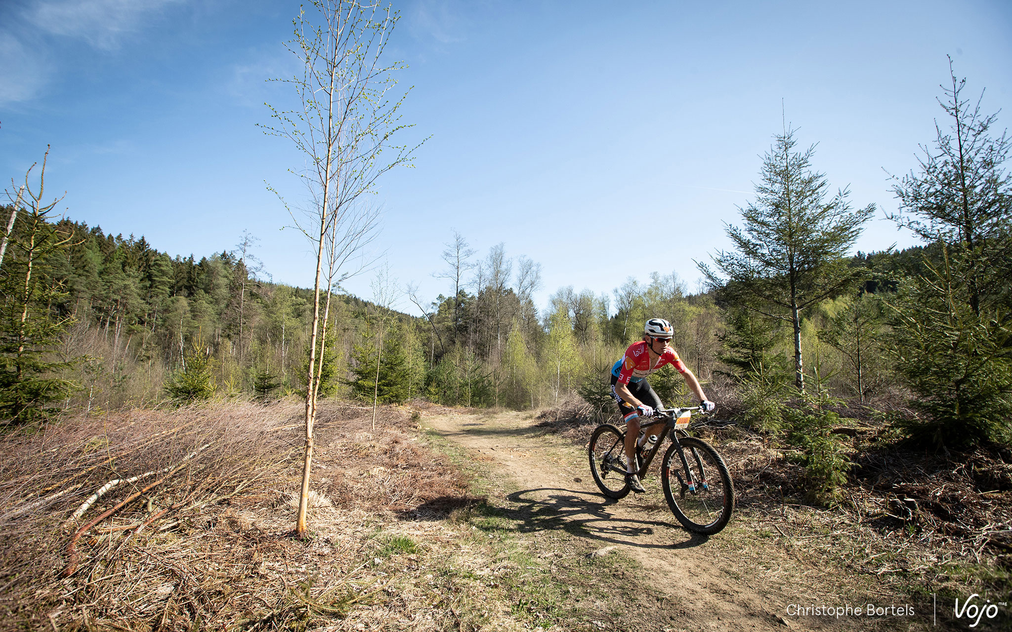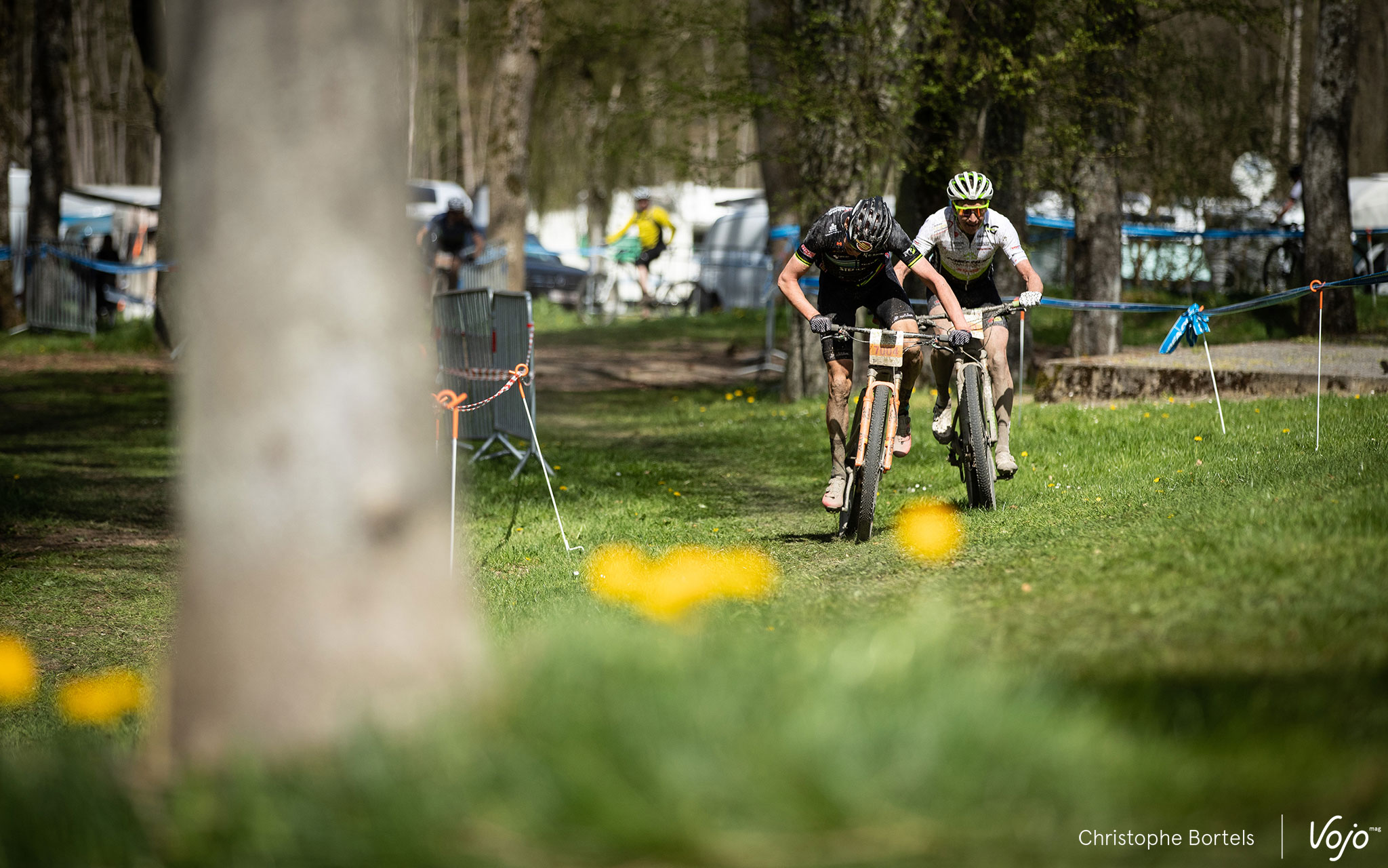 Sébastien Carabin nous raconte cette fin de course à rebondissements : « On était à trois pour la deuxième place. 10-15km avant la fin, ils ont essayé de partir tour à tour. Joris Massaer en a finalement placé une bonne, j’ai contré, et avant la dernière descente on était de nouveau à trois. J’avais 72,5km au compteur et je ne pensais pas qu’on était si proche de l’arrivée… On descendait mieux que Roel Verhoeven et on est partis tous les deux dans la descente. Dans les derniers virages c’était un peu chaud ! (rires) Joris Massaer a attaqué, j’ai essayé de le repasser, de recouper le virage, on s’est emmêlés les guidons, mais finalement il est resté devant… Et dans le dernier virage, il a voulu aller trop vite, il a glissé de l’avant et je suis passé ! »
