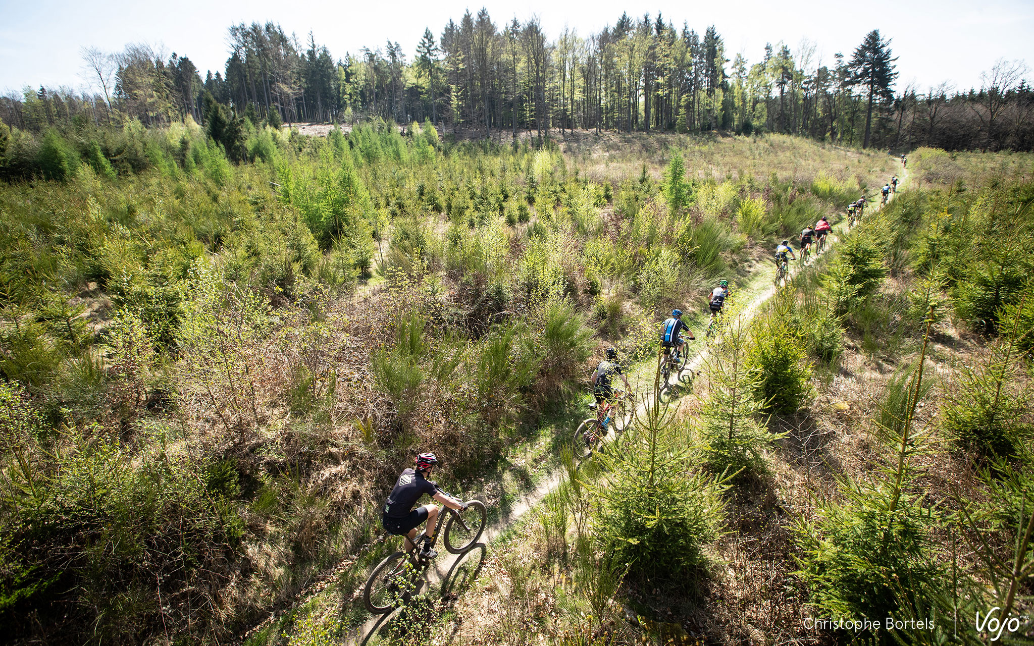Bon, c’est vrai, il fait encore un peu frais au matin, mais les températures dépasseront les 20° plus tard dans la journée, pour le plus grand plaisir des quasi 700 vététistes inscrits sur la plus longue distance du jour, le 75km.