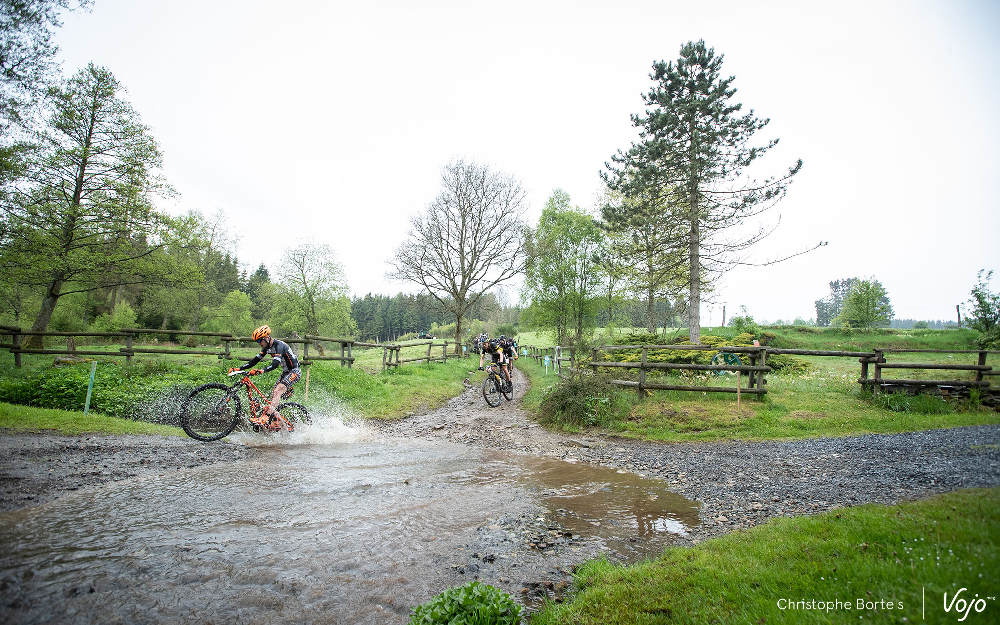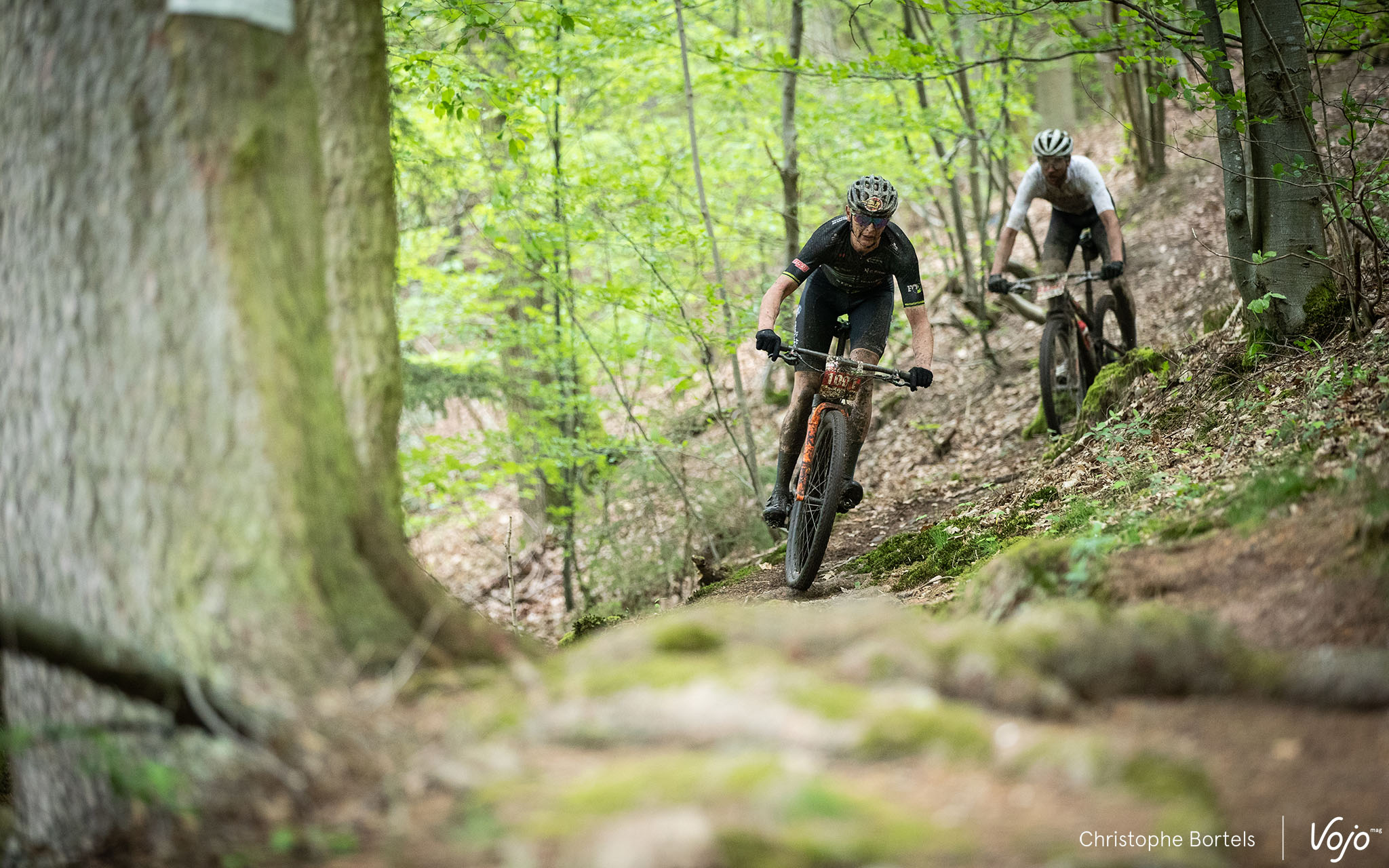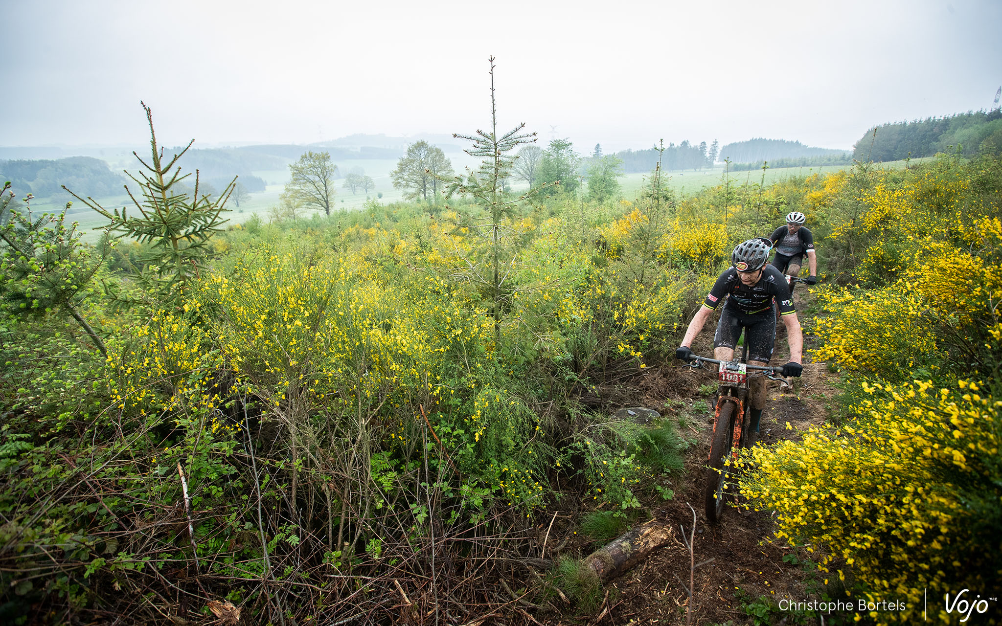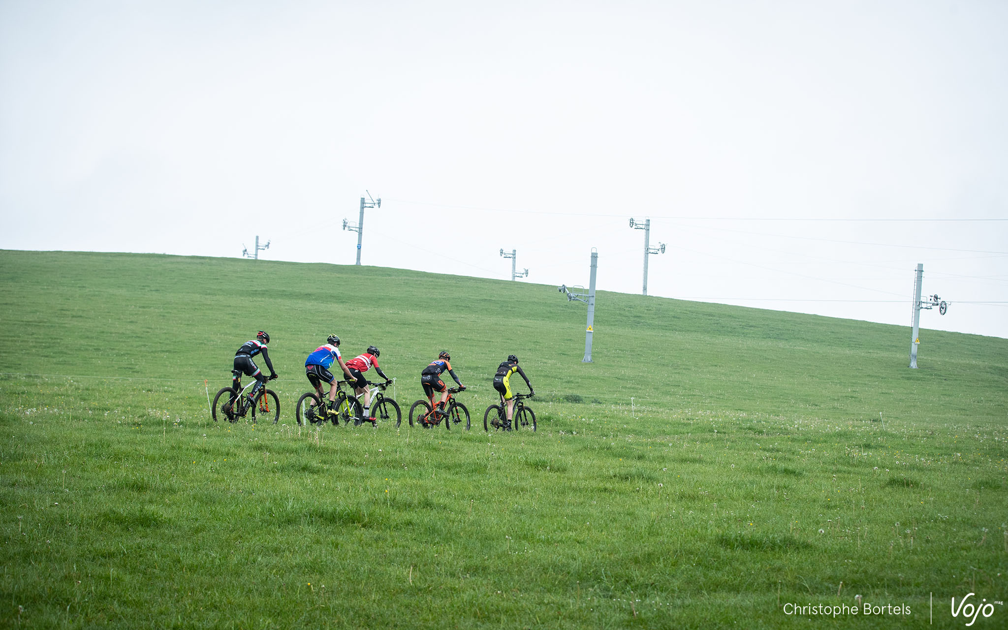 Les concurrents attaquent rapidement la première descente sur l’une des pistes de ski de la Baraque de Fraiture. C’est un parcours certes globalement peu technique mais physique et nerveux qui les attend.
