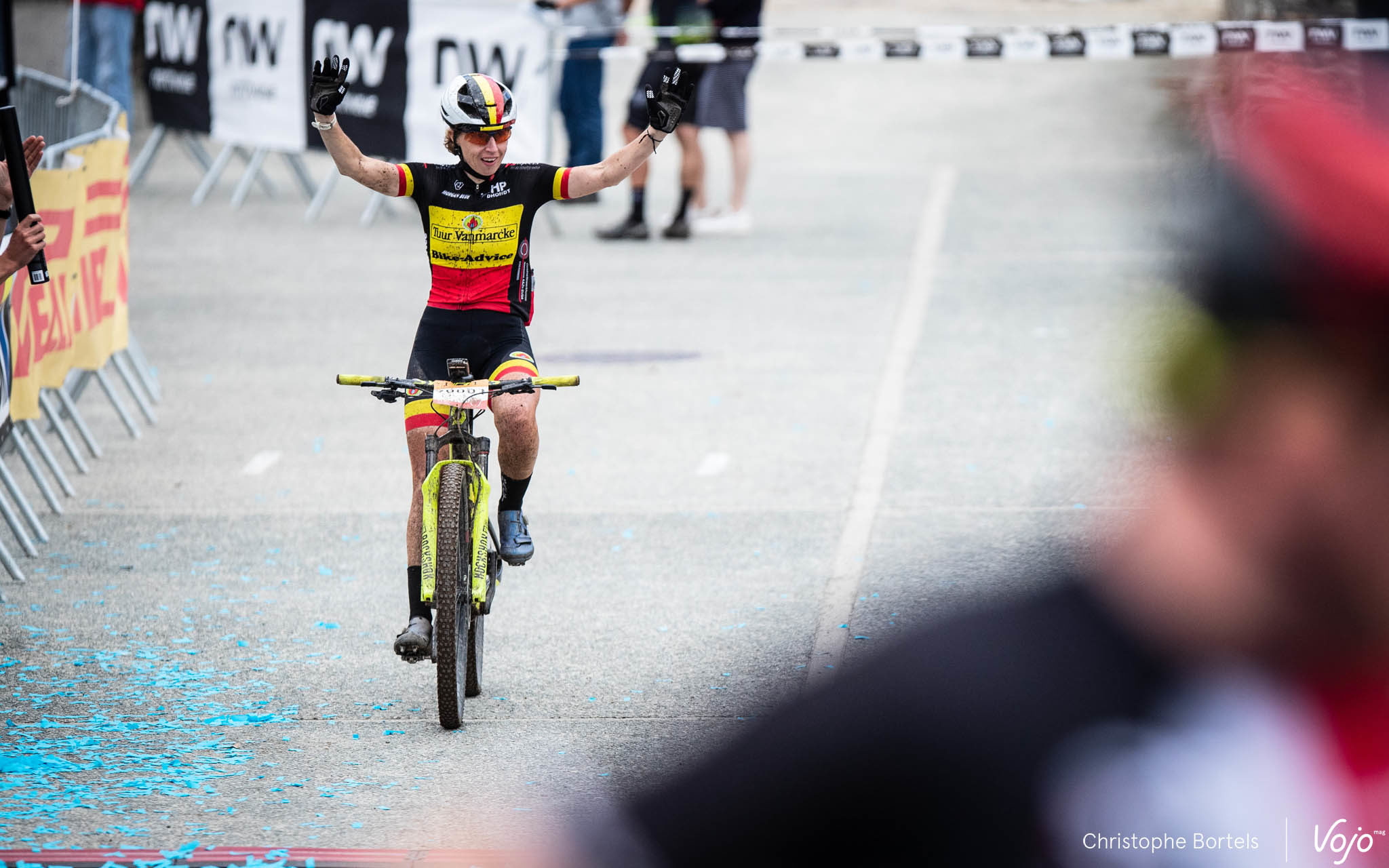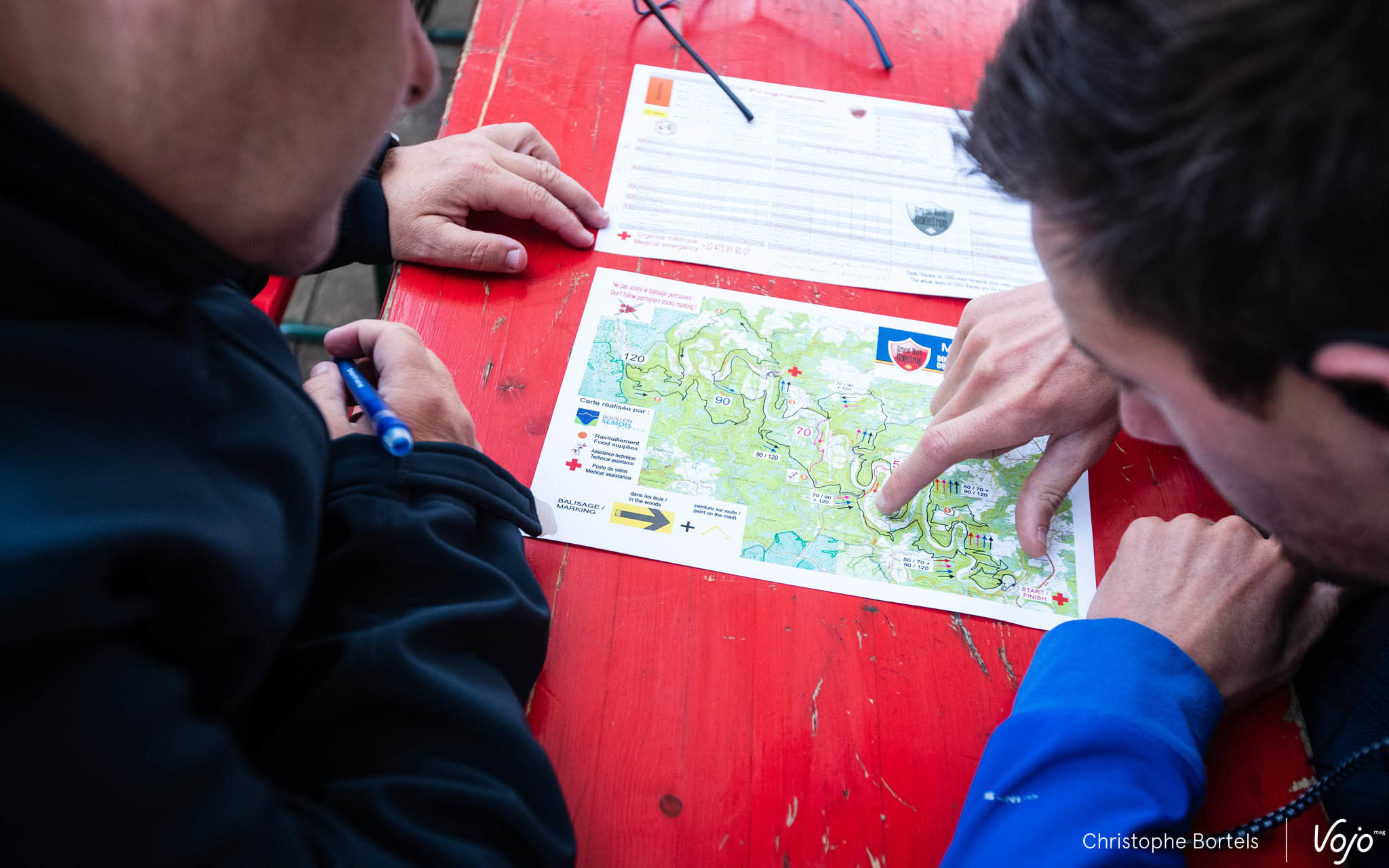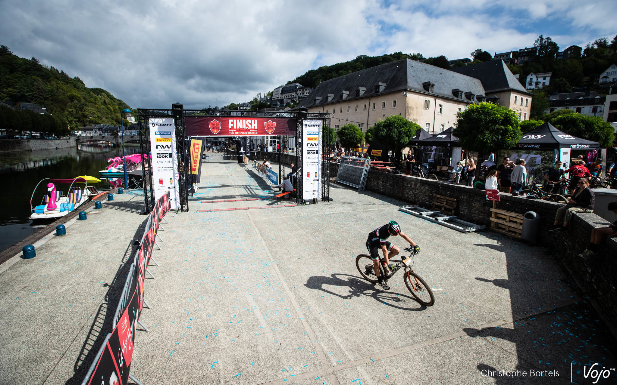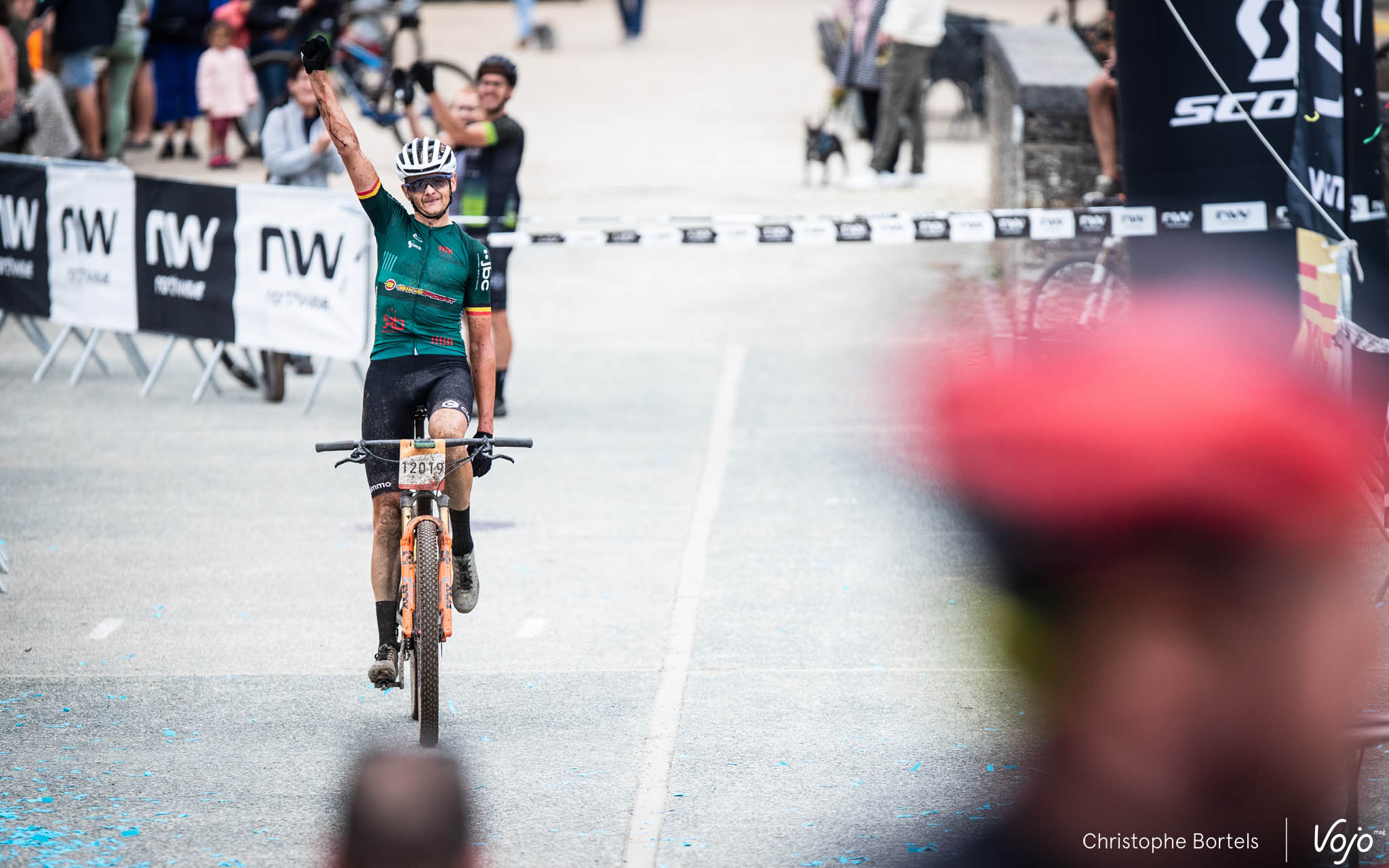 KM 117 : slalomant entre les concurrents des plus petites distances avant d’attaquer la toute dernière montée du parcours, Joris Massaer est désormais seul en tête ! Pas le temps d’attendre le passage de Thomas Sprengers pour voir quel est son retard, on file sur la ligne d’arrivée…