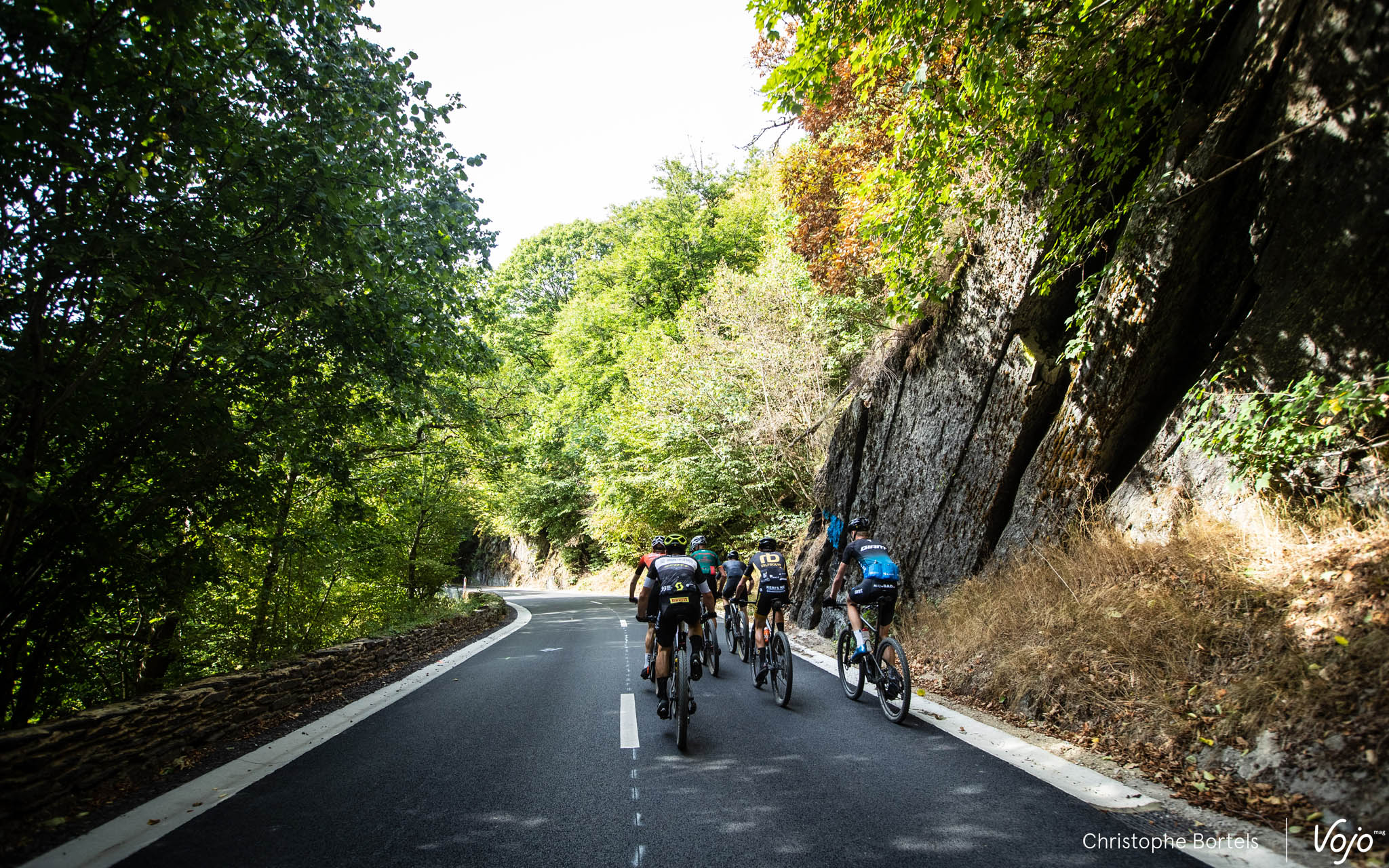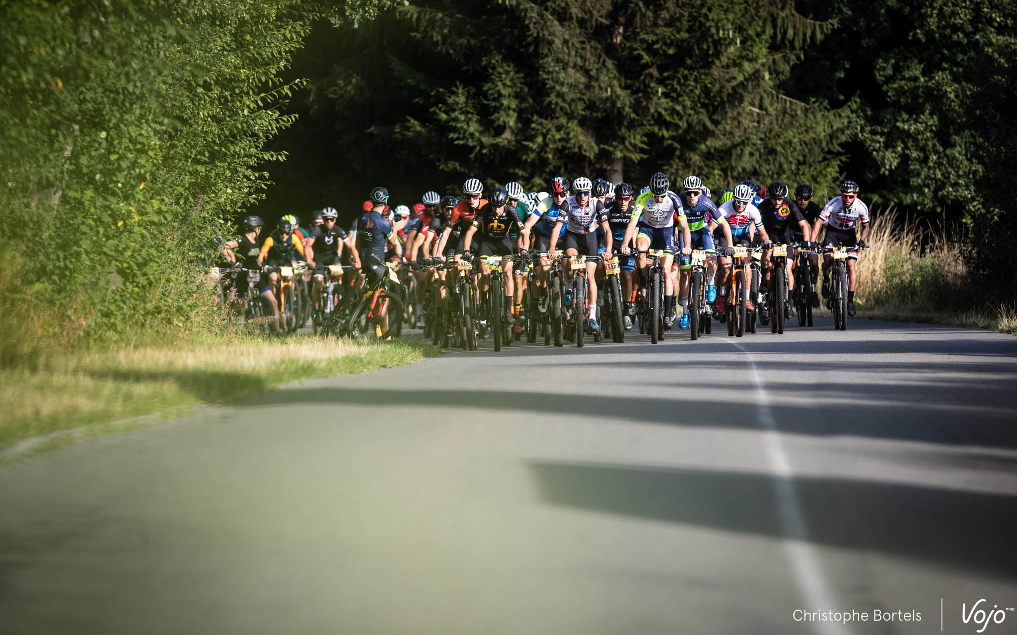 Après l’habituel début de parcours sur route pour étirer le peloton, la toute première et belle descente à Houffalize était bien toujours de la partie.