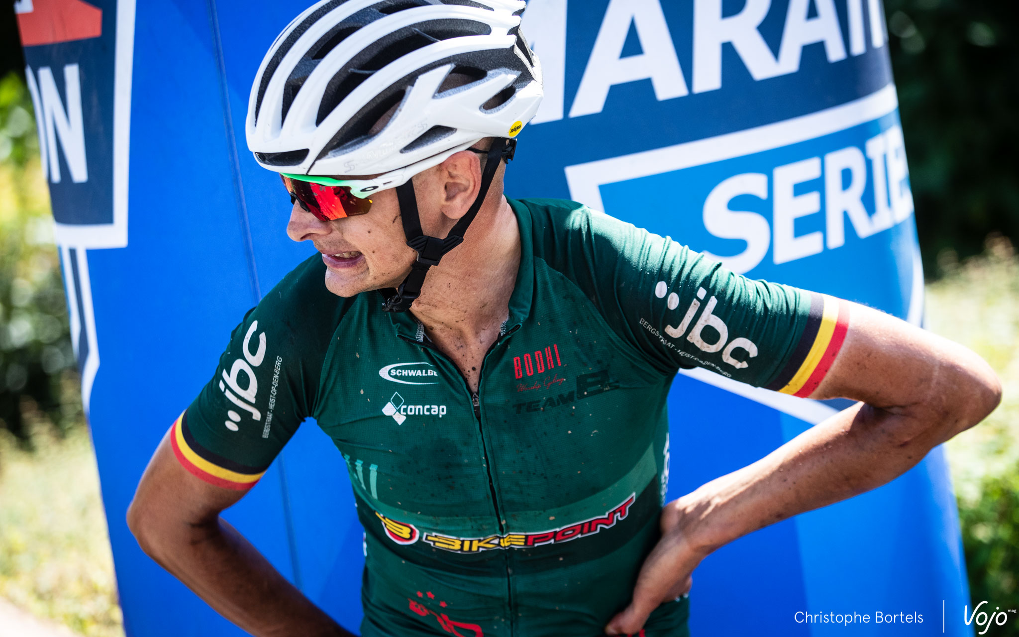 Laurent Evrard, accompagné par Seppe Rombouts, termine quelques secondes derrière et remporte la catégorie Elite.