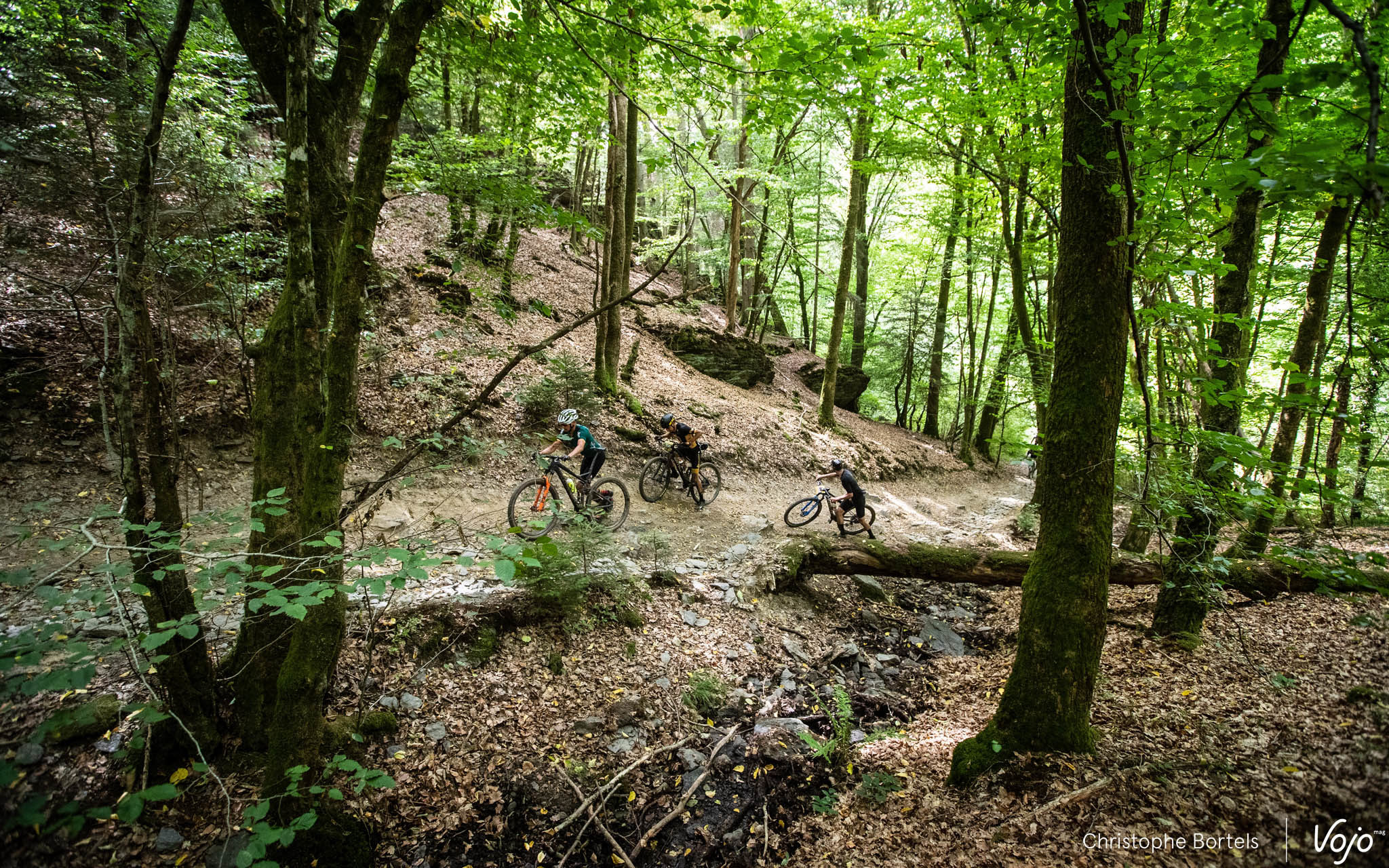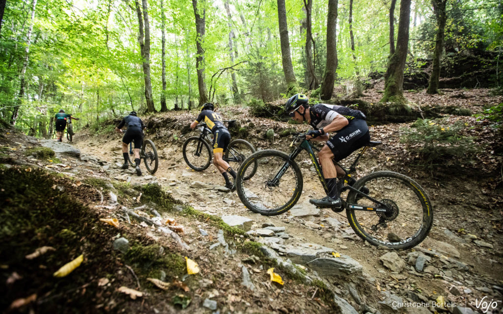 Kilomètre 73 : statu quo alors que les coureurs viennent de passer sur les hauteurs d’Houffalize et empruntent ce bien connu et fort sympathique singletrack.