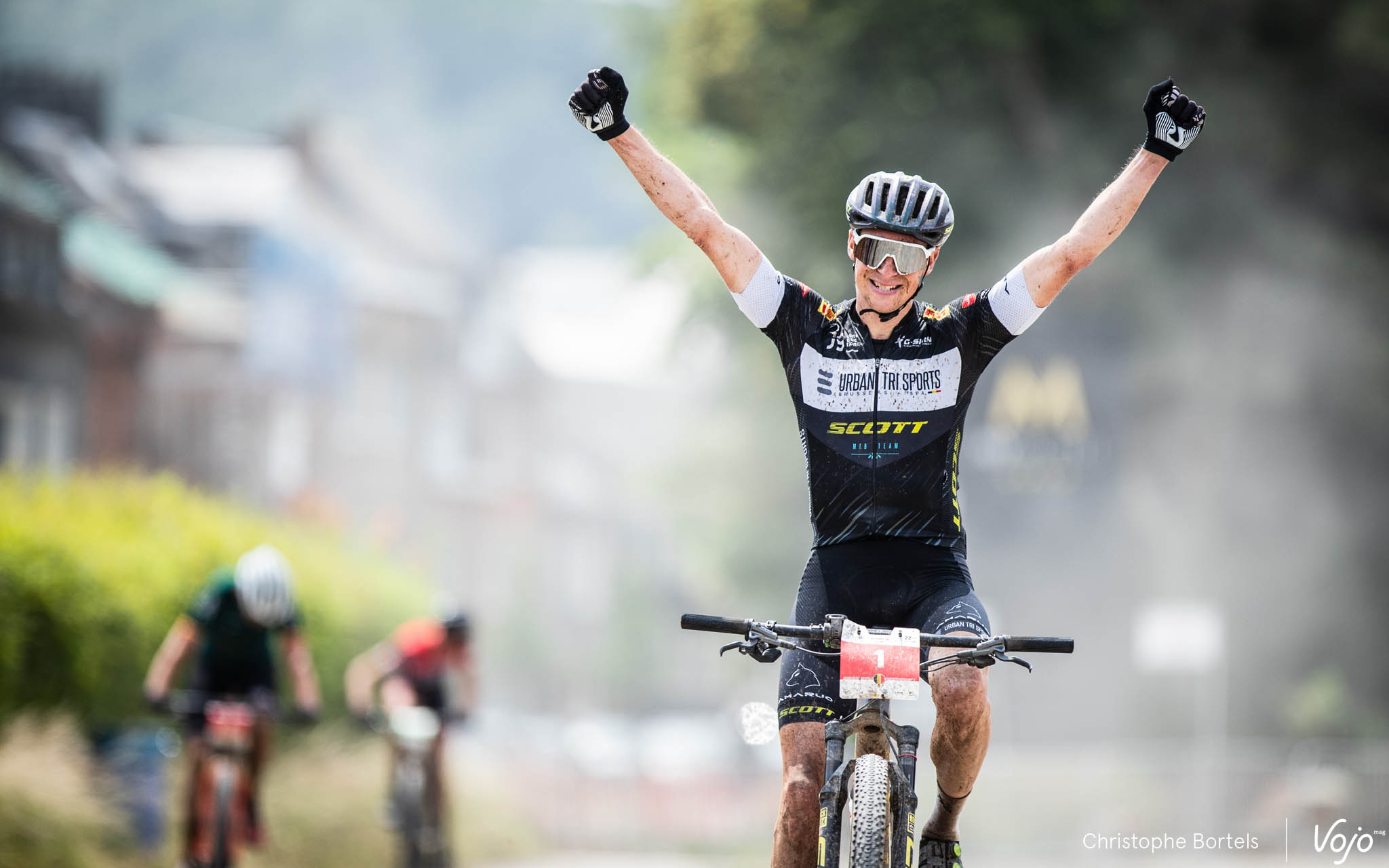 Eh non ! Sébastien Carabin a réussi à faire le trou à quelques hectomètres de l’arrivée après avoir entamé l’ultime descente en tête. Avec quelques dizaines de mètres d’avance sur Joris Massaer, il a le temps de savourer sa victoire sur la ligne et remporte ce Raid des Hautes Fagnes en 4h25, à une moyenne de près de 22km/h ! On se souviendra qu’il avait été sacré Champion de Belgique de Marathon ici-même il y a trois ans lors de la dernière édition du RDHF.