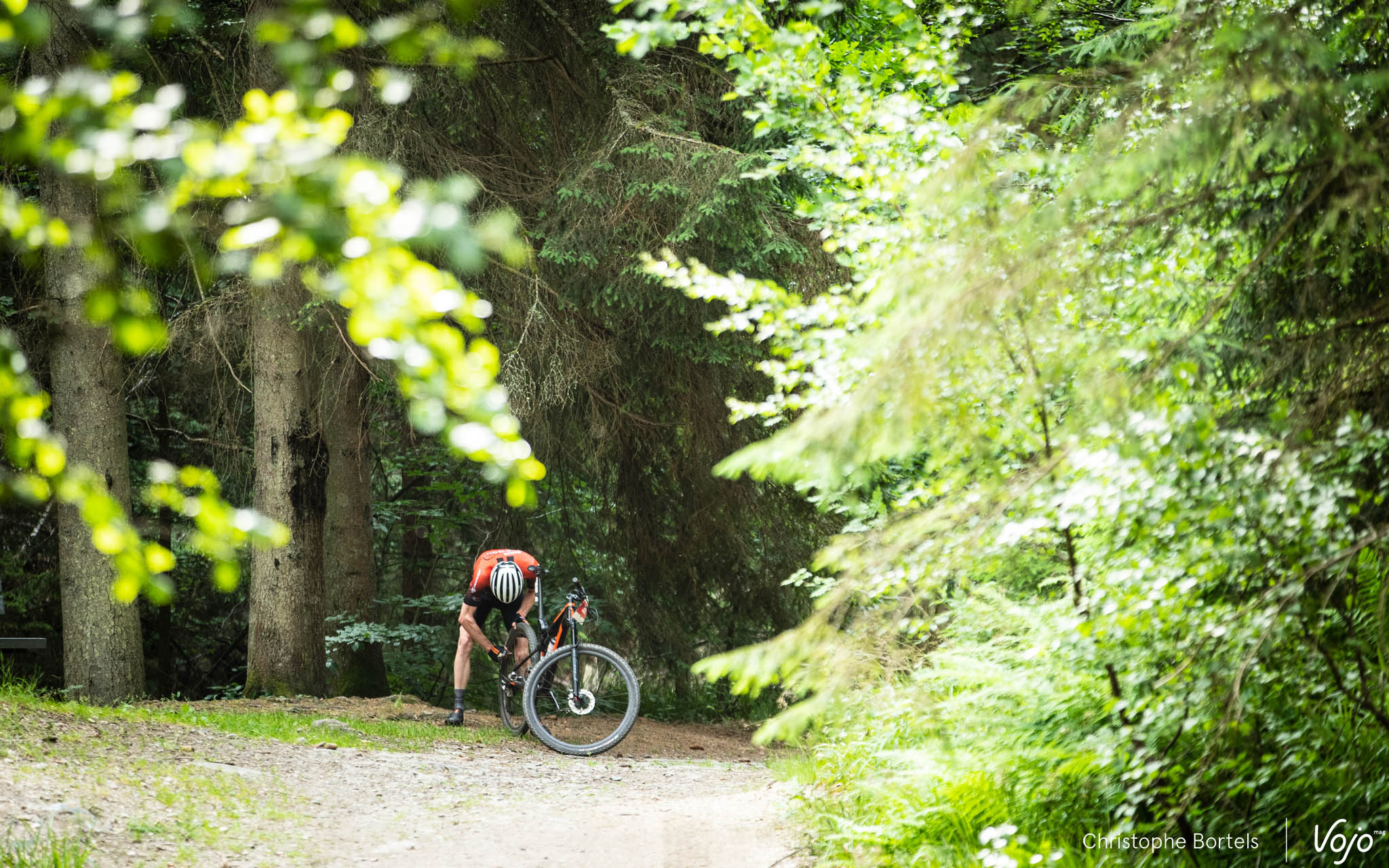 Tout comme Maxime Dony, Anthony Franquet a été victime d’une crevaison et le voilà contraint à l’abandon. Les pierres et racines du Raid des Hautes Fagnes sont impitoyables…