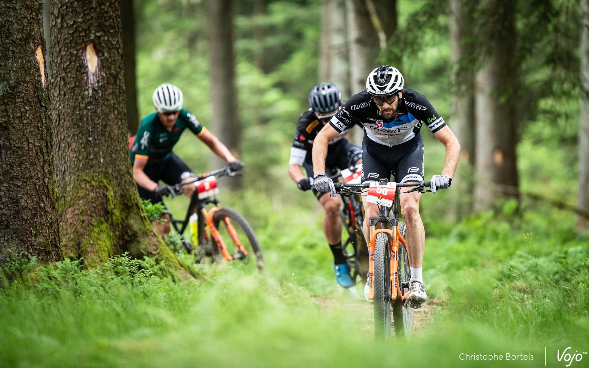 Quatre coureurs sont en poursuite, une bonne dizaine de secondes derrière Maxime Dony. On y retrouve Joris Massaer, Anthony Franquet, Sébastien Carabin et Uwe Hochenwarter. Ce dernier, précisons-le d’emblée, bifurquera plus tard sur le 84km (qu’il remportera).