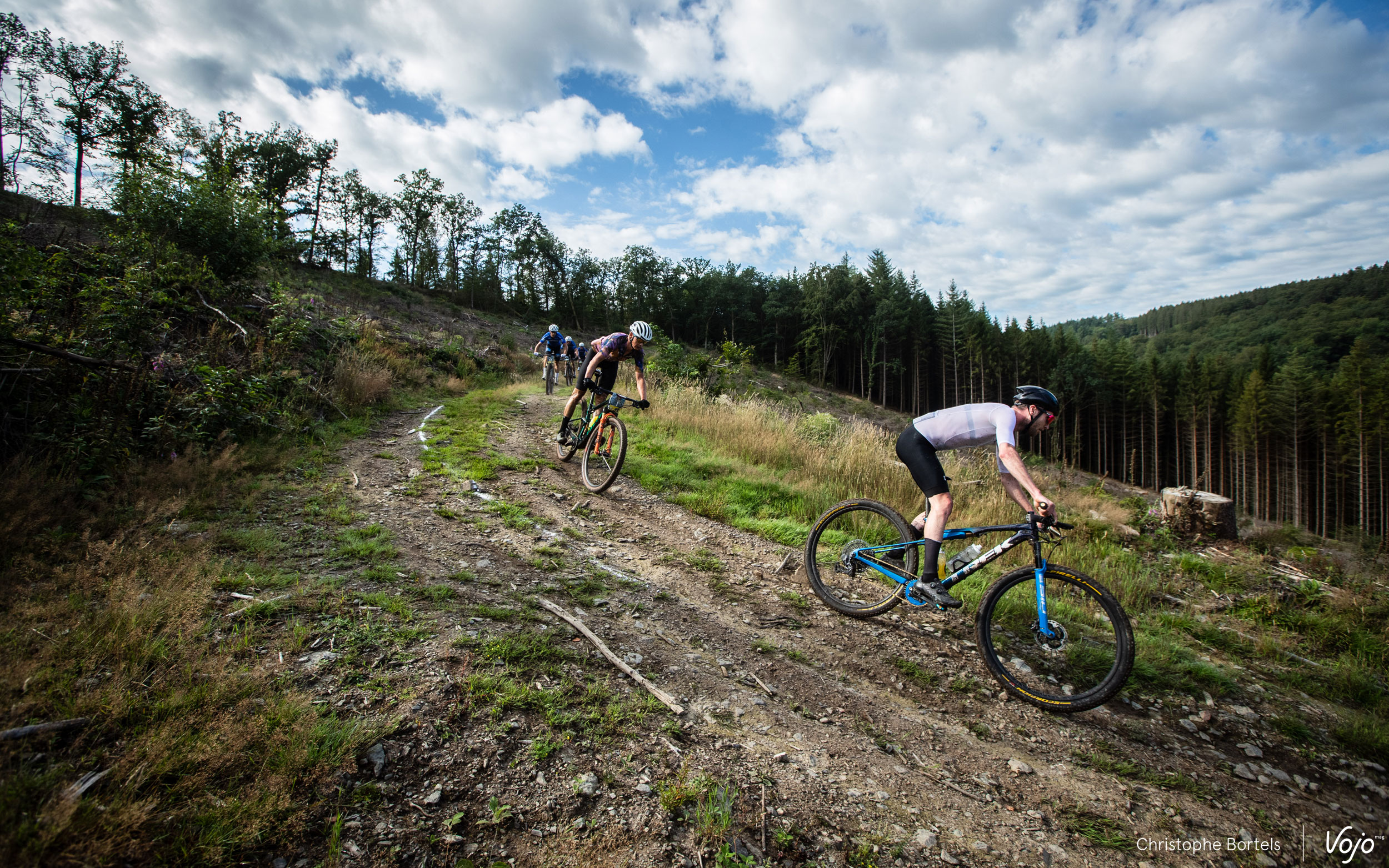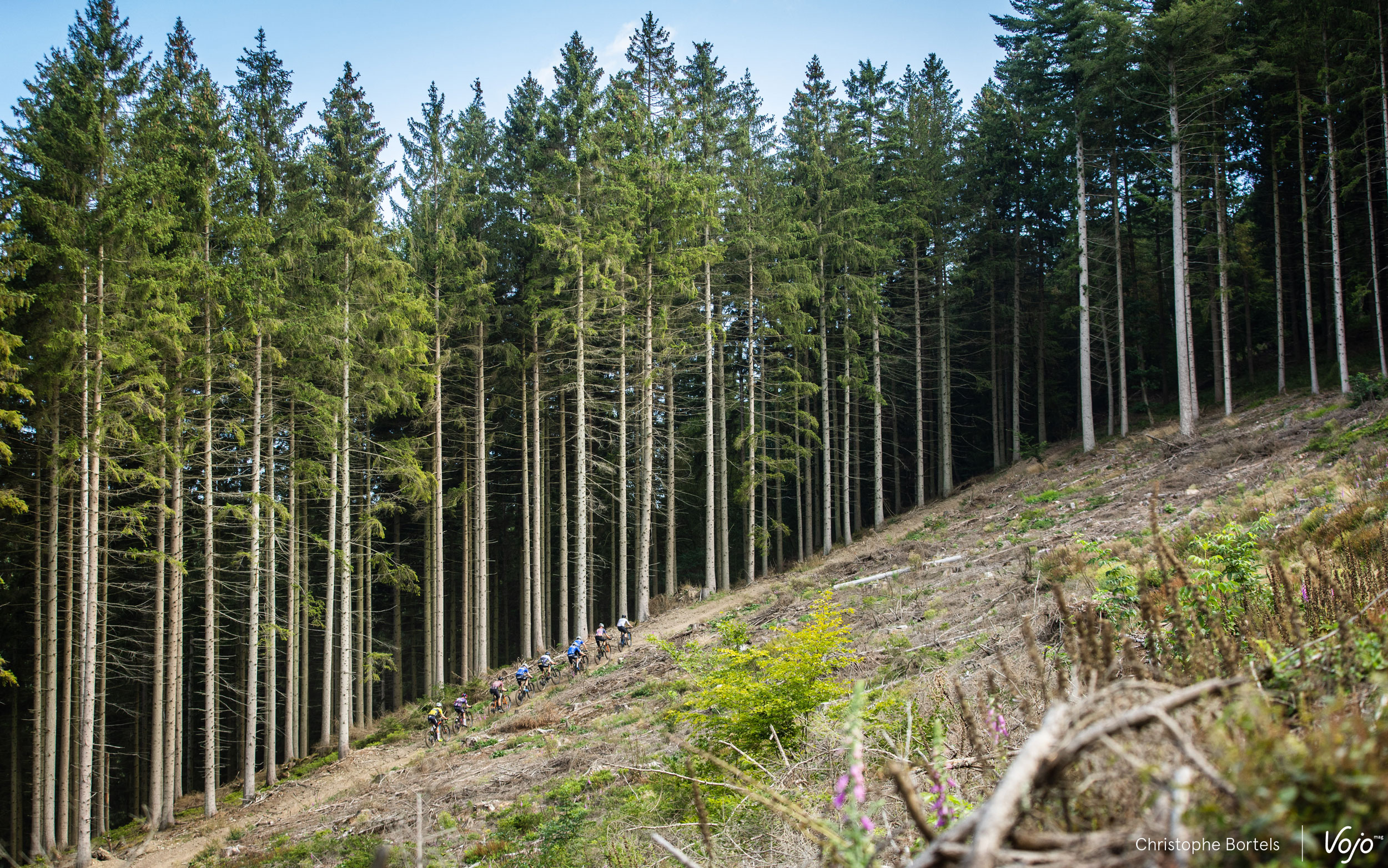 9h30, c’est parti pour 94 kilomètres et plus de 2600m de dénivelé positif. Comme d’habitude, une belle route montante se charge d’étirer le peloton dès le départ pour doucement mener les concurrents vers le mythique circuit de XC d’Houffalize.