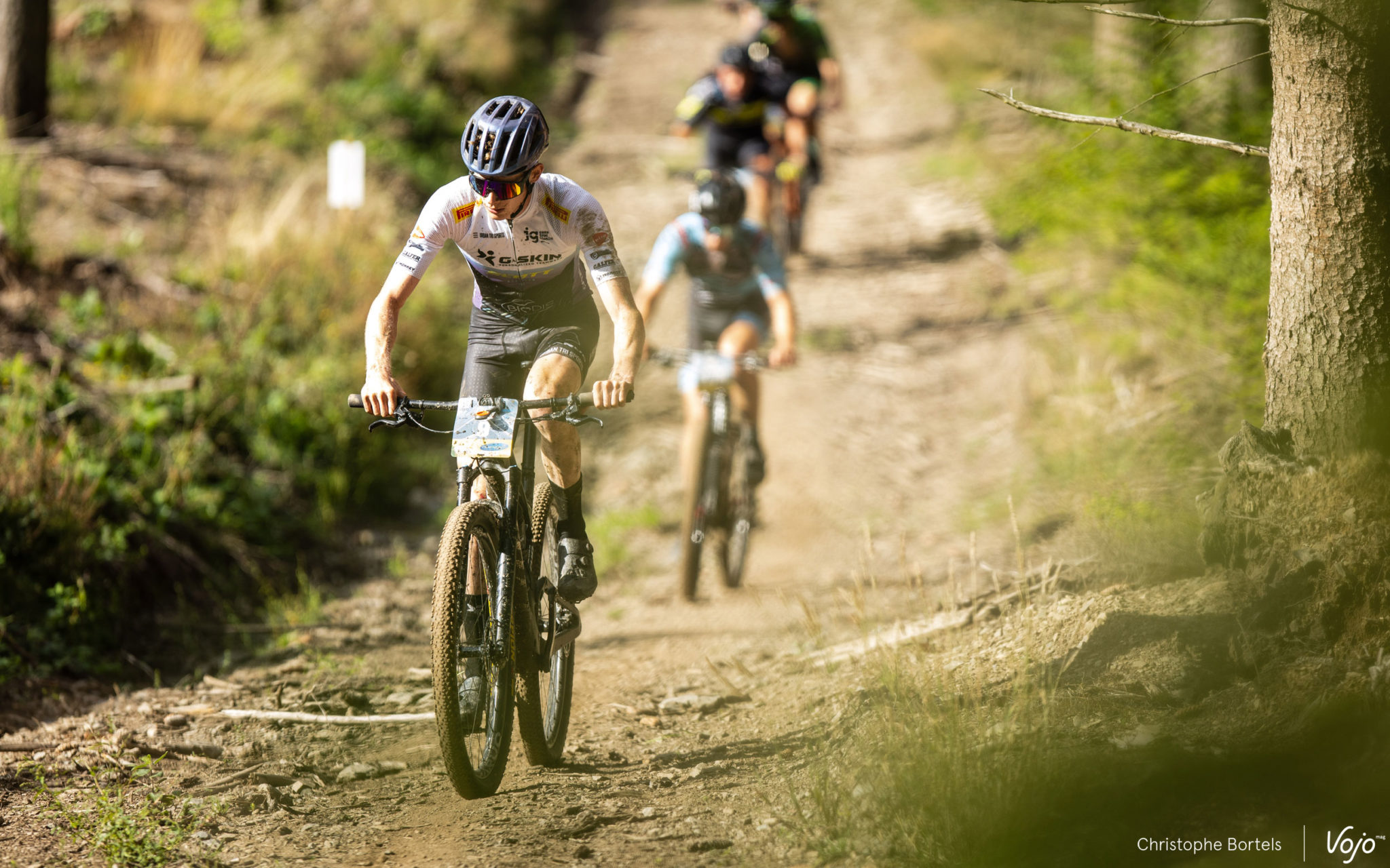 Nous sommes au kilomètre 53, la mi-course est passée depuis quelques kilomètres, et il a dû se passer quelque chose aux avant-postes car le groupe de tête n’a plus ni queue ni… tête. Le Junior William Graff est désormais seul en tête, suivi à une minute par le duo Tijl Pauwels / Kryspin Pyrgies. Mais où peuvent bien être tous les favoris ?!