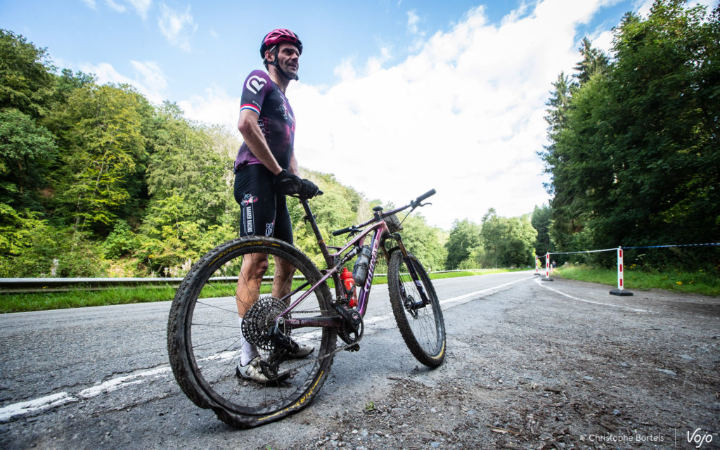 Petit détour par ce bien connu et toujours charmant singletrack technique à proximité d’Houffalize. Allez hop, on file faire un dernier pointage de la tête de course avant l’arrivée.