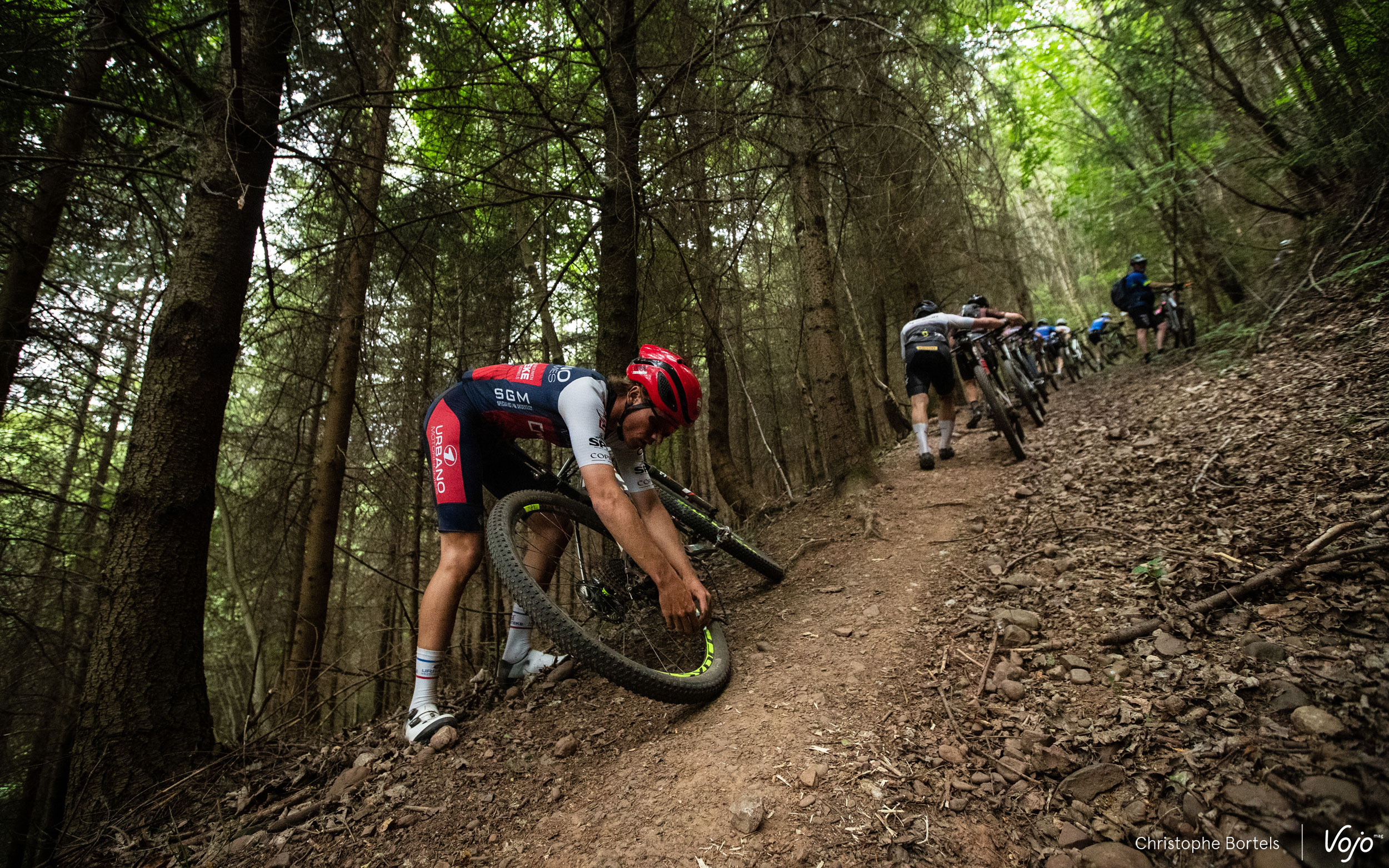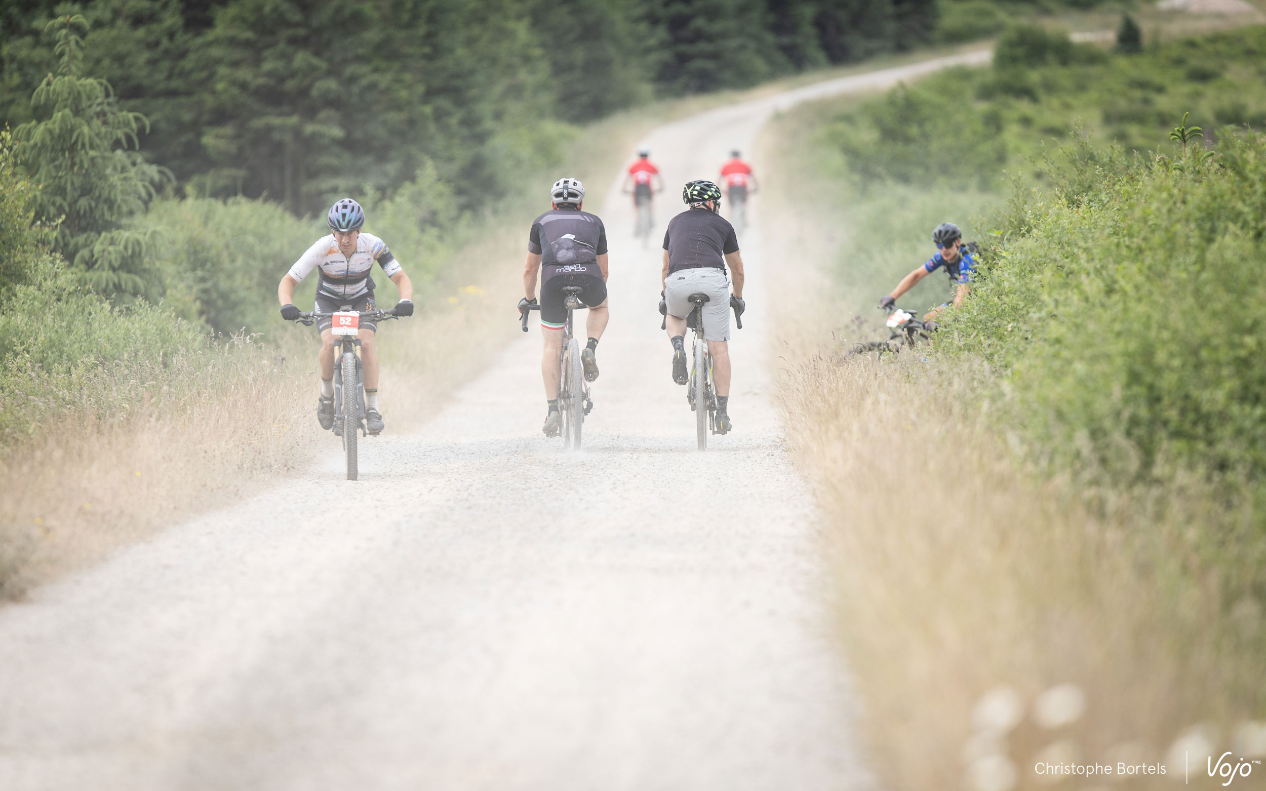 Ce genre de raidard surprise peut se montrer violent avec les transmissions. Ronan van den Put en fait les frais et sera contraint de faire une bonne partie de l’épreuve en poursuite derrière la tête de course…