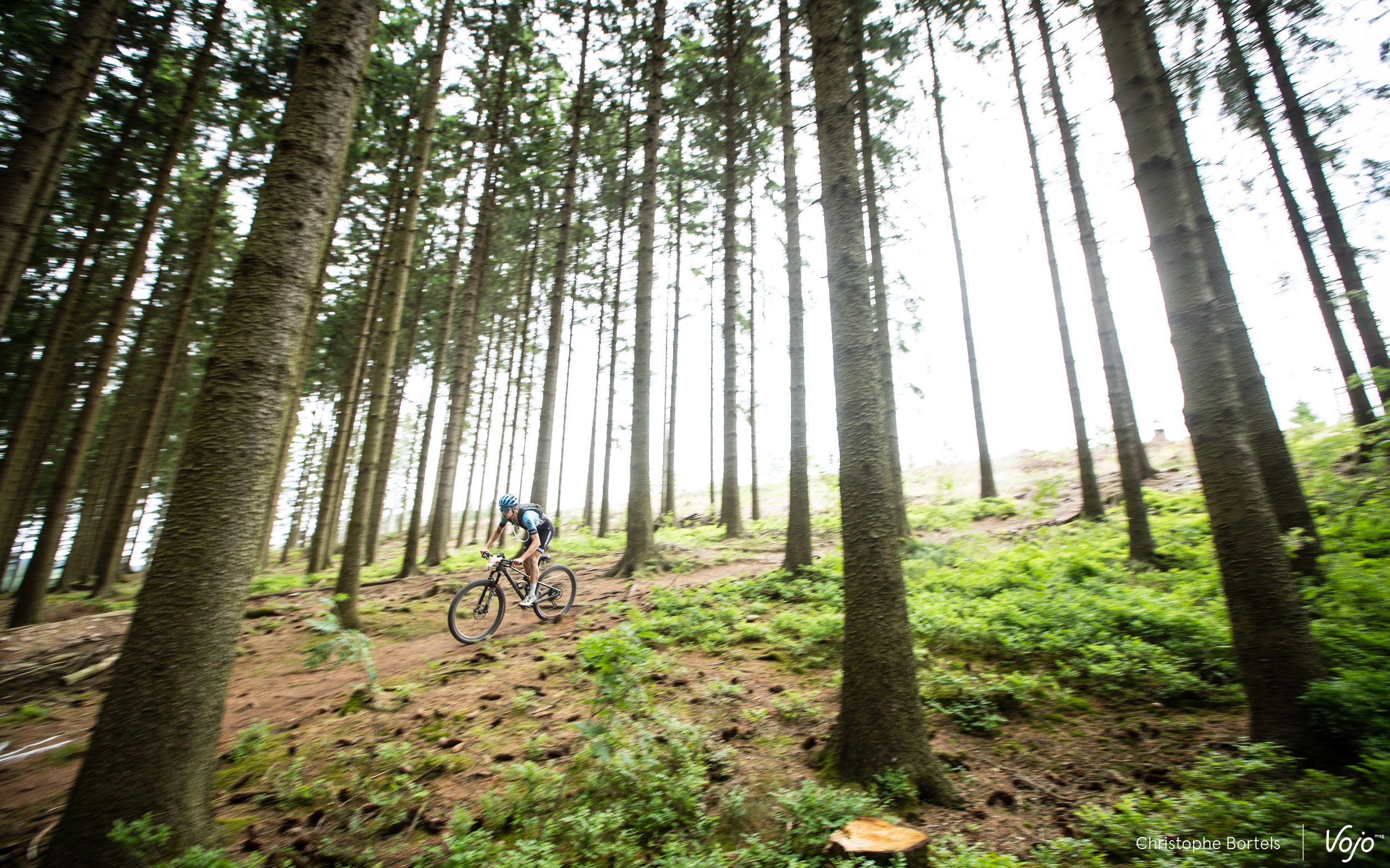 Derrière la brasserie de Belgium Peak Beer, à deux pas du Signal de Botrange (point culminant de la Belgique avec ses… 694 mètres), les concurrents parcourent ce magnifique petit singletrack racineux.