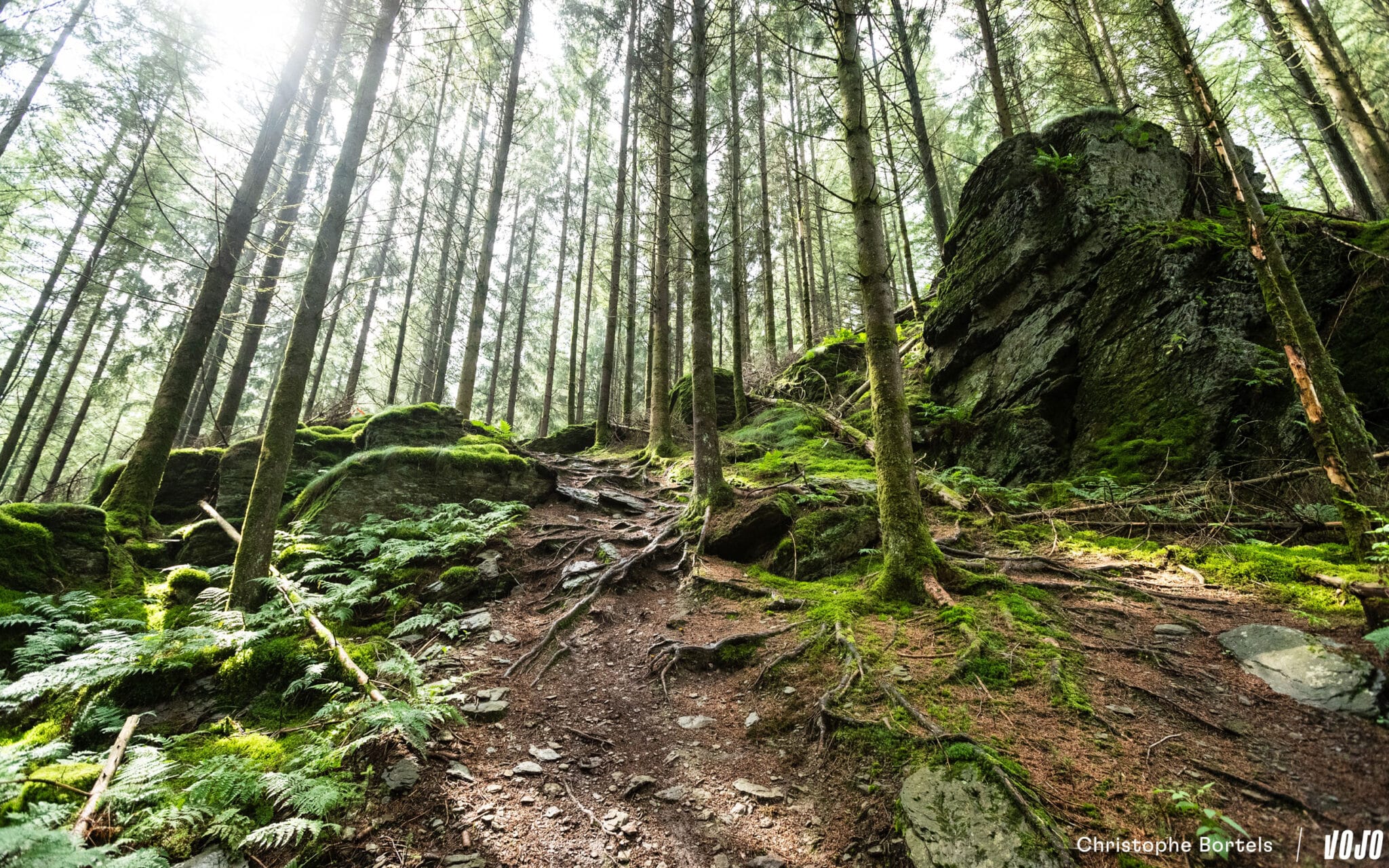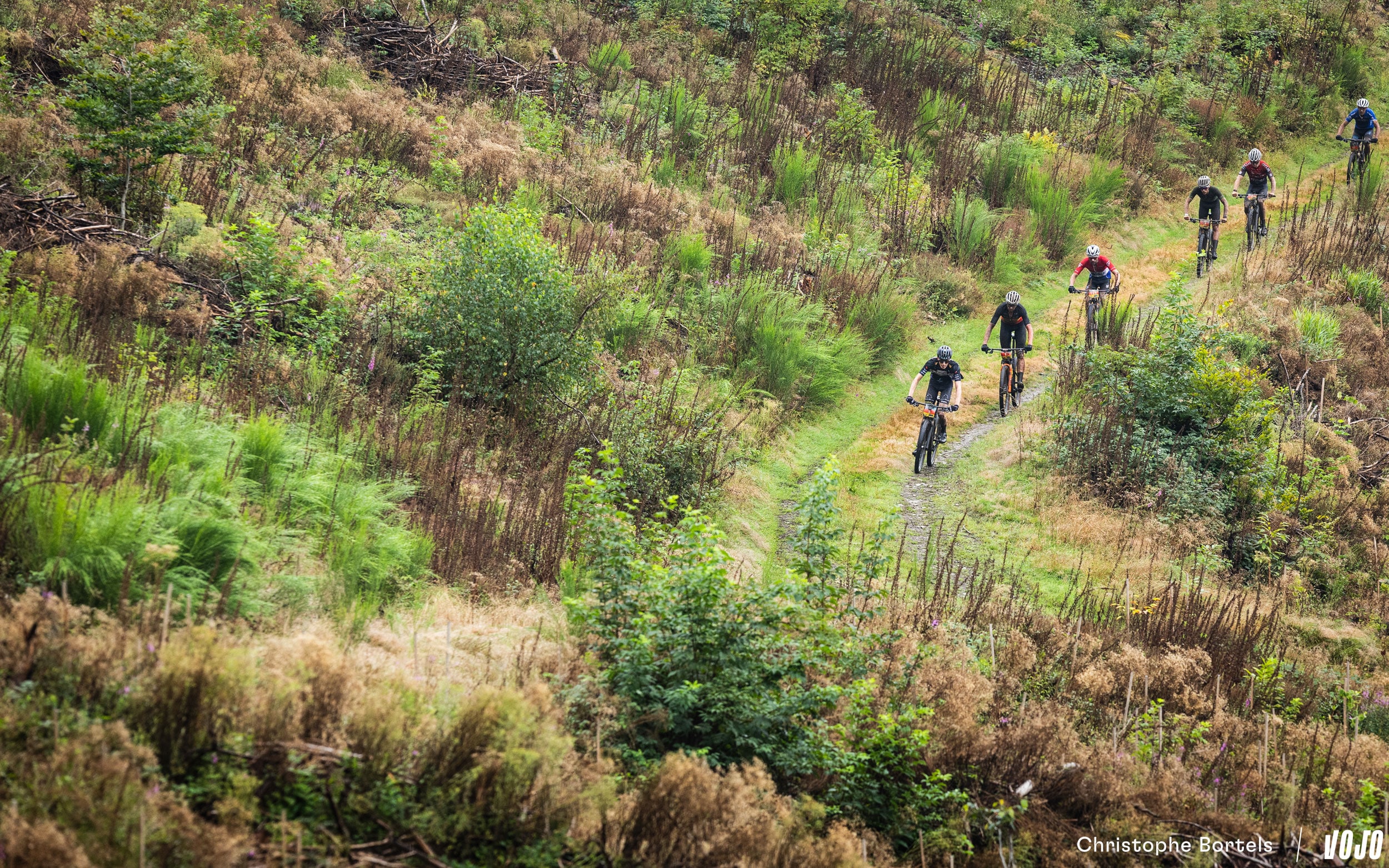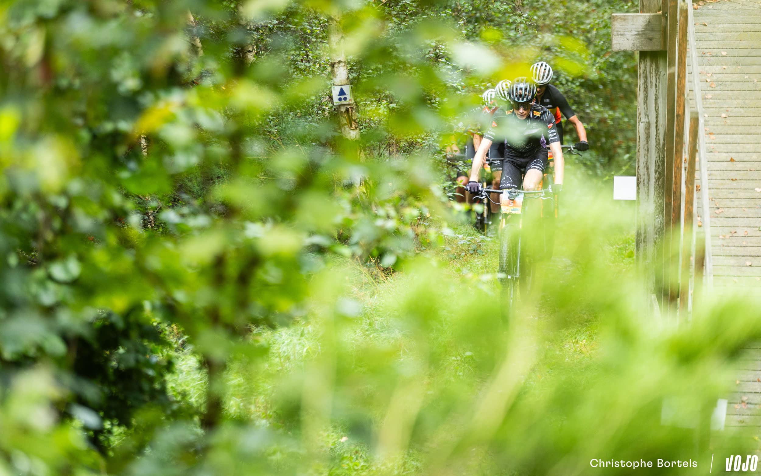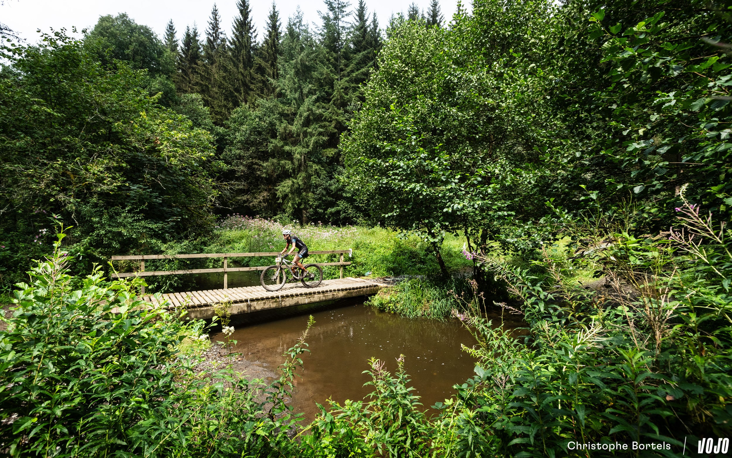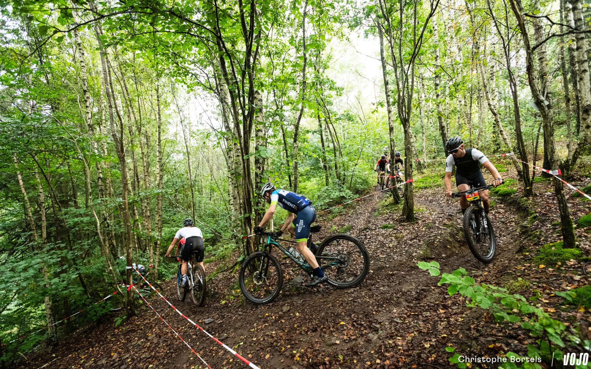 4 kilomètres et 9 minutes après le départ, la tête de course arrive sur le secteur du circuit de XCO d’Houffalize, encore utilisé ces dernières années pour le championnat national de la discipline. Le parcours n’en emprunte qu’une petite partie, mais c’est toujours un moment sympa… quand on aime la technique du moins !