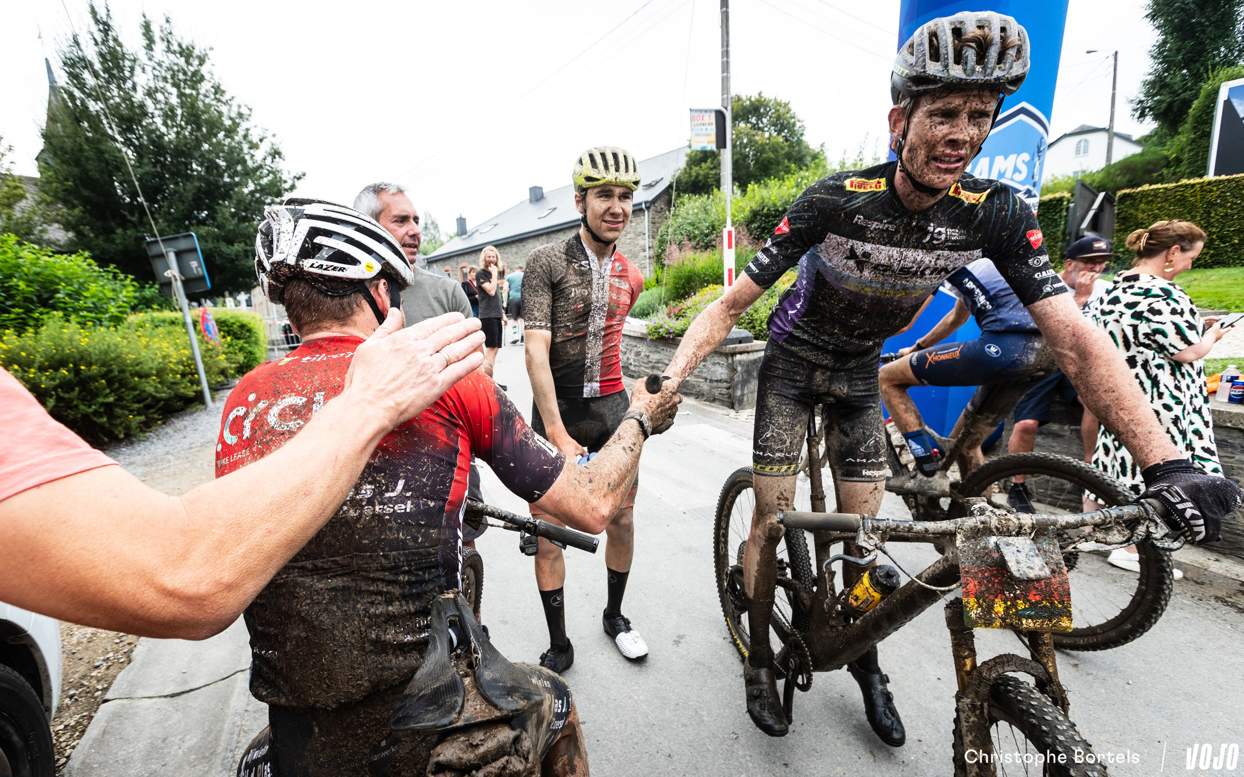 Eh non ! Ils arrivent ensemble, mais Wout Janssen a quelques mètres d’avance et il peut prendre le temps de savourer sa victoire sur la ligne d’arrivée. Il boucle le parcours de 94 km en 4h19, à une moyenne de 22 km/h.