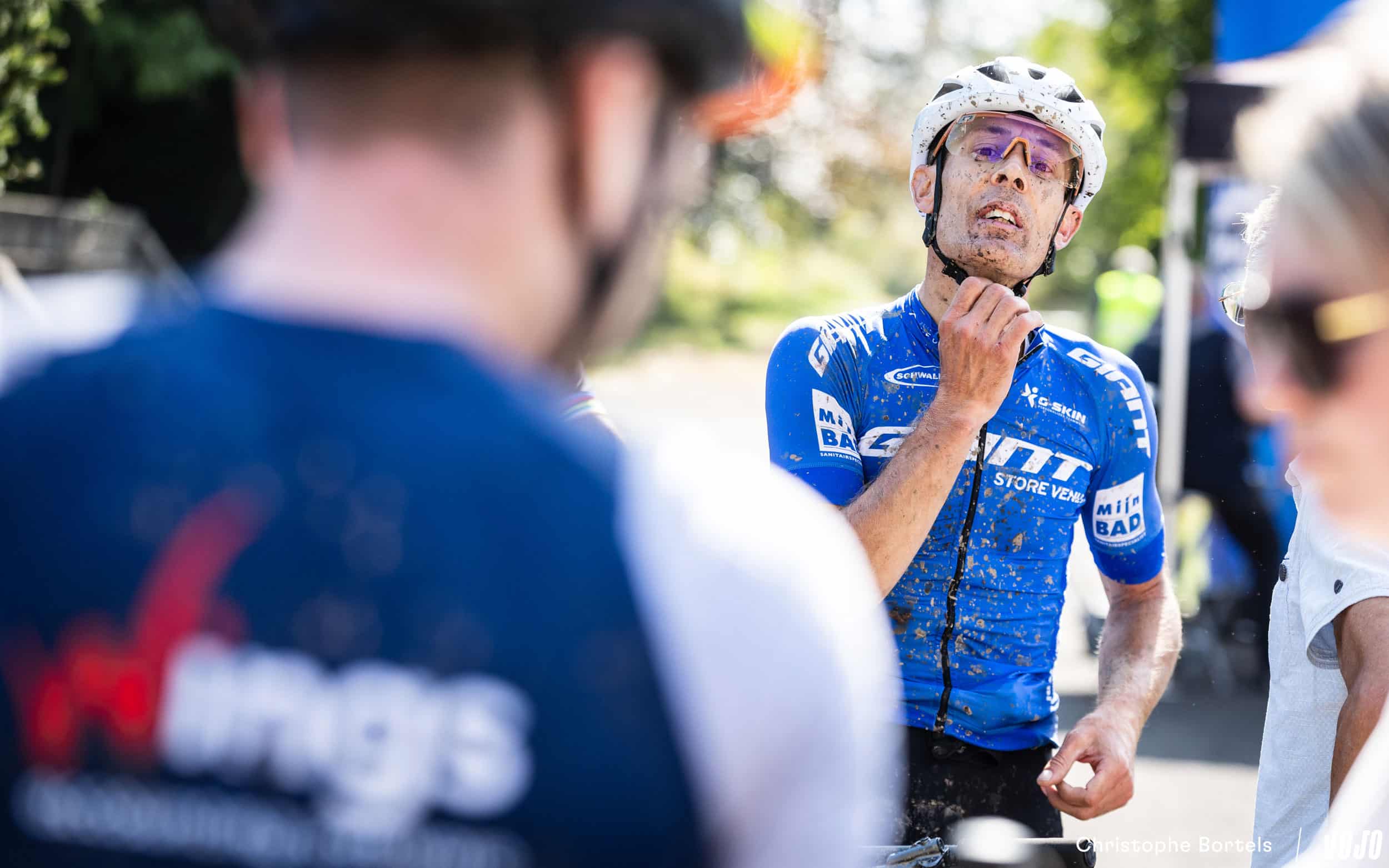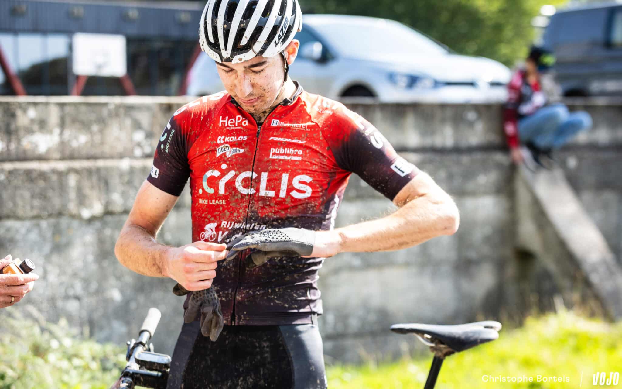 Milan Stiens et Thomas Sprengers ne sont pas loin et vont d’ailleurs recoller au duo de tête un peu plus loin. Arthur Courtois, Bas Peters, Owen Valcke… Les poursuivants défilent un à un, mais où est Joris Massaer ? On le verra finalement passer 6 minutes après les premiers, victime d’un pneu arrière déchiré. Il n’y aura pas de 3e victoire pour lui sur le BAMS cette année.