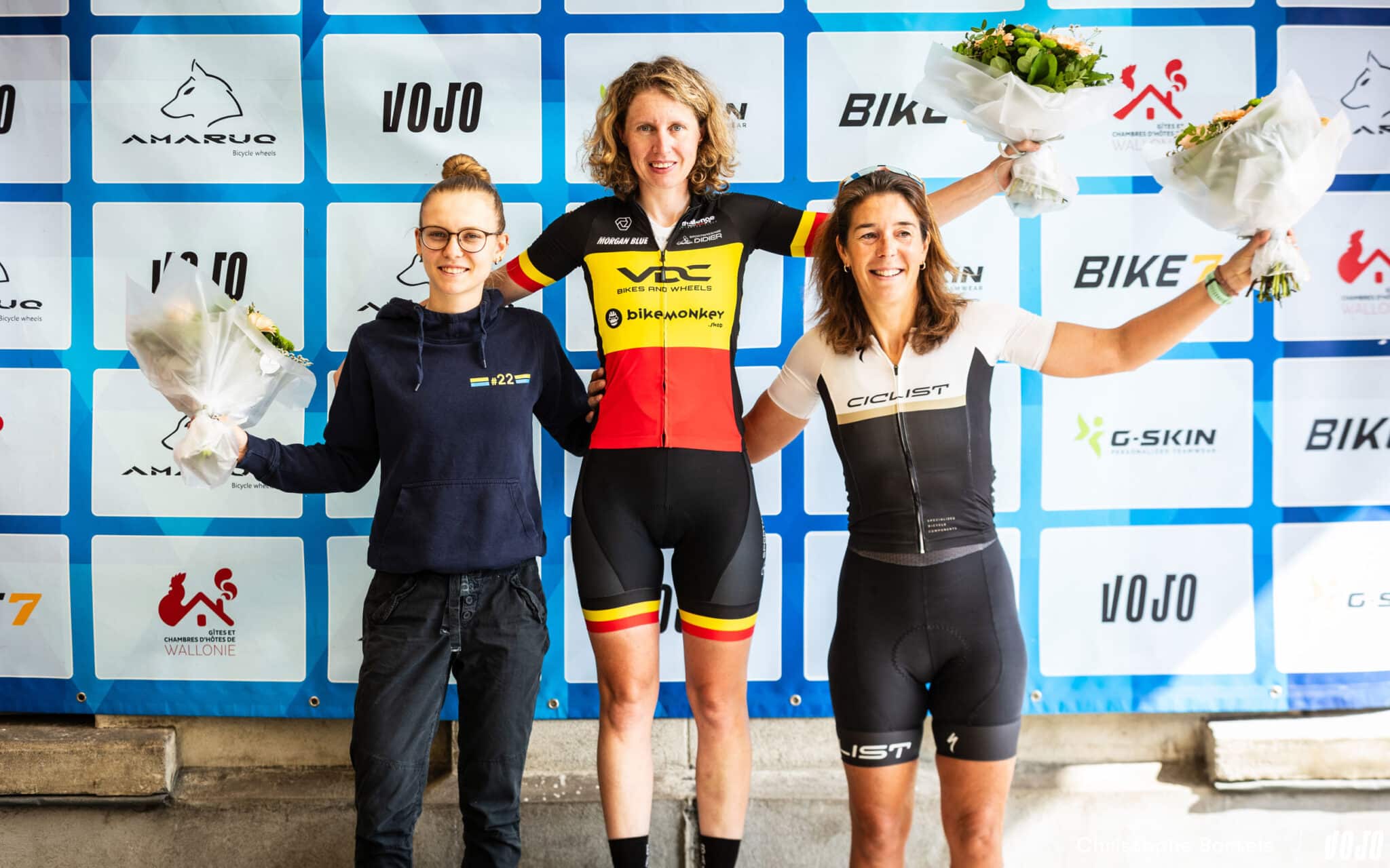 Puck Pinxt décroche la victoire chez les femmes sur le 100 km devant Sara Michielsens et Anne Verlaek.