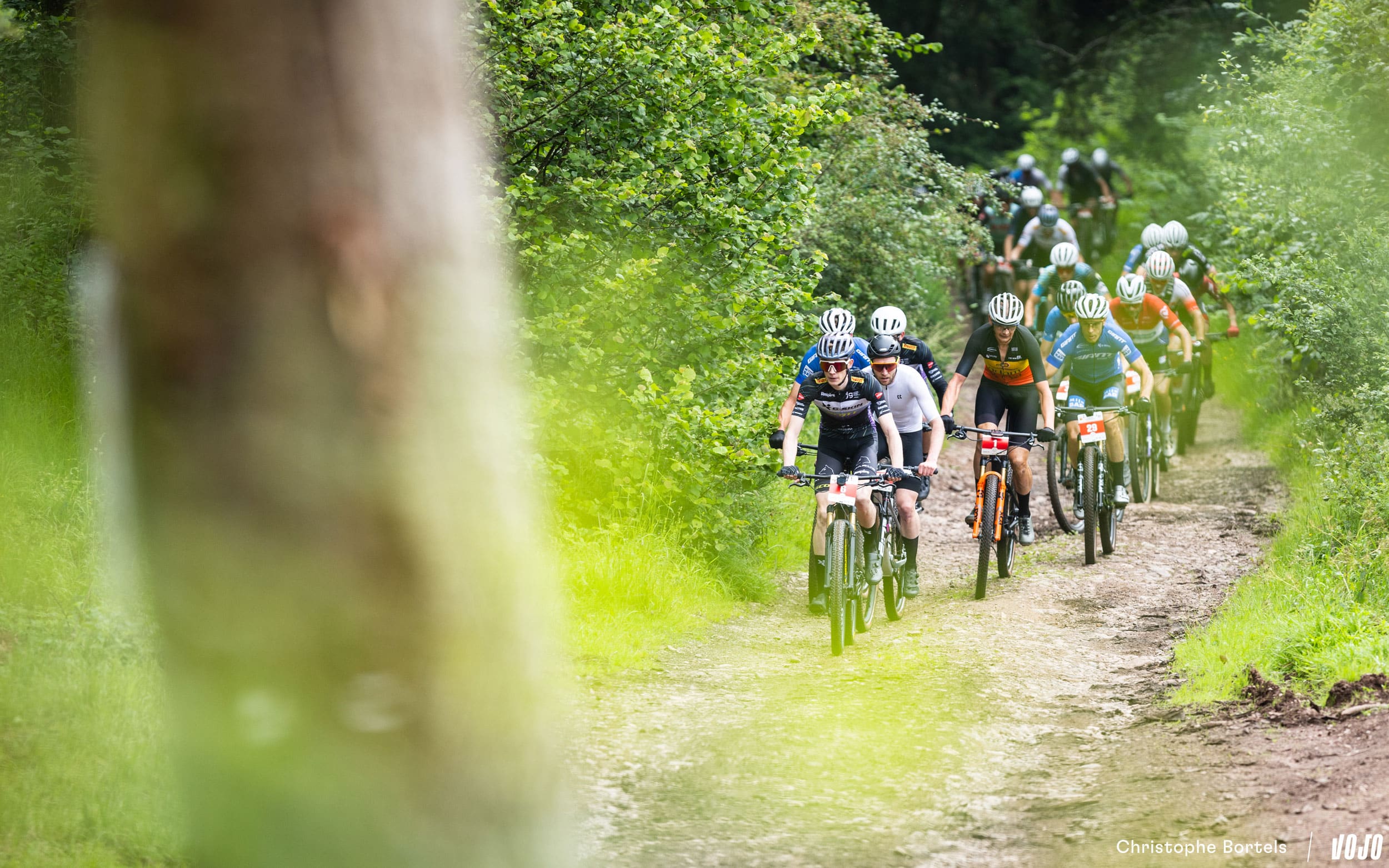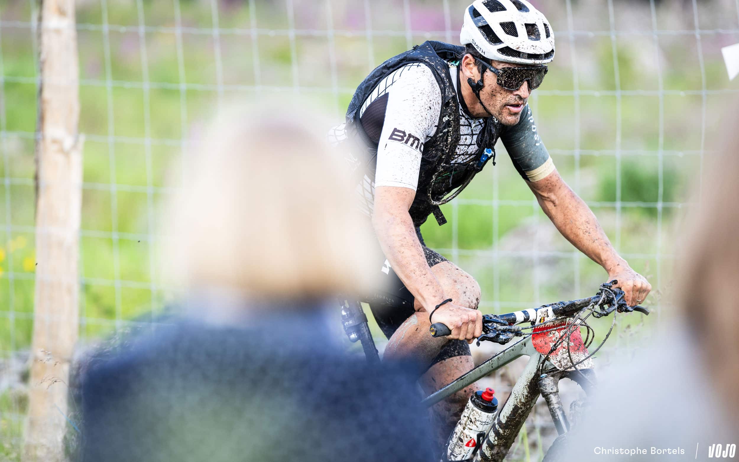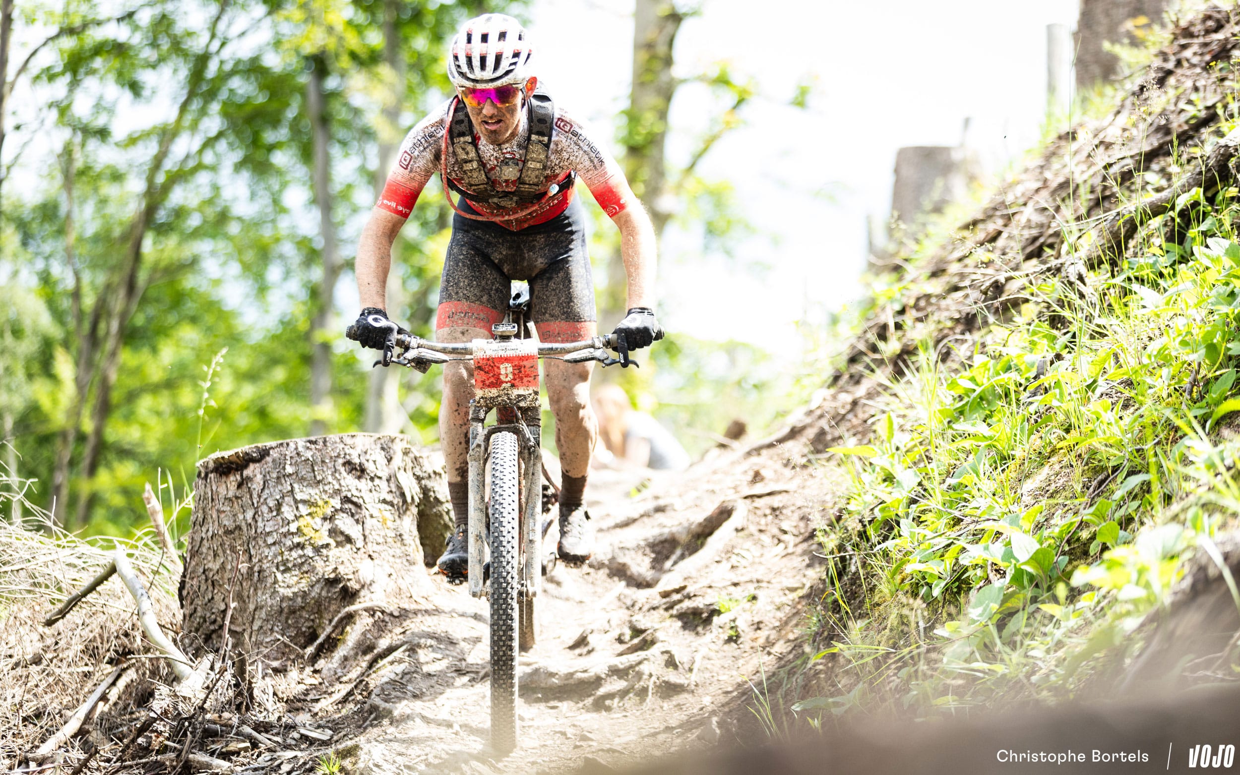 Décroché du groupe de tête, Bas Peters vient tout de même à bout de cette portion bien raide et bourrée de racines. Il faut dire qu’à l’occasion de la coupe à blanc, le sentier a été modifié, et qu’il est encore plus technique qu’avant…
