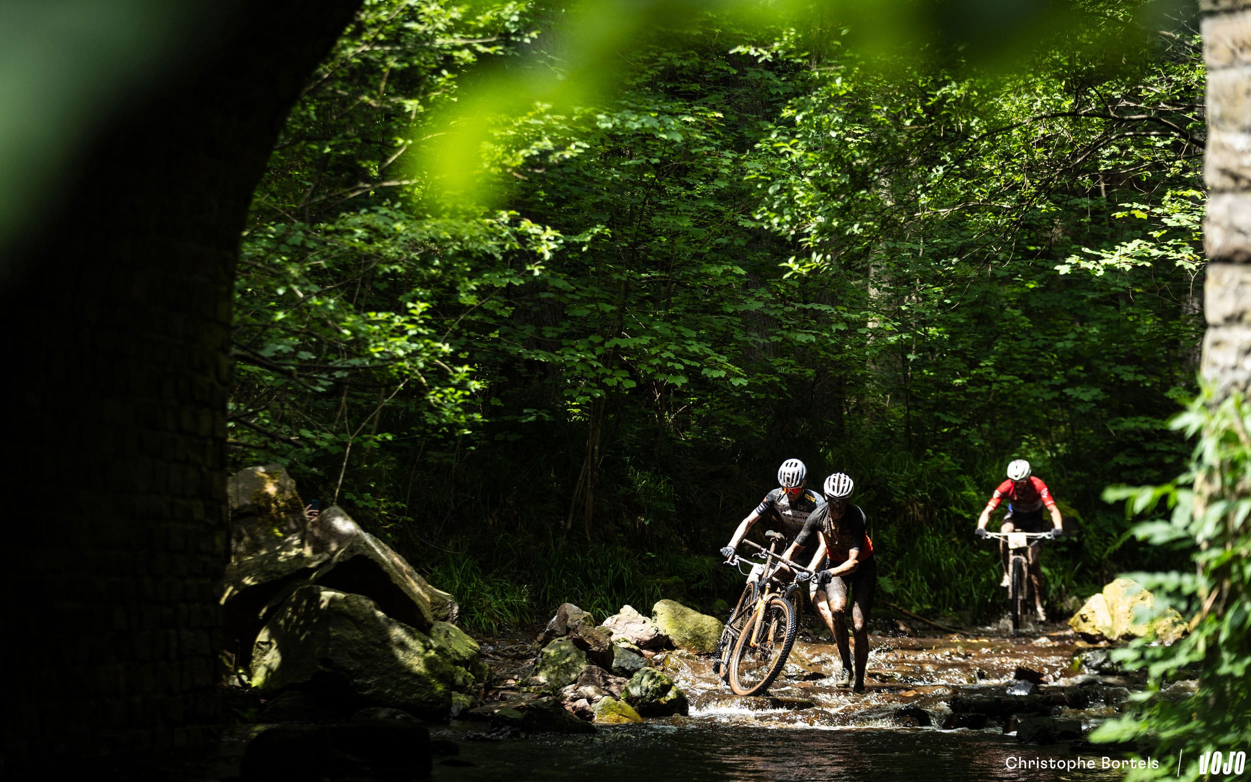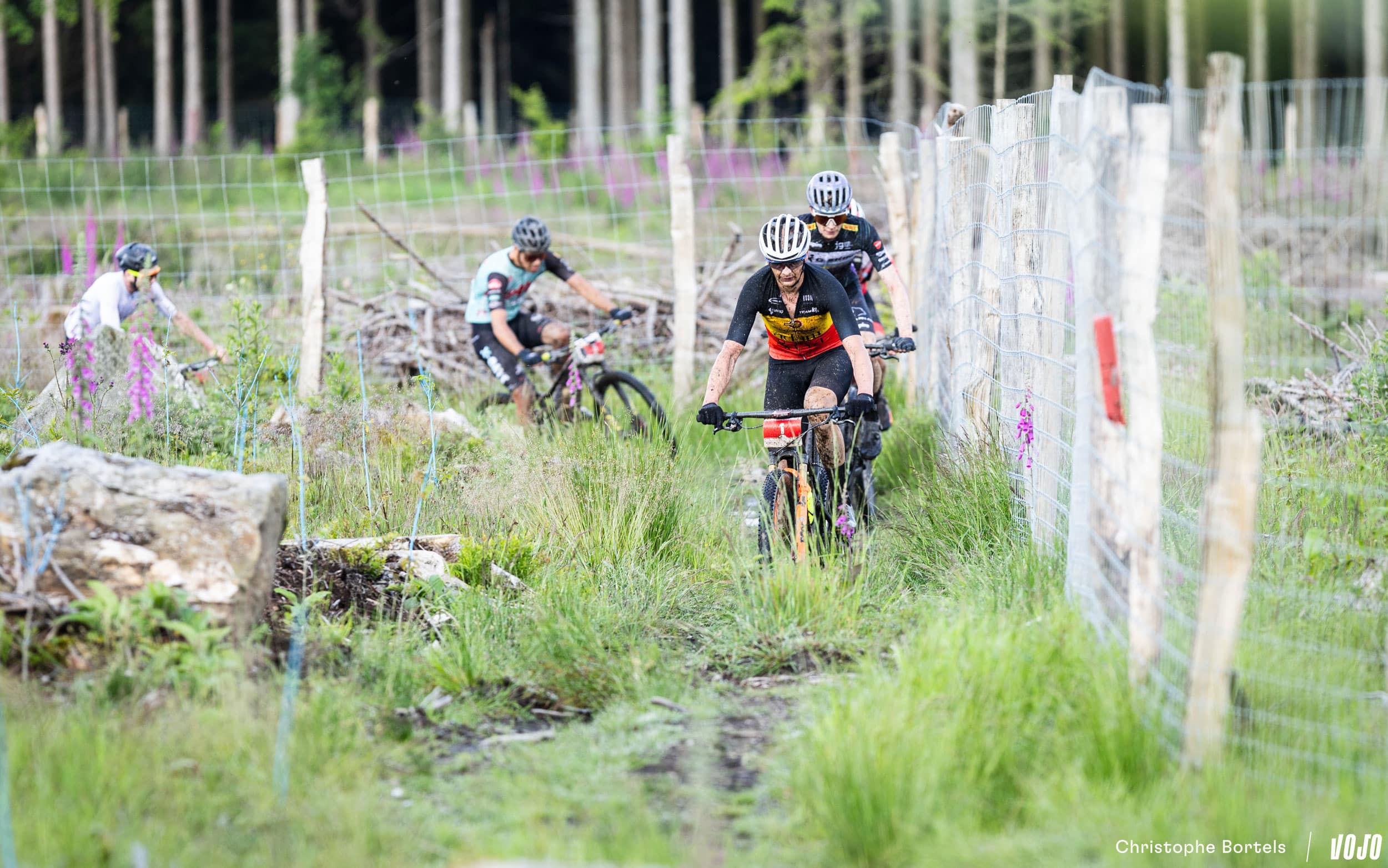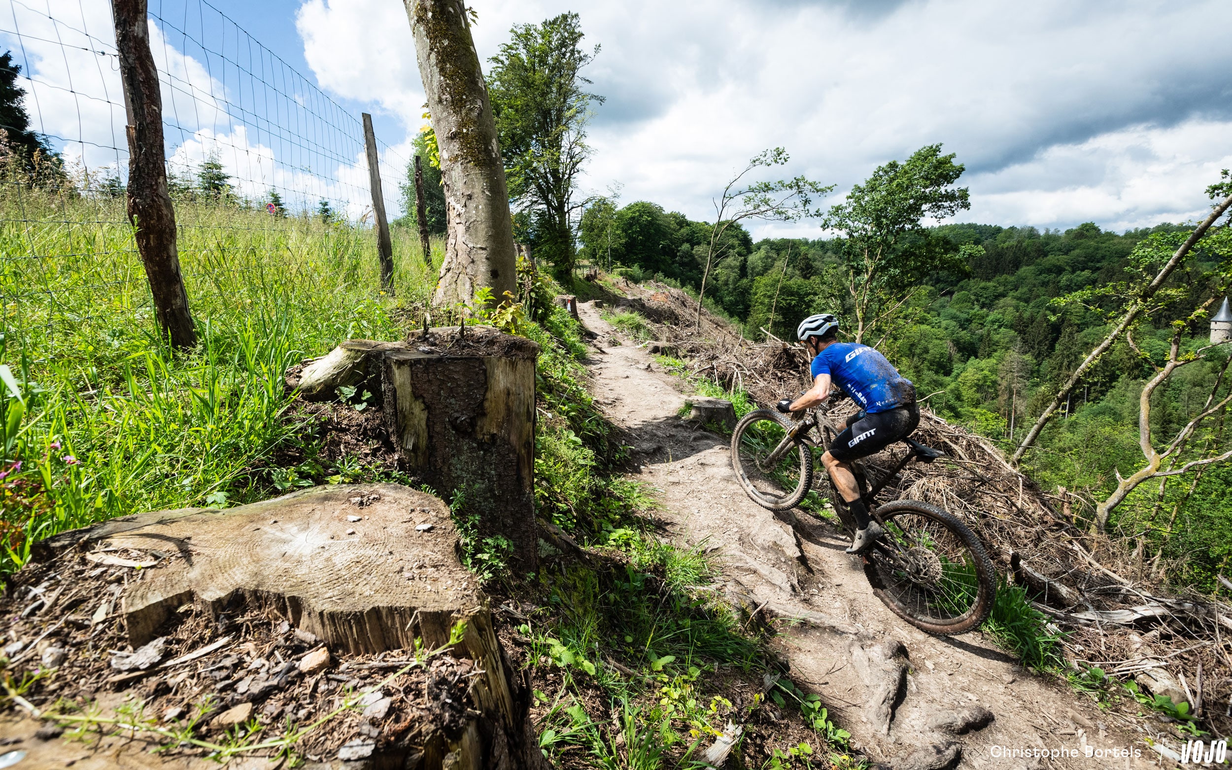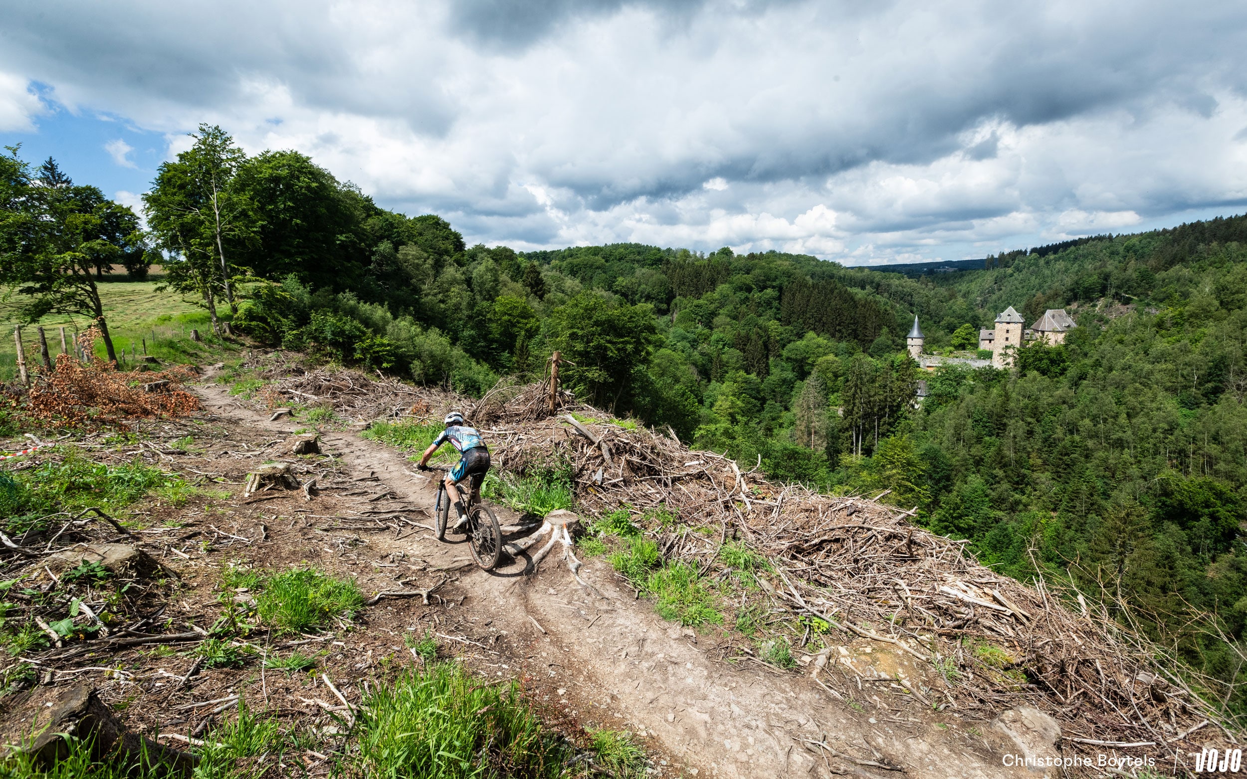 Il est alors suivi par Arthur Courtois, 2e du 90 km mais à plus de 3 minutes du leader. Jadis tracé dans les bois, ce superbe singletrack offre désormais une vue imprenable sur le Château de Reinhardstein. Mais pas certain que les concurrents qui visent la victoire profitent vraiment du panorama.