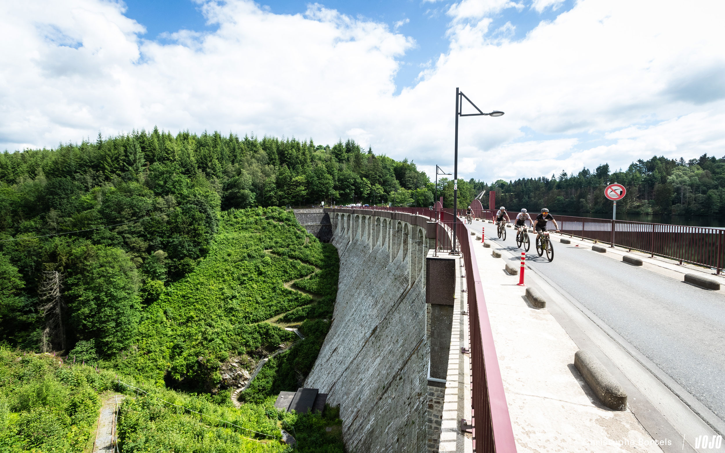Au kilomètre 61, les concurrents empruntent le toujours impressionnant barrage de Robertville.