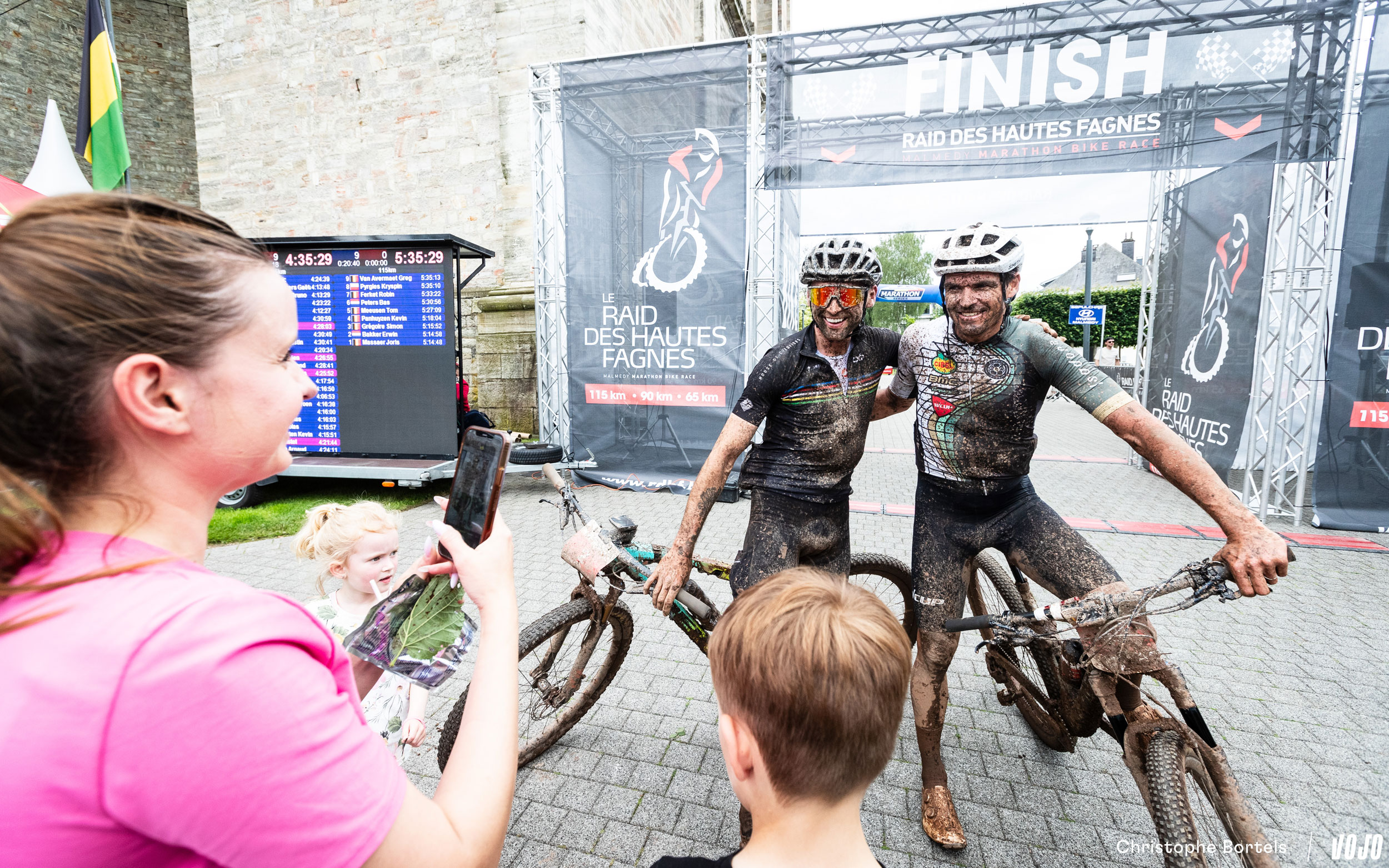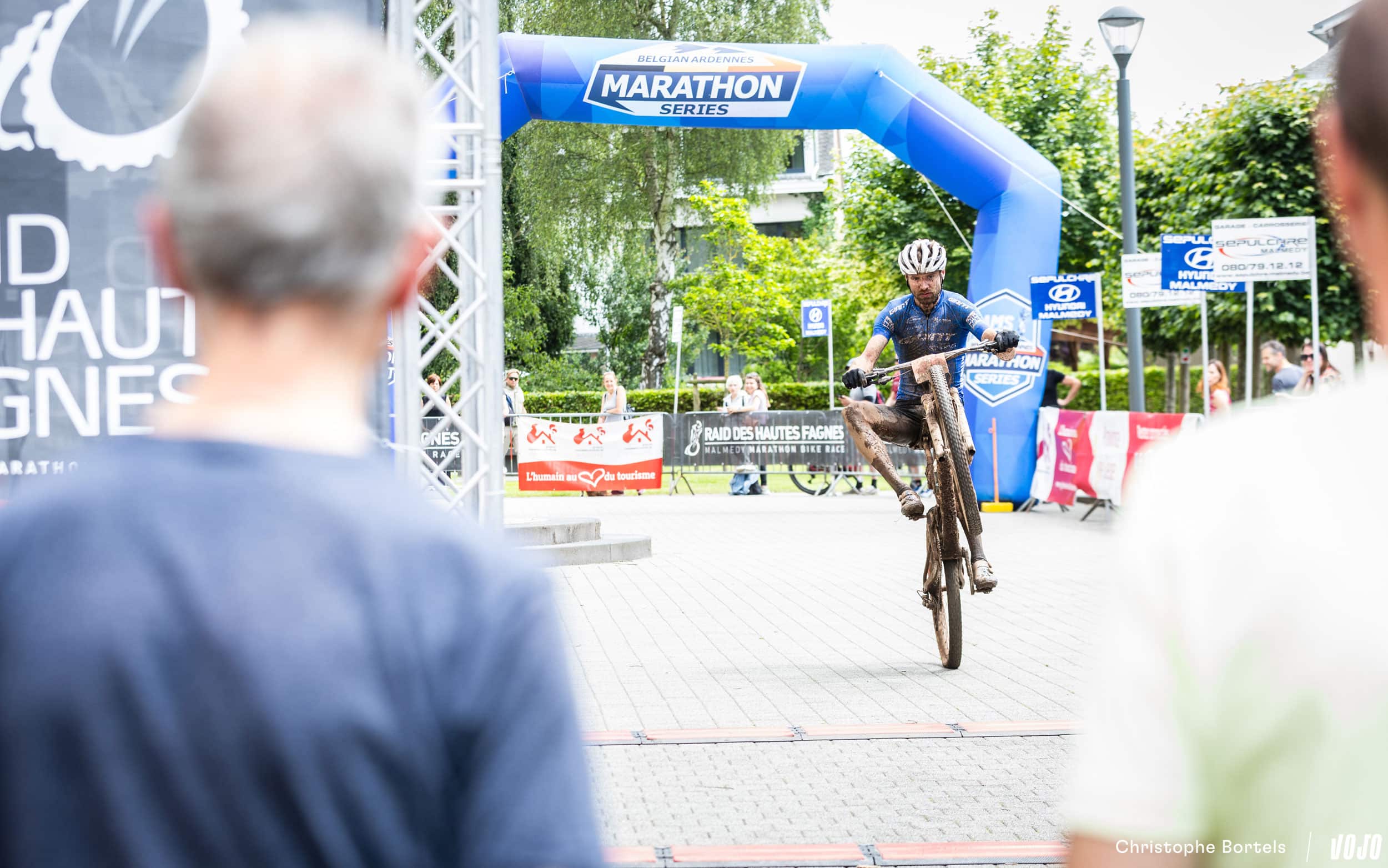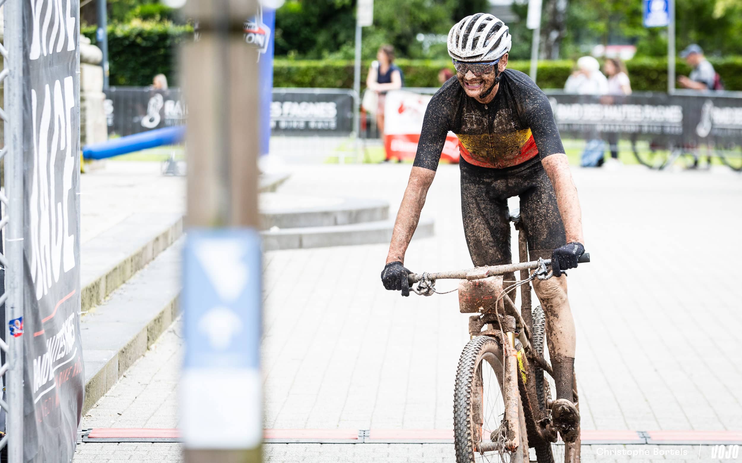 … et Joris franchit la ligne en premier ! Parti avec Erwin Bakker dans l’avant-dernière montée à quelques kilomètres de l’arrivée, il est ensuite parvenu à distancer le Néerlandais et a ainsi évité une arrivée au sprint, ce qui lui avait coûté la victoire il y a un mois à l’Ardennes Trophy. Il boucle ce Raid des Hautes Fagnes en 5h14 à une moyenne de 21,5 km/h. Pour l’anecdote, c’est le quatrième vainqueur différent en quatre manches sur ce BAMS 2024.